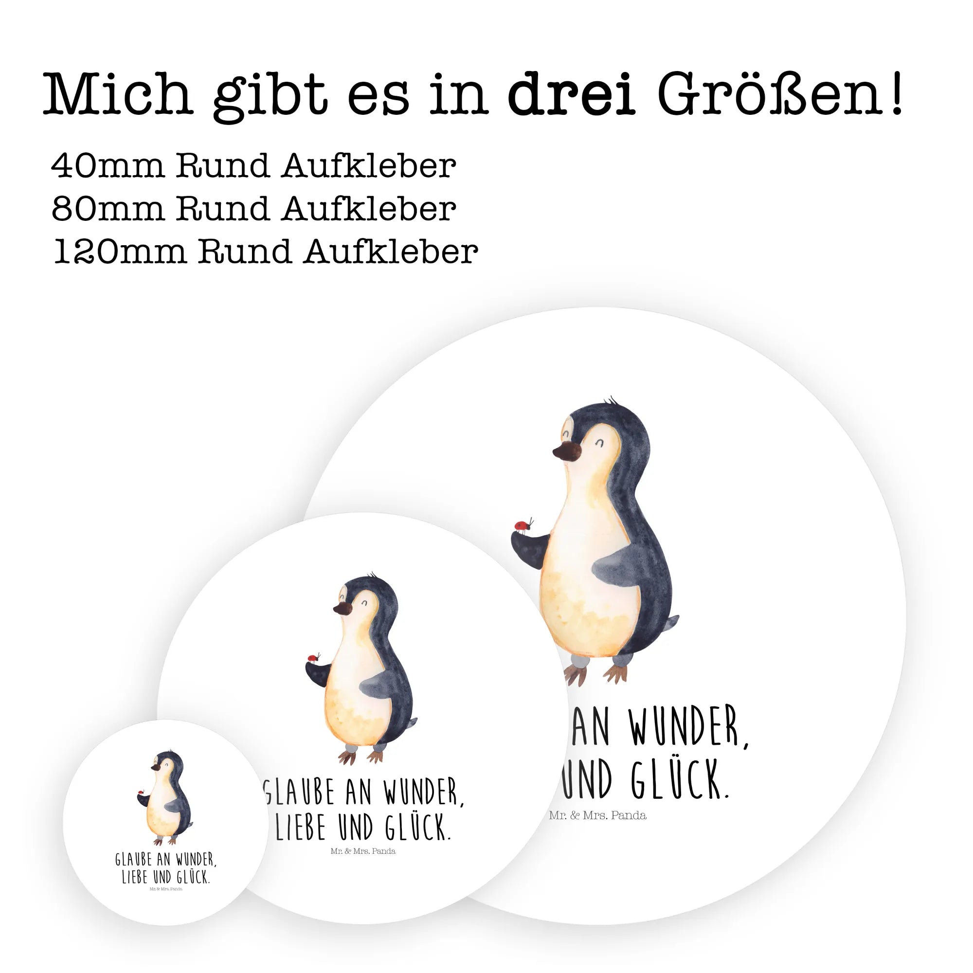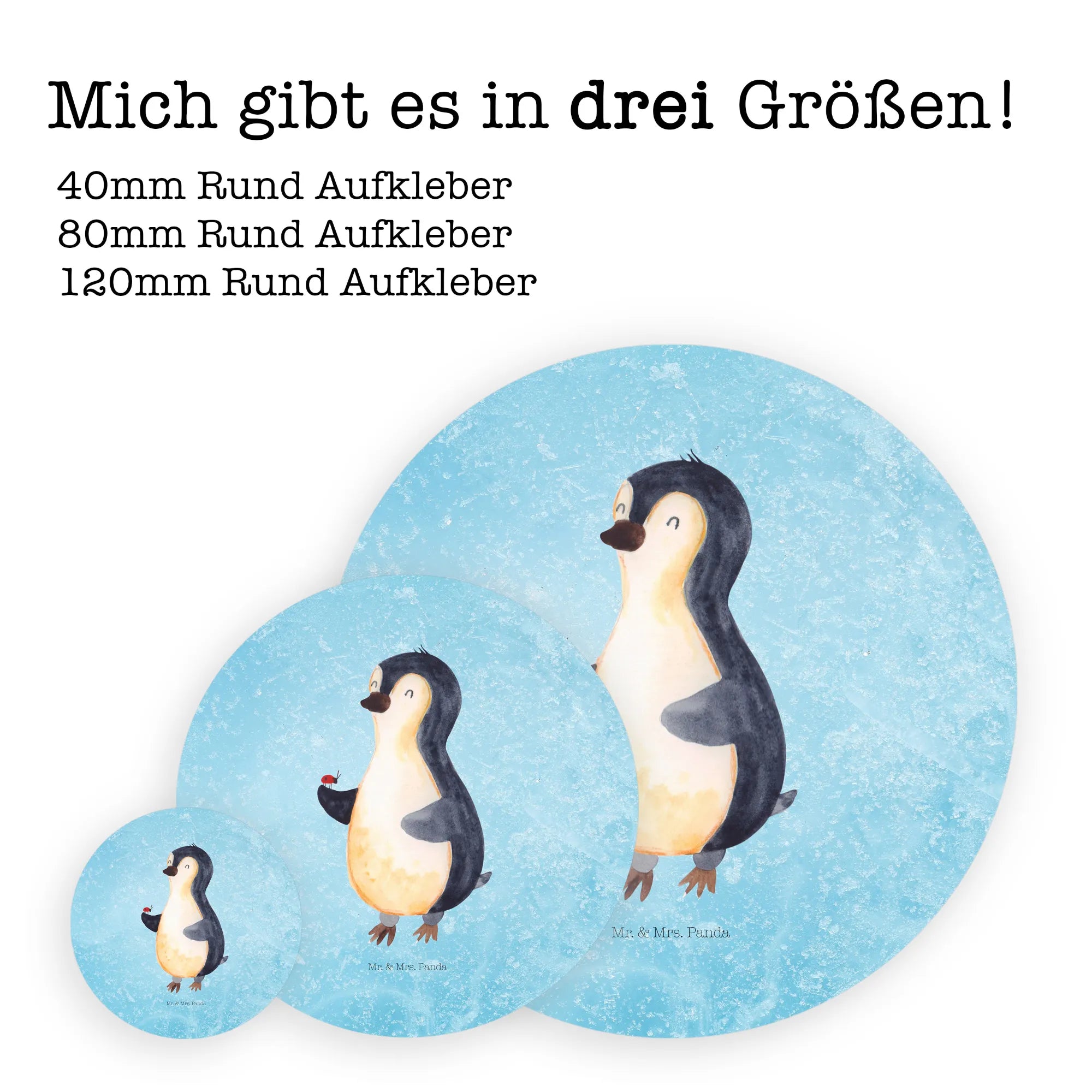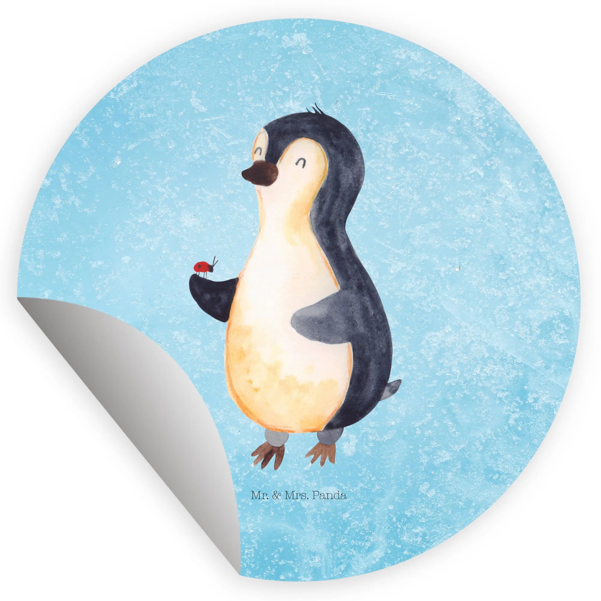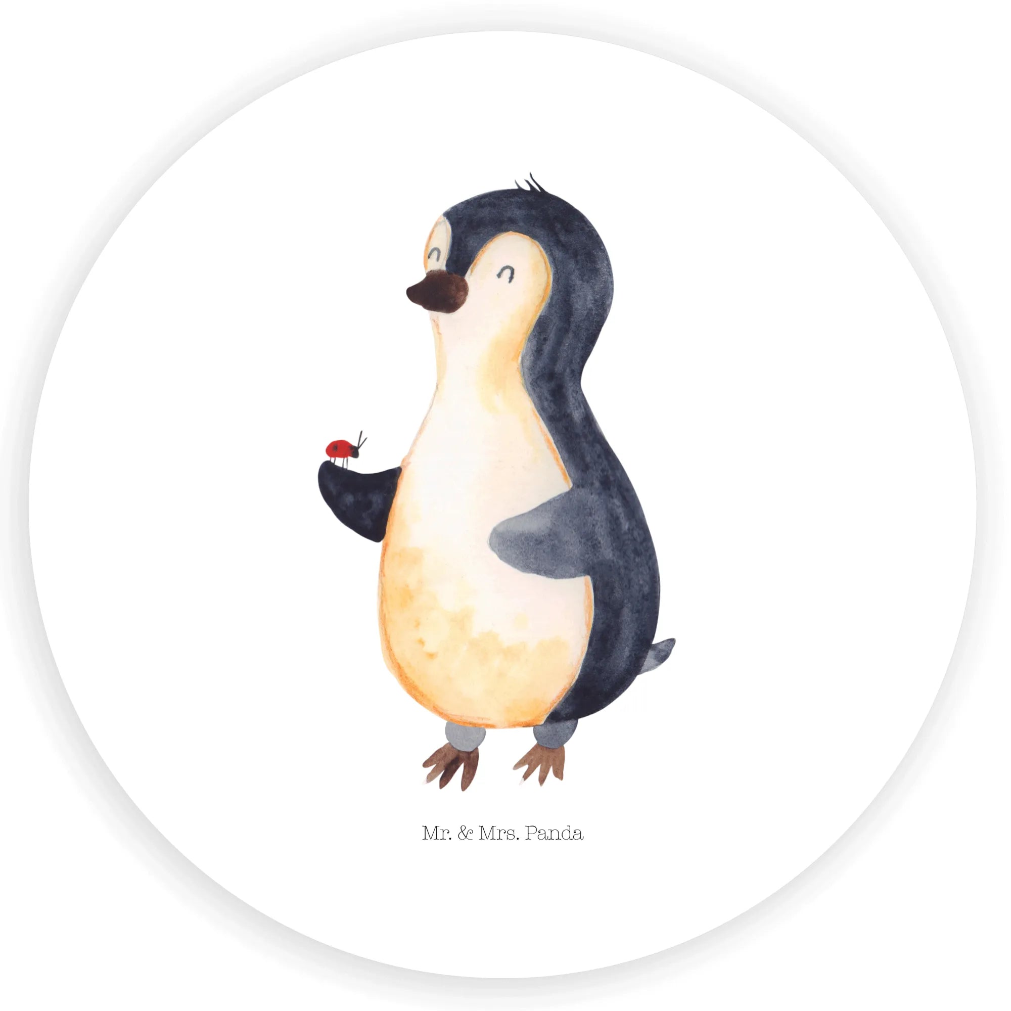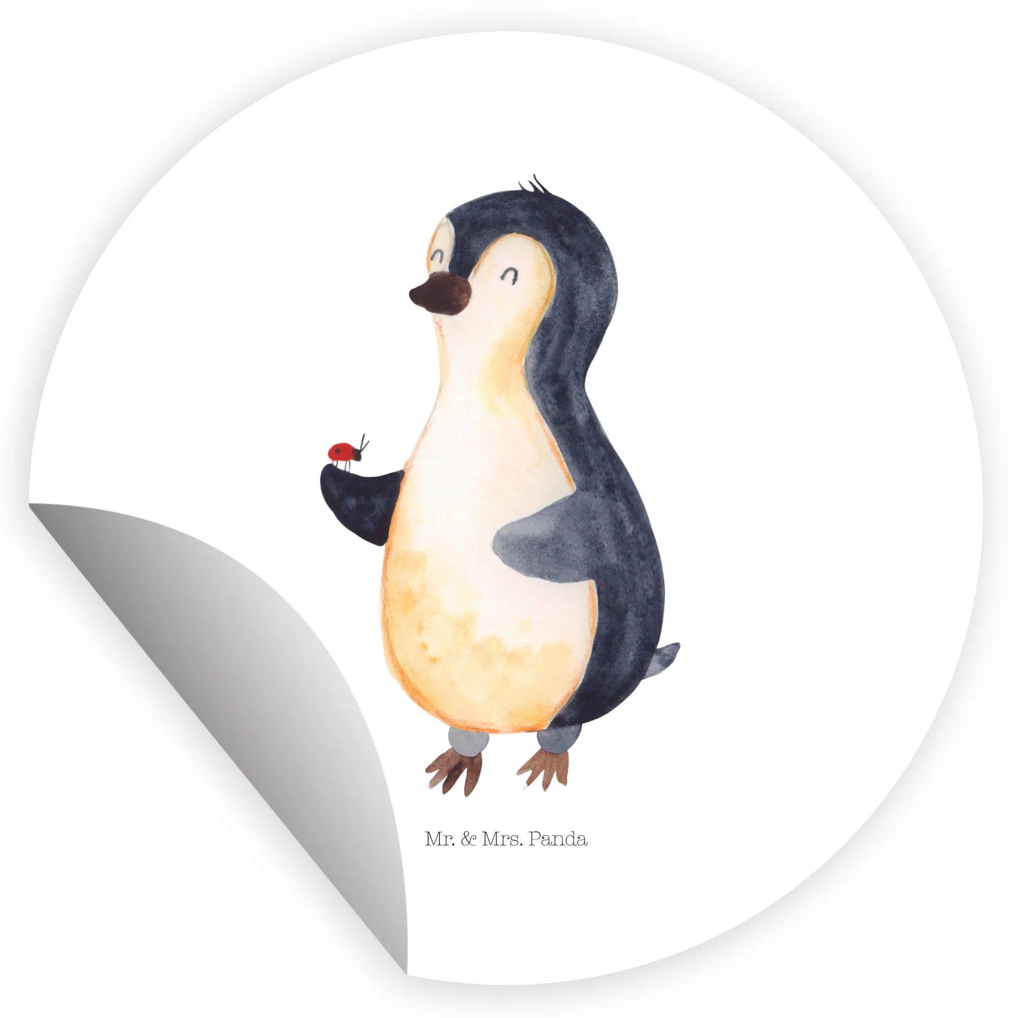 80mm okrągła naklejka Pingwin biedronka - 80mm Rund Aufkleber - z napisem - biały