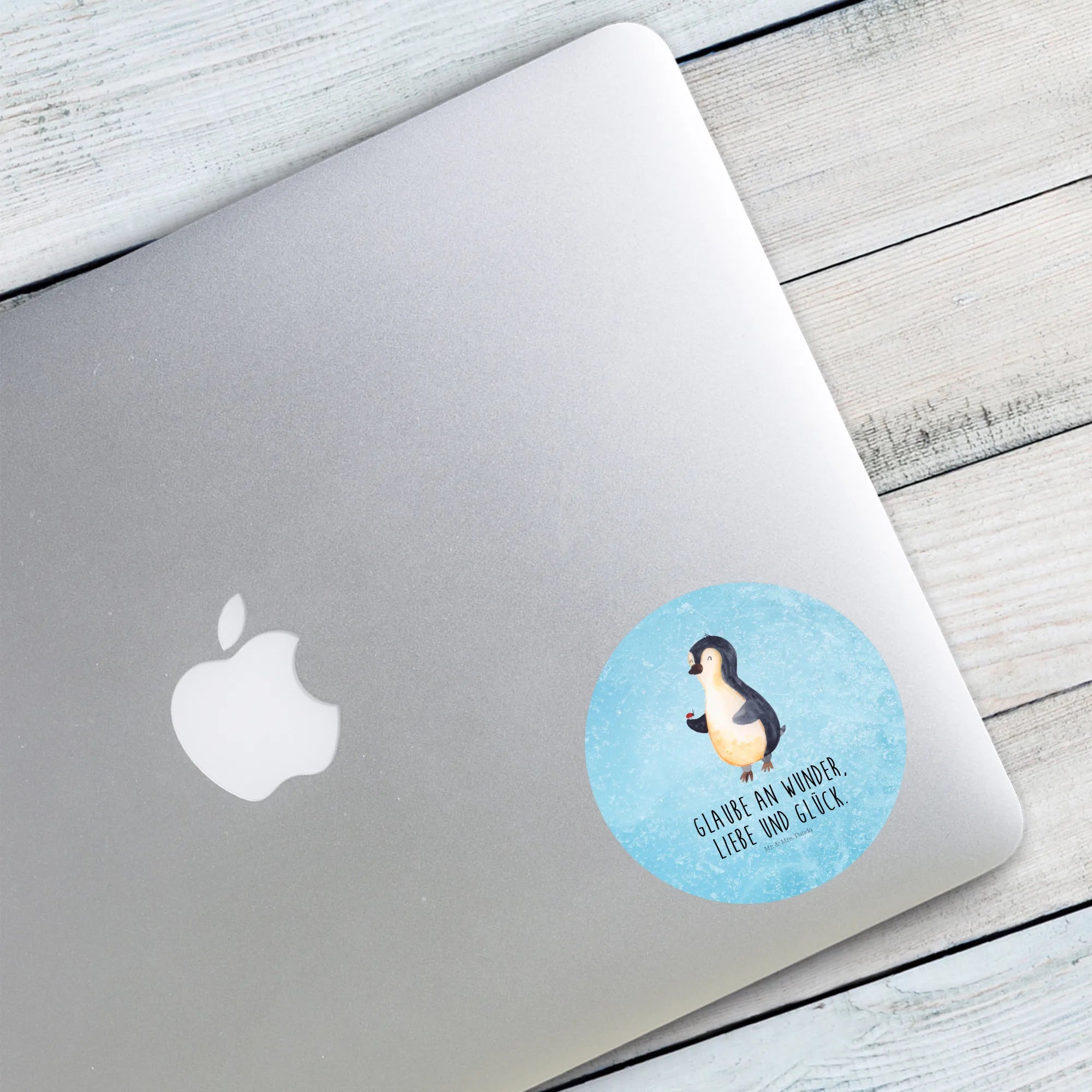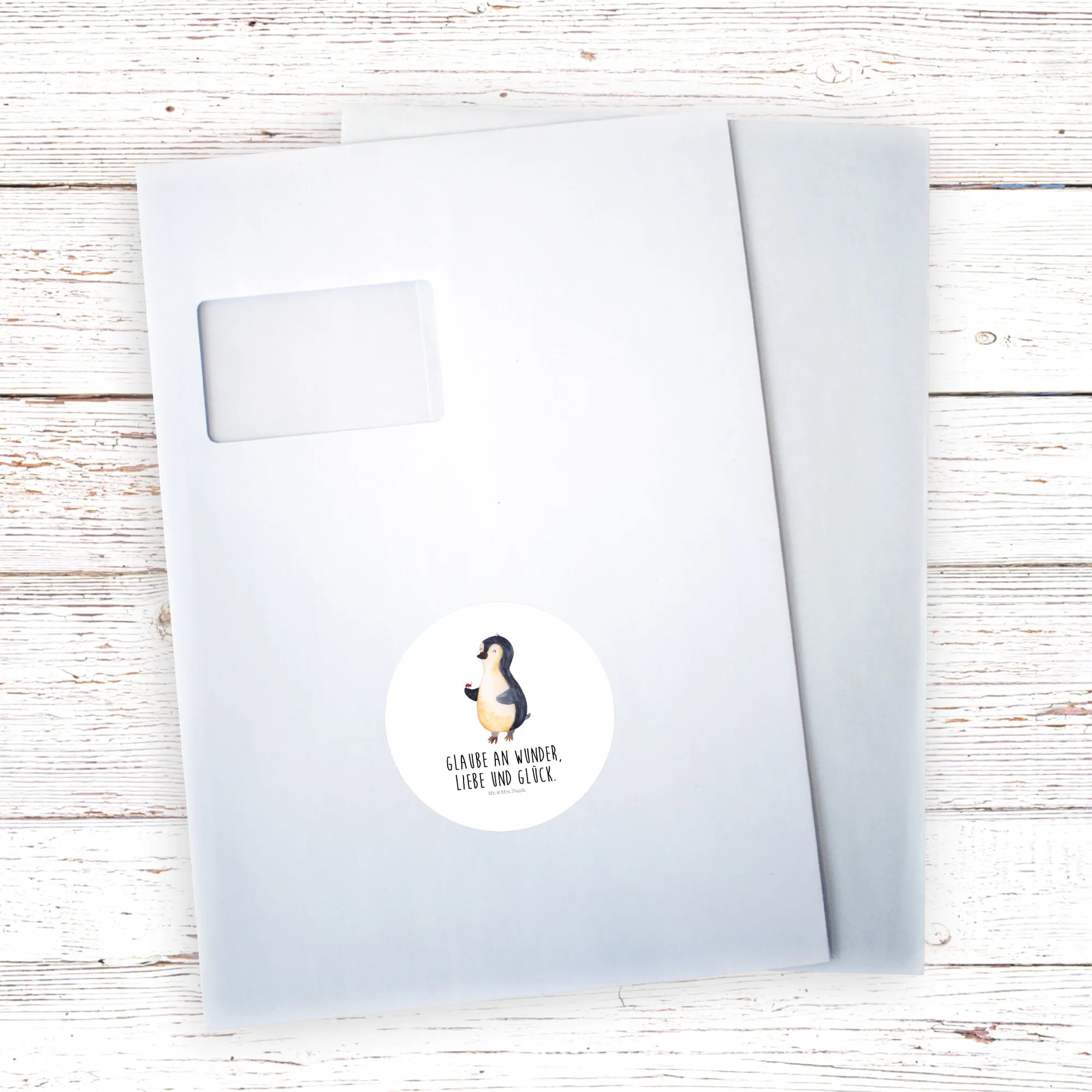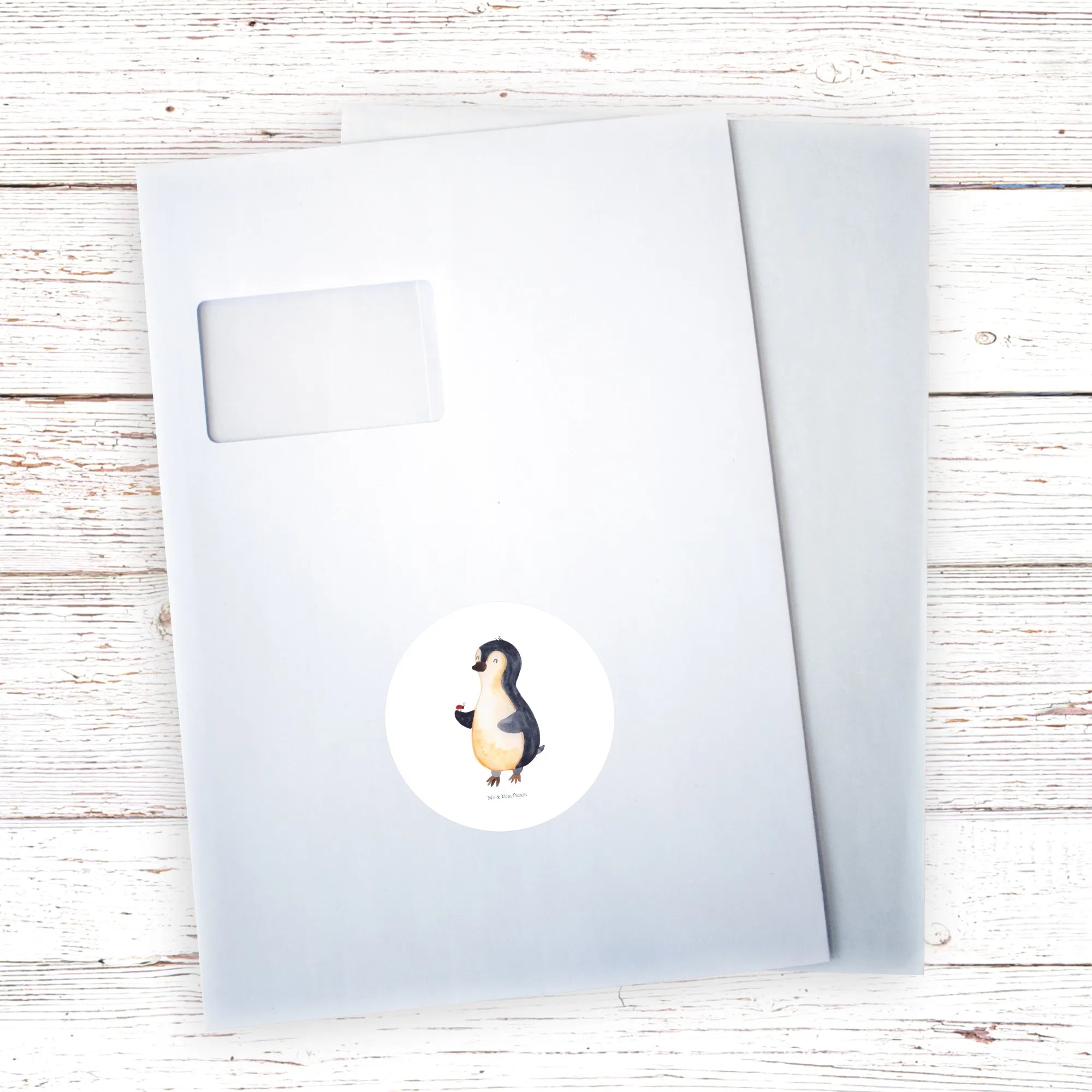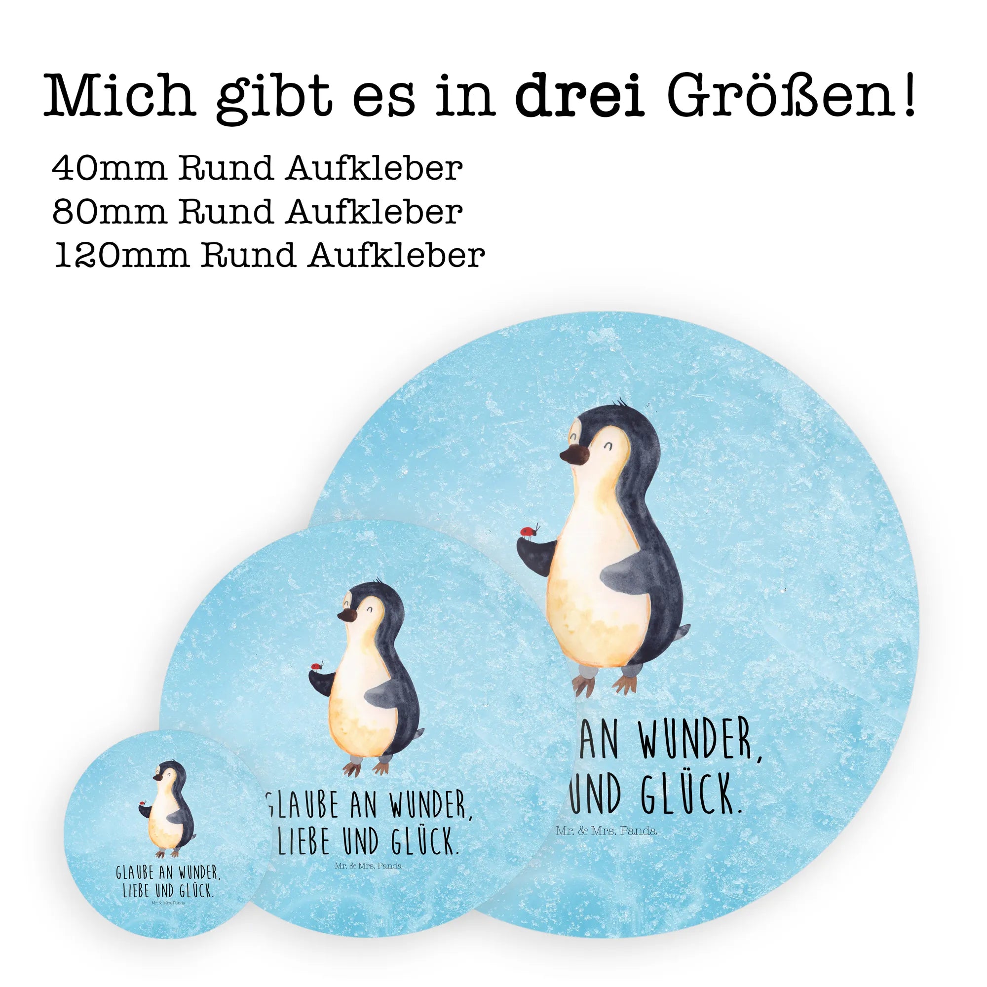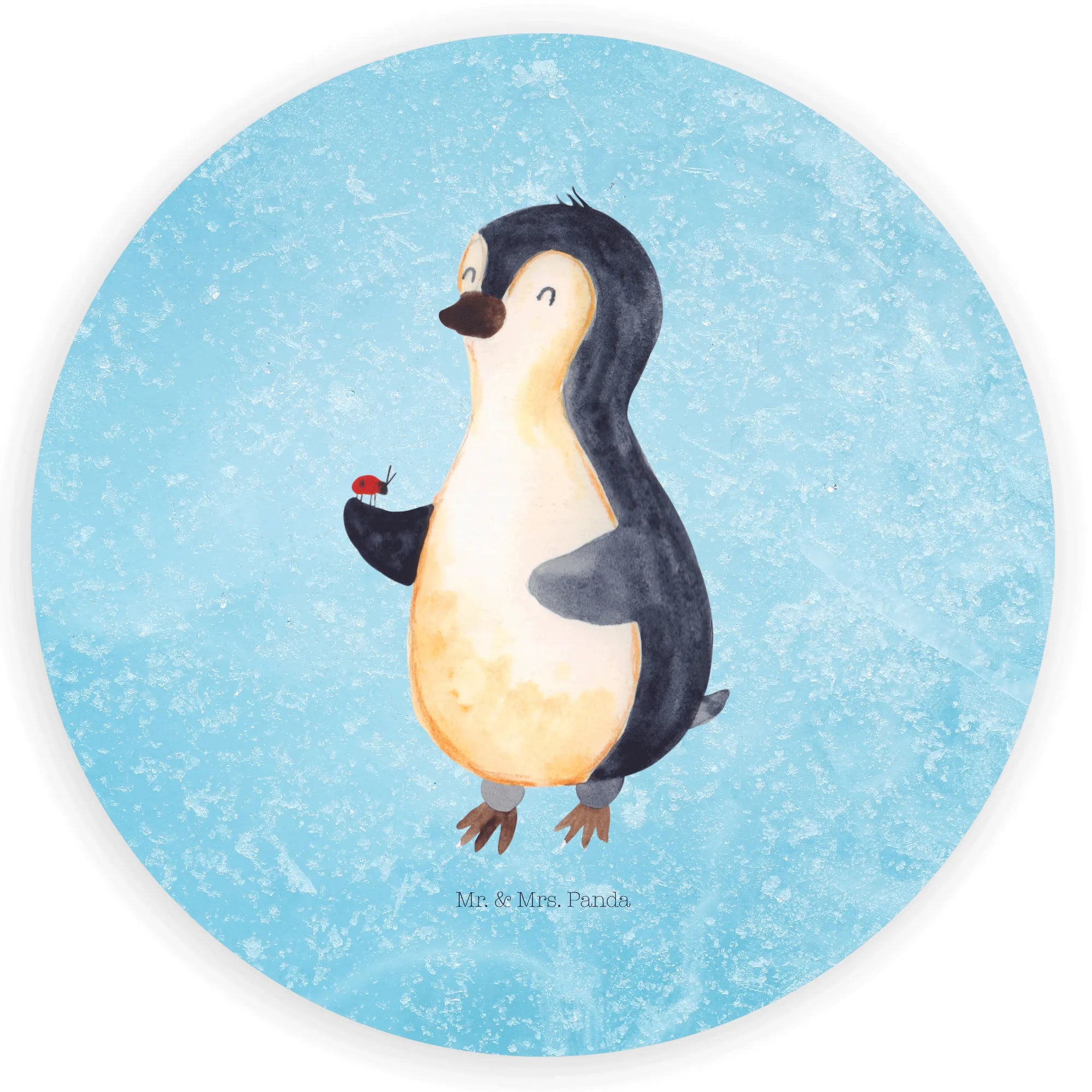 80mm okrągła naklejka Pingwin biedronka - 80mm Rund Aufkleber - z napisem - biały