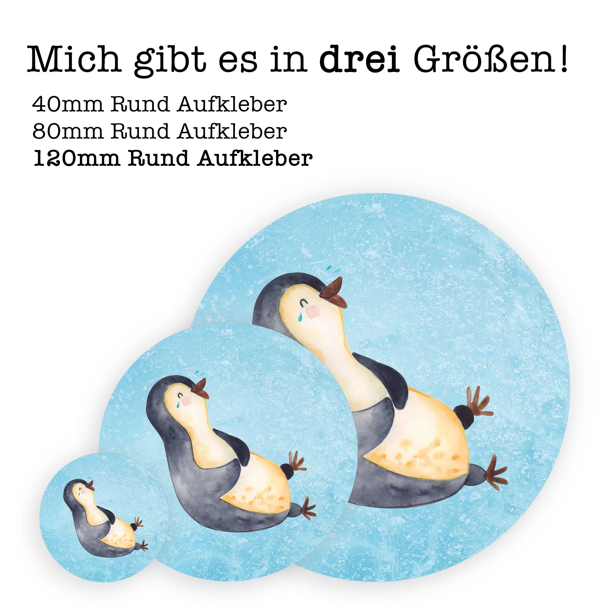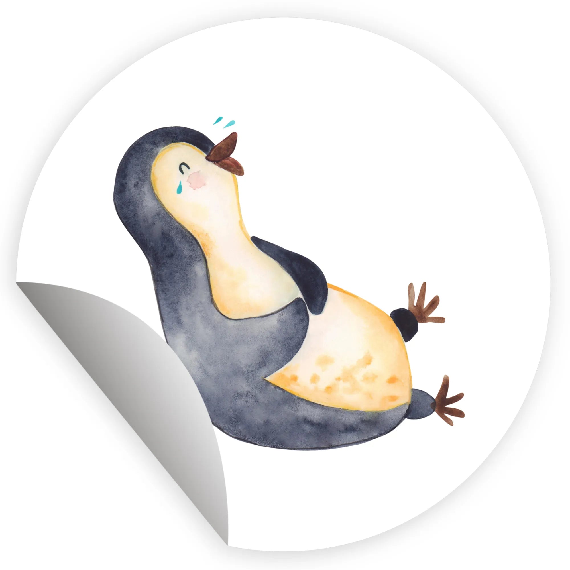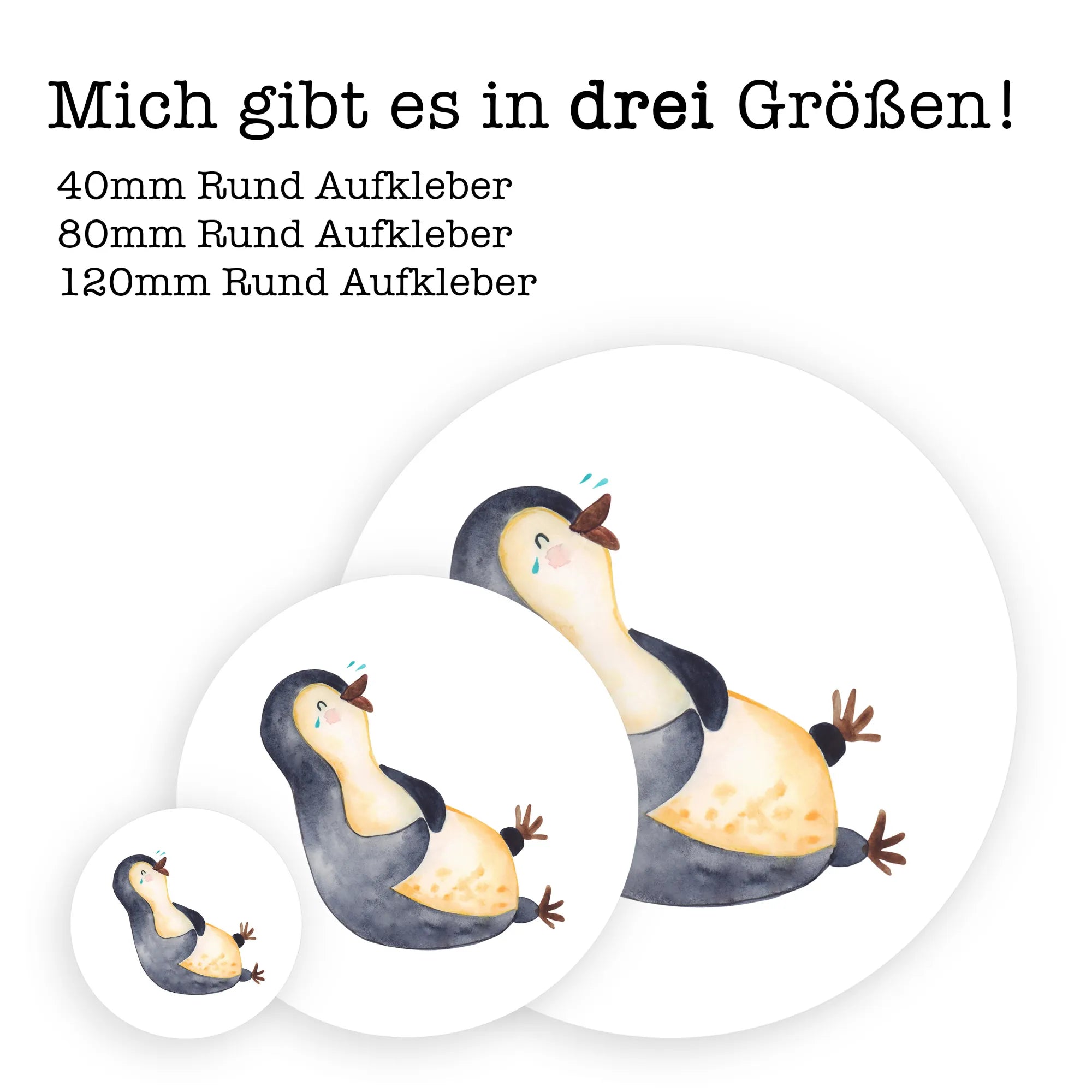 80mm okrągła naklejka pingwin Śmiech - 80mm Rund Aufkleber - z napisem - biały