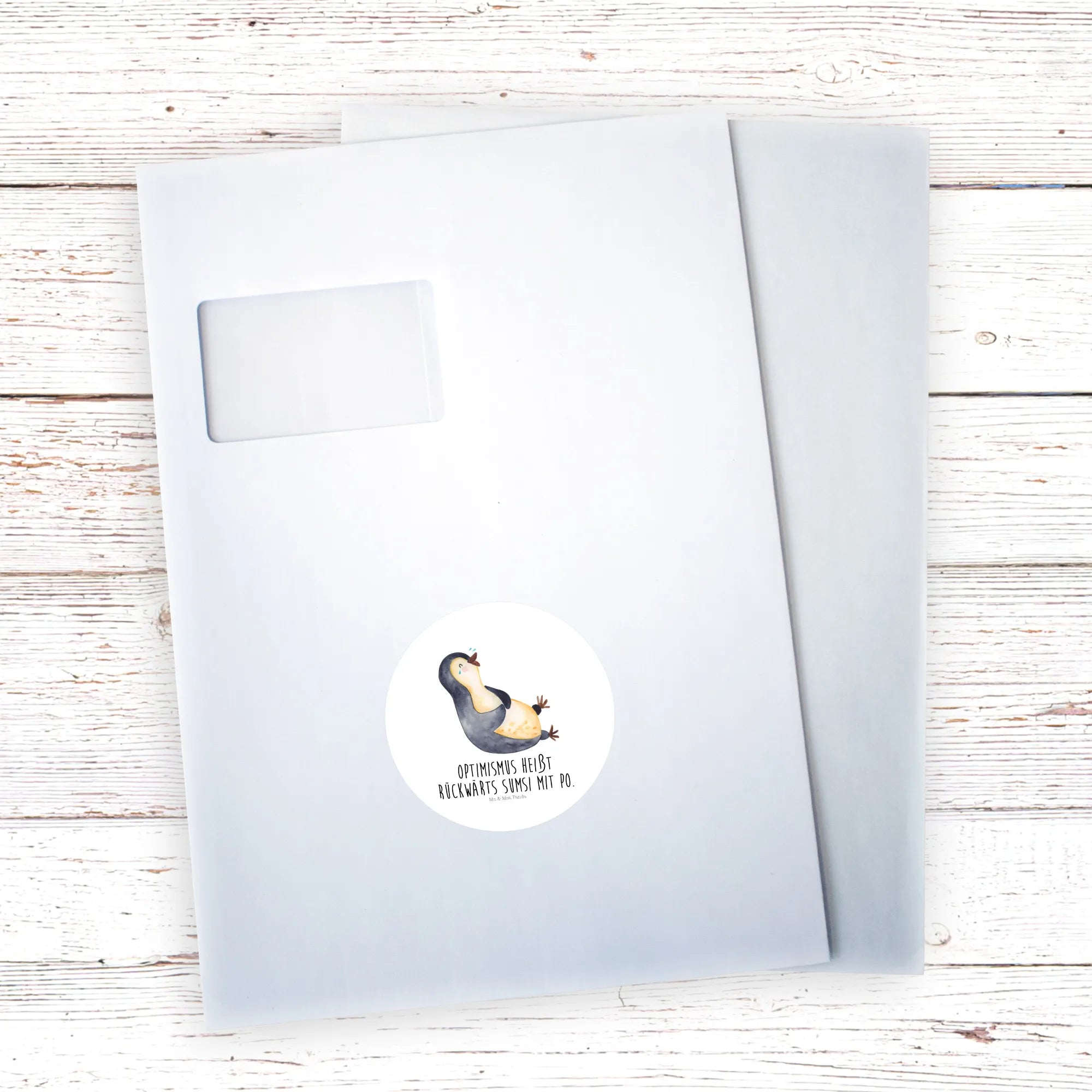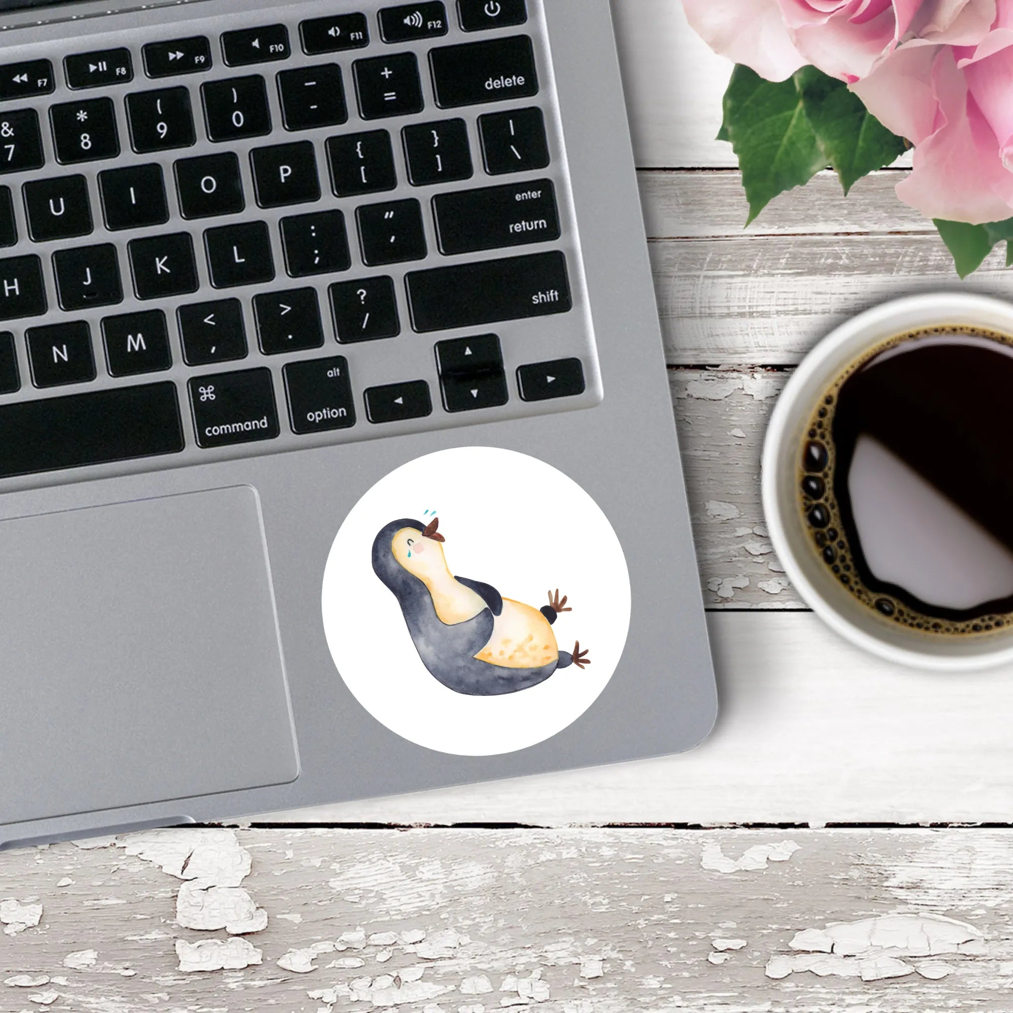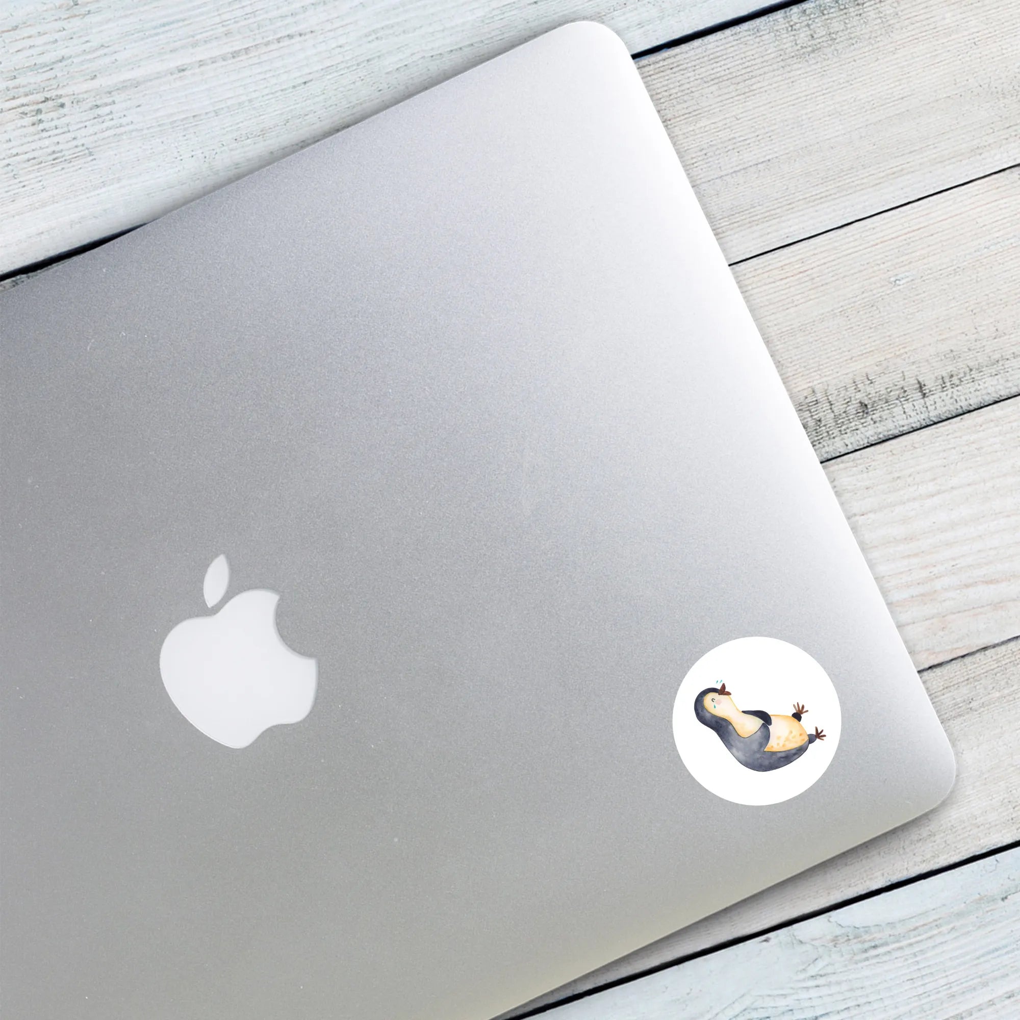 80mm okrągła naklejka pingwin Śmiech - 80mm Rund Aufkleber - z napisem - biały