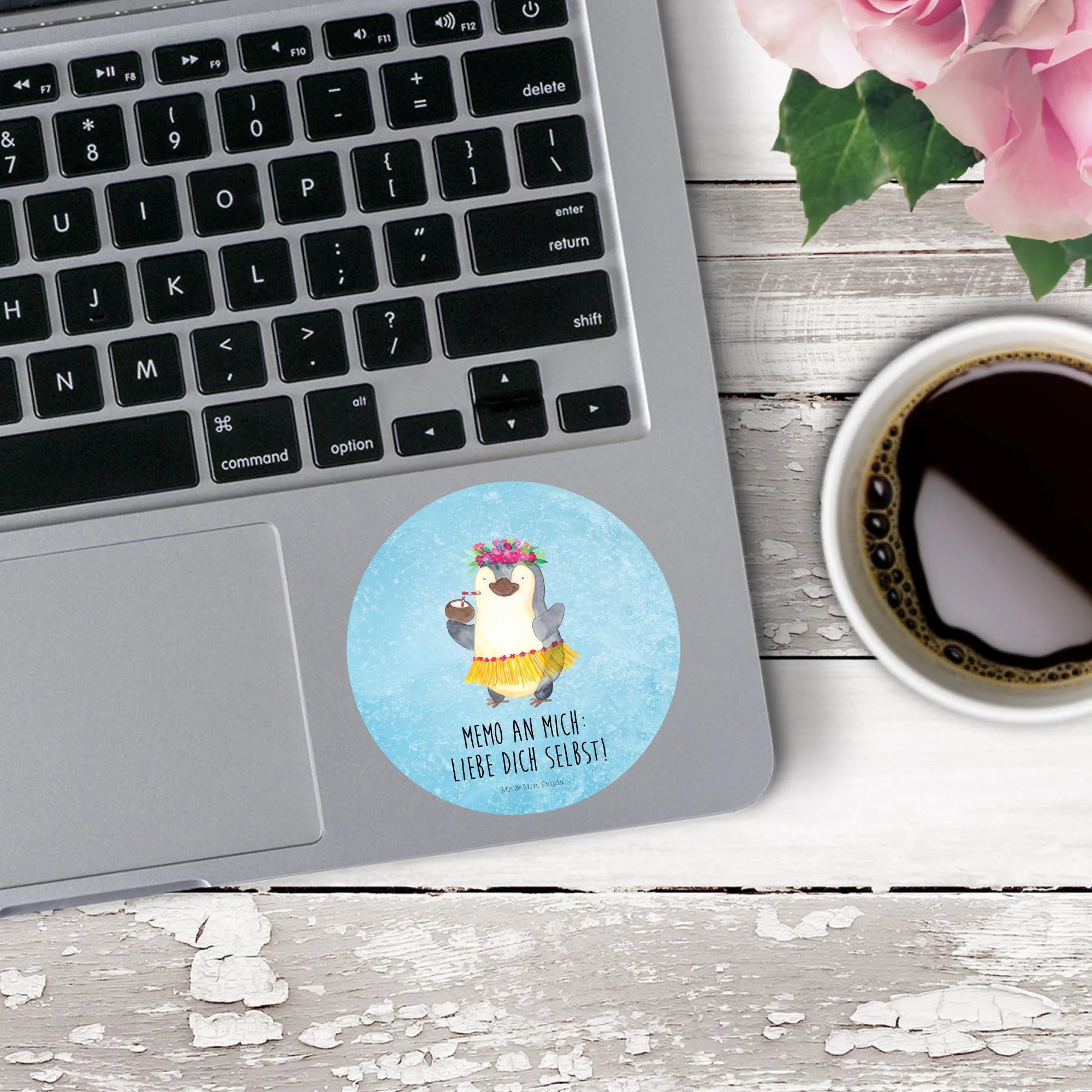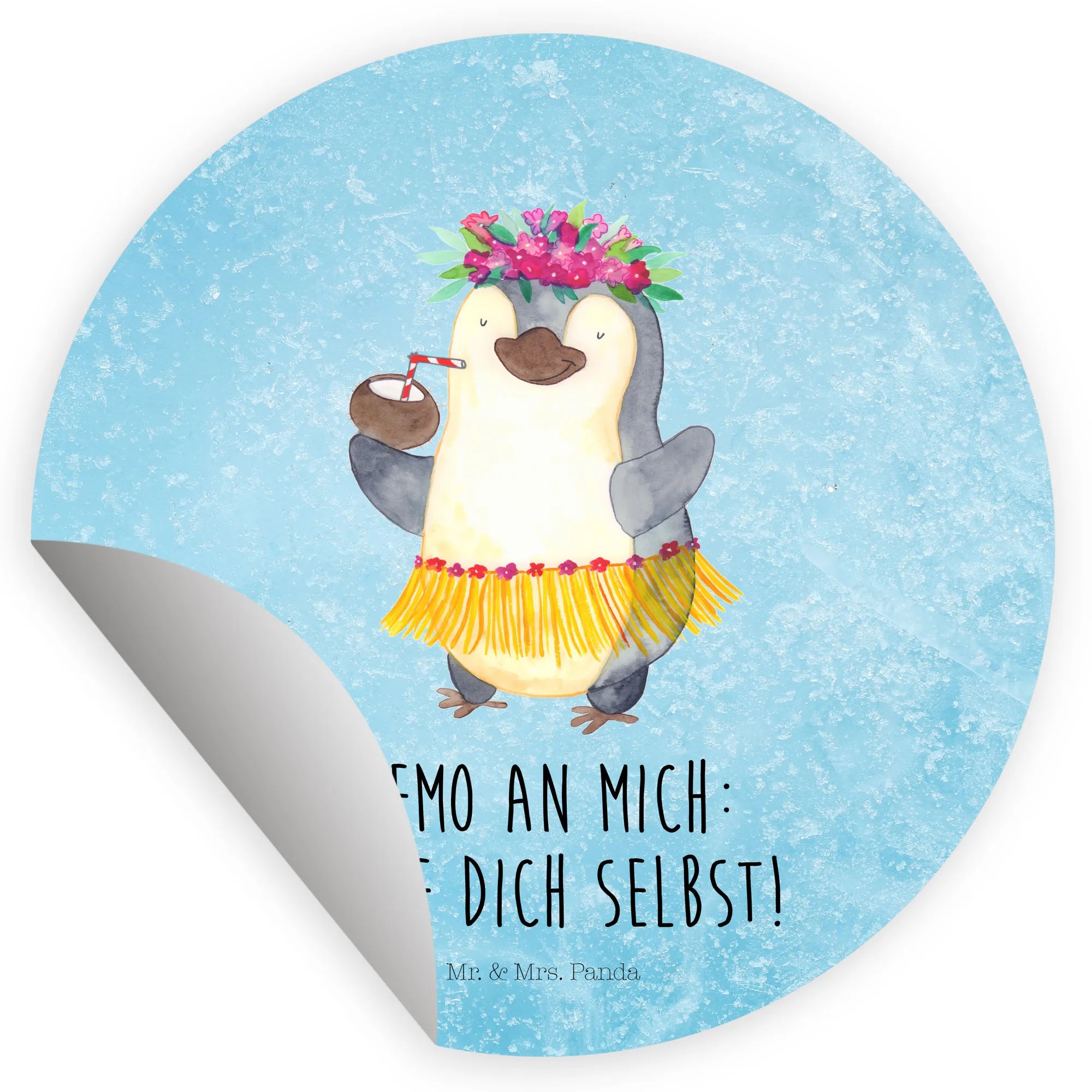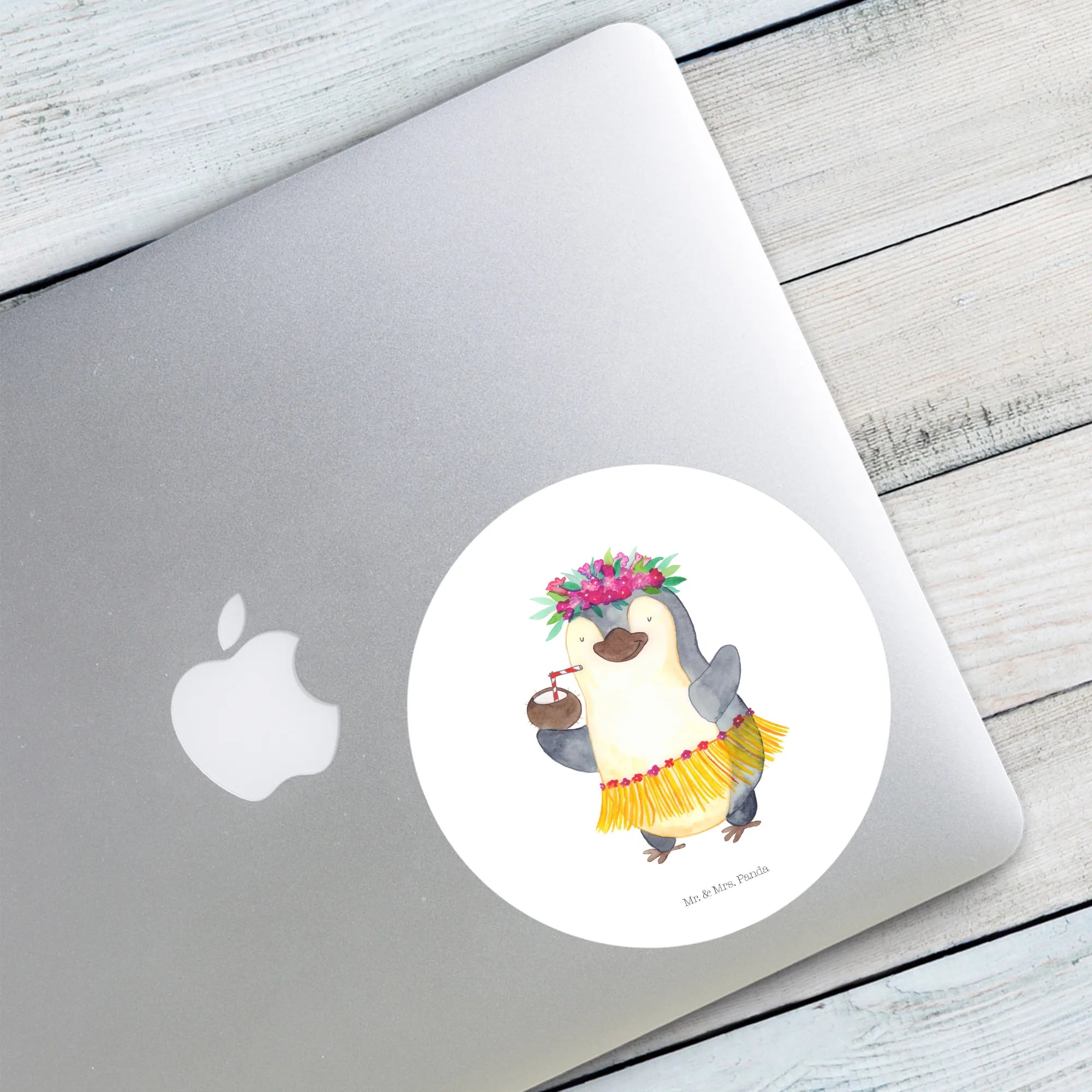 80mm okrągła naklejka Pingwin z Kokosem - 80mm Rund Aufkleber - z napisem - biały