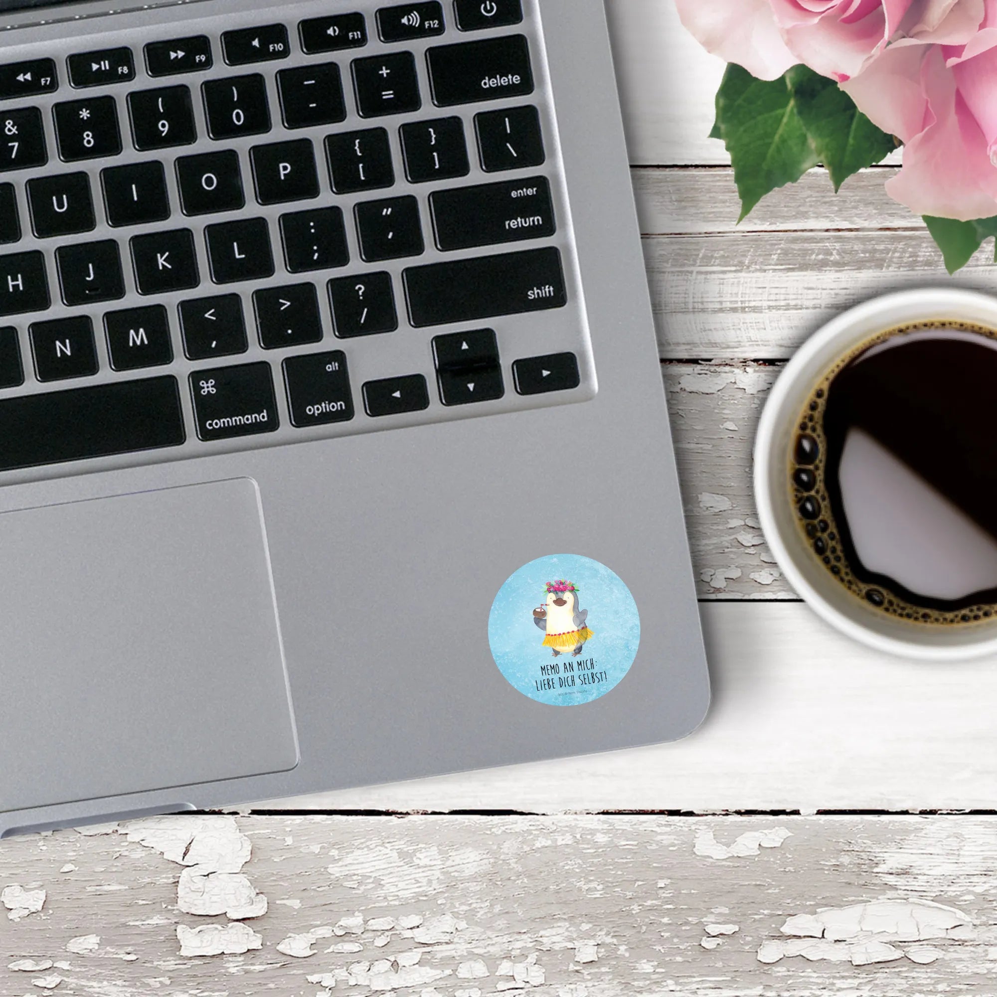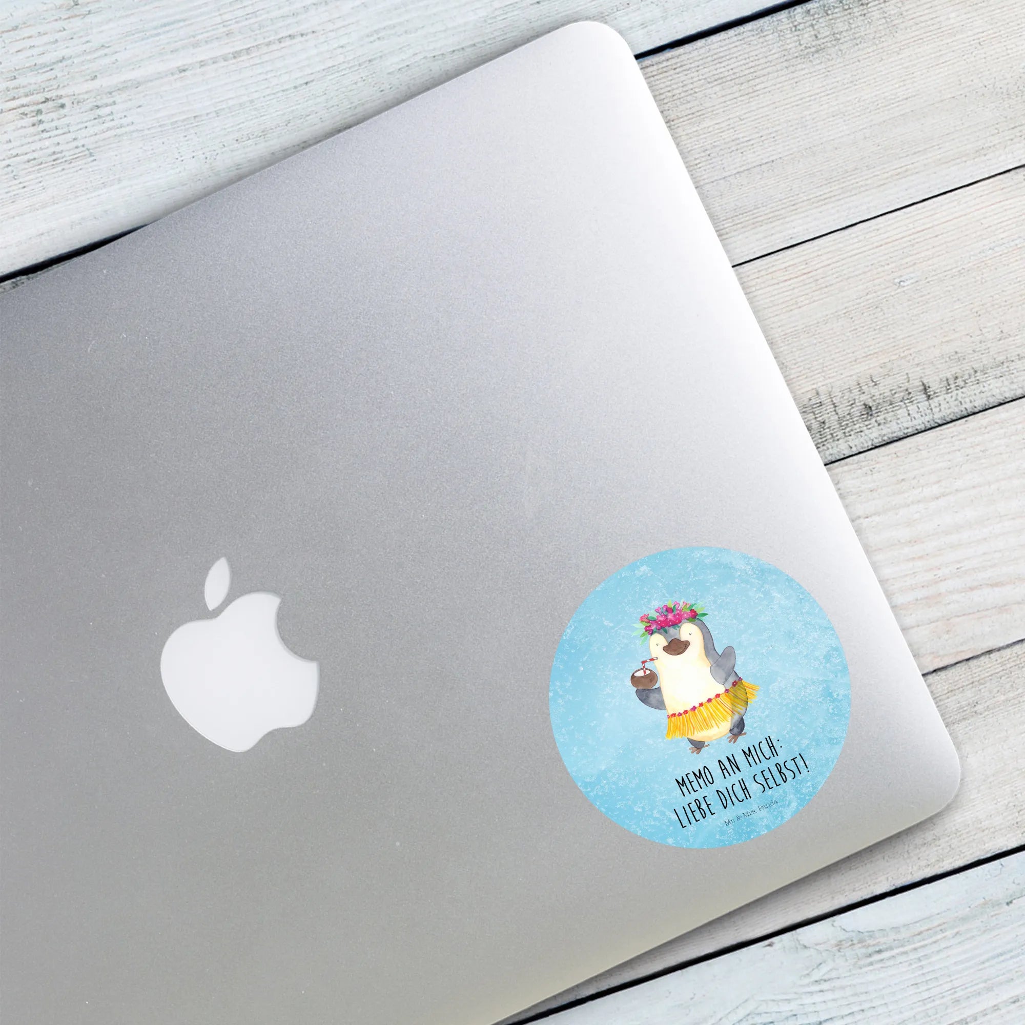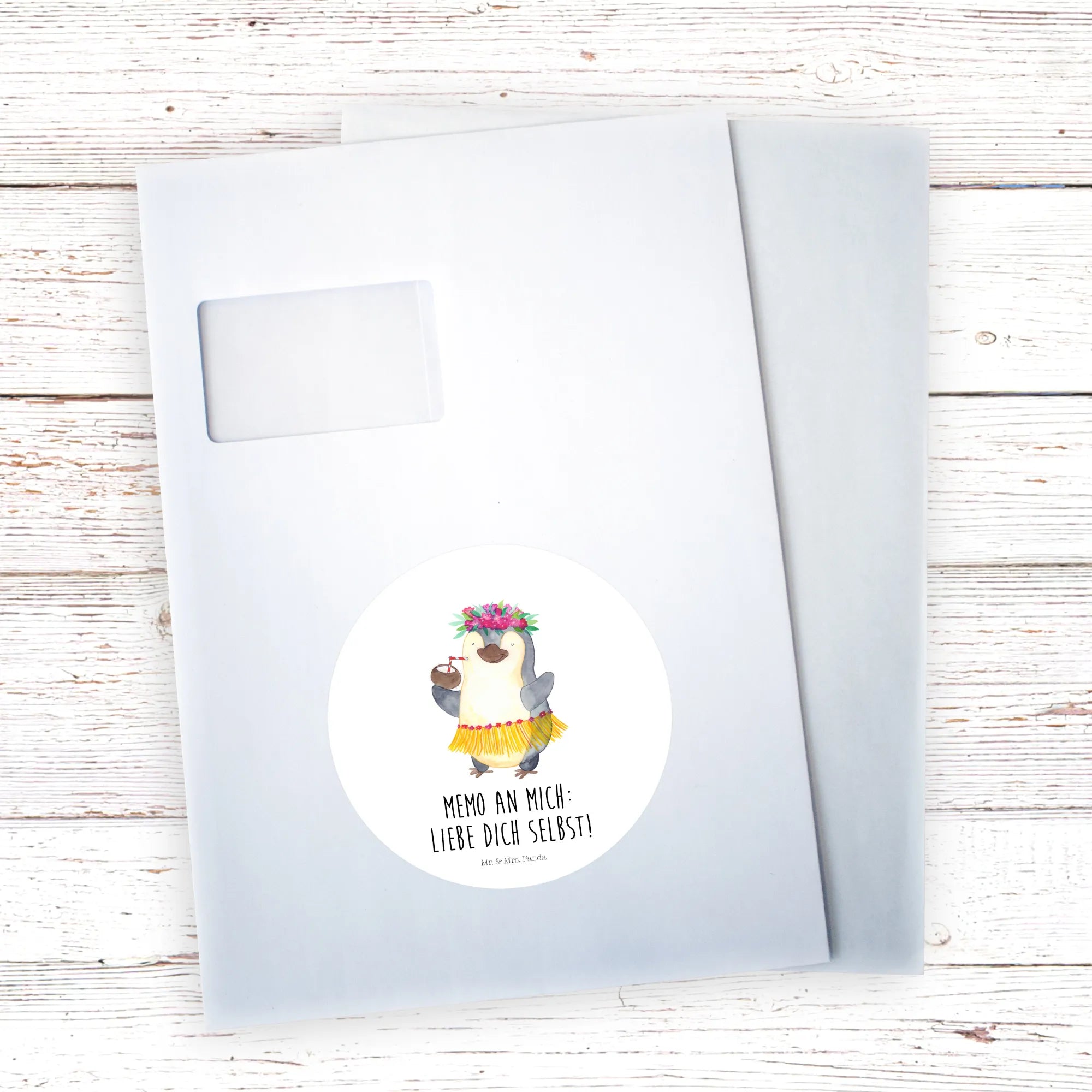 80mm okrągła naklejka Pingwin z Kokosem - 80mm Rund Aufkleber - z napisem - biały