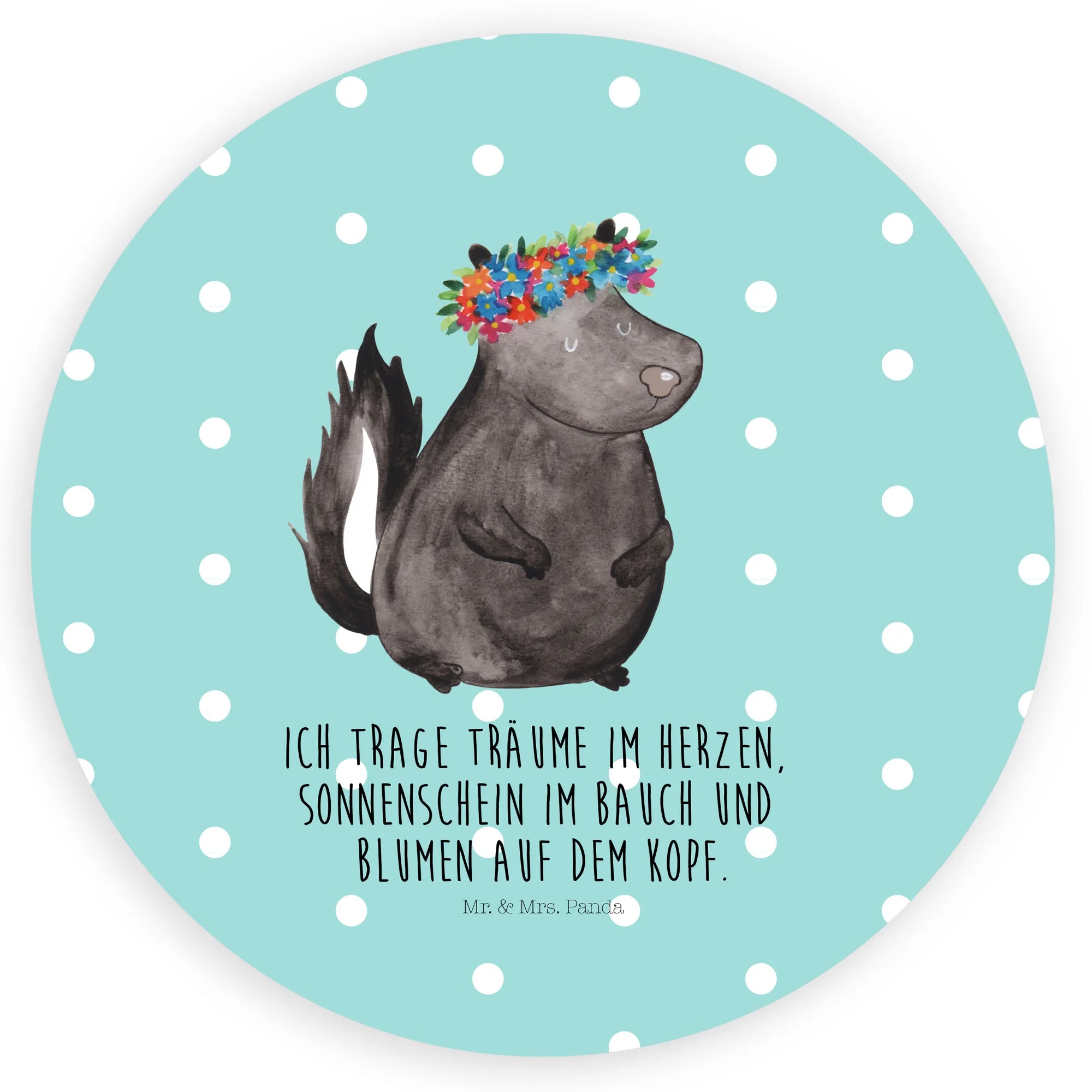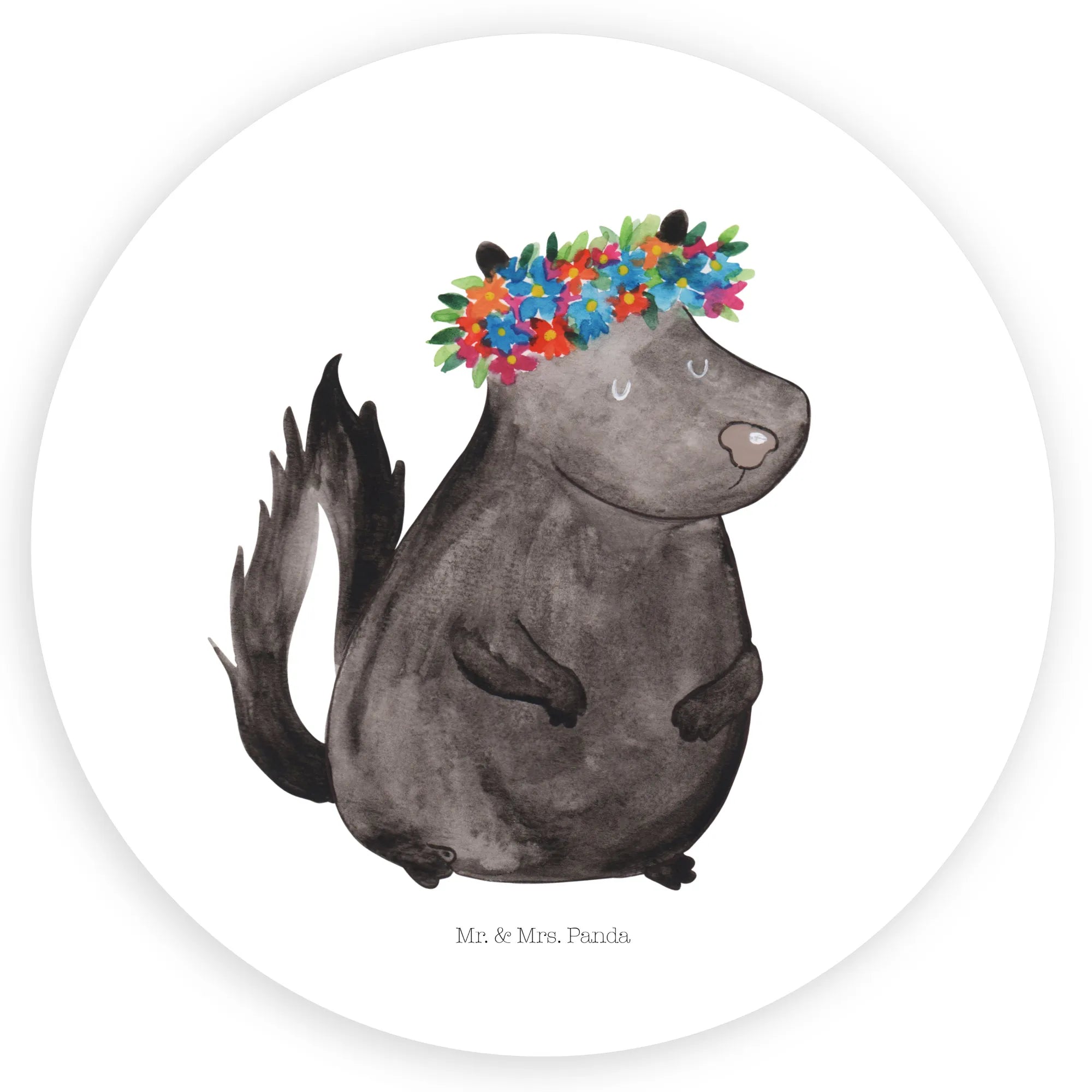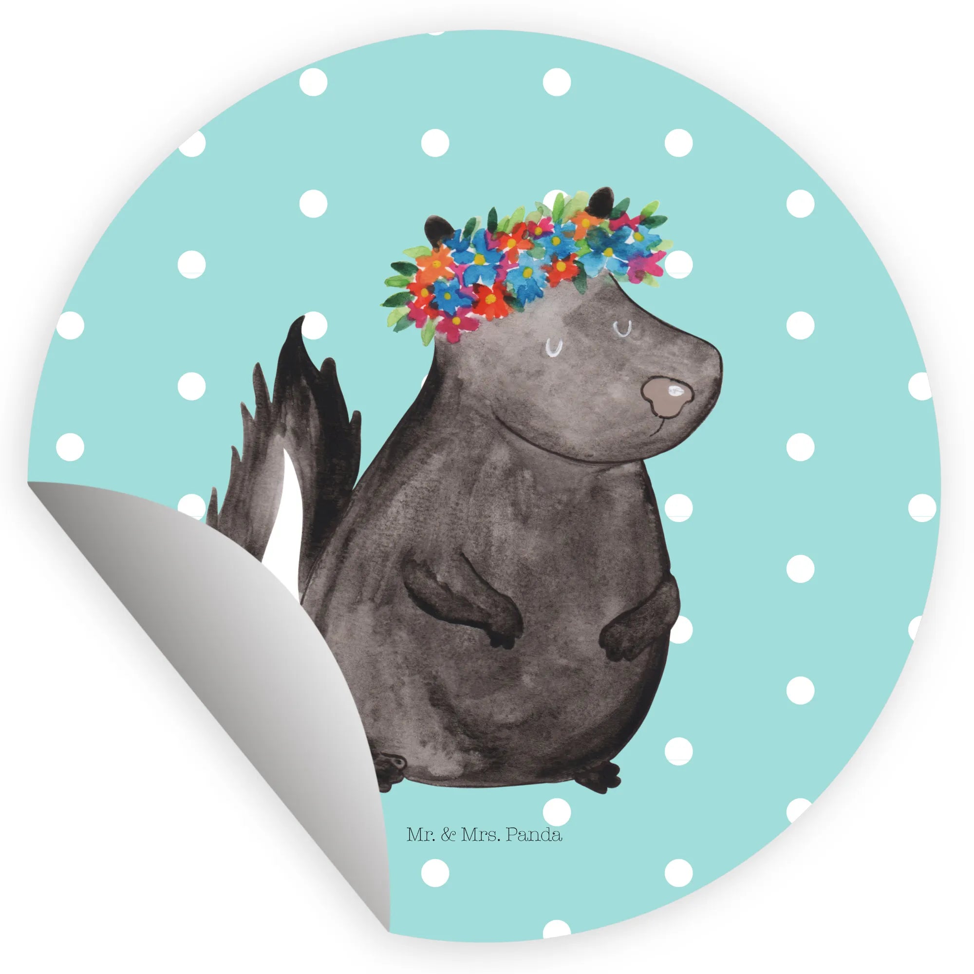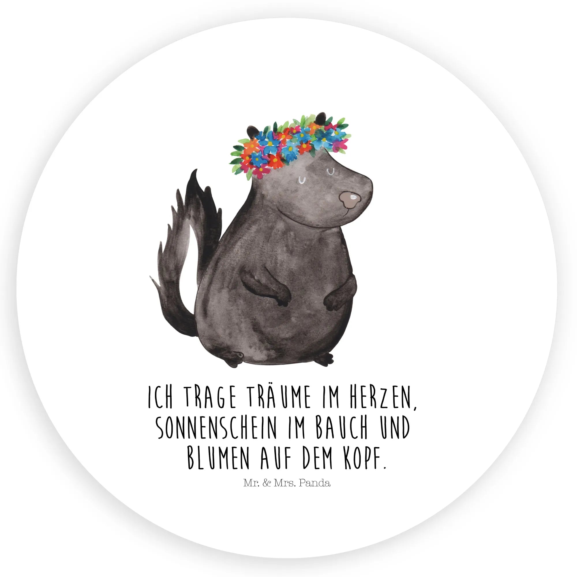80mm okrągła naklejka skunks dziewczynka - 80mm Rund Aufkleber - z napisem - biały