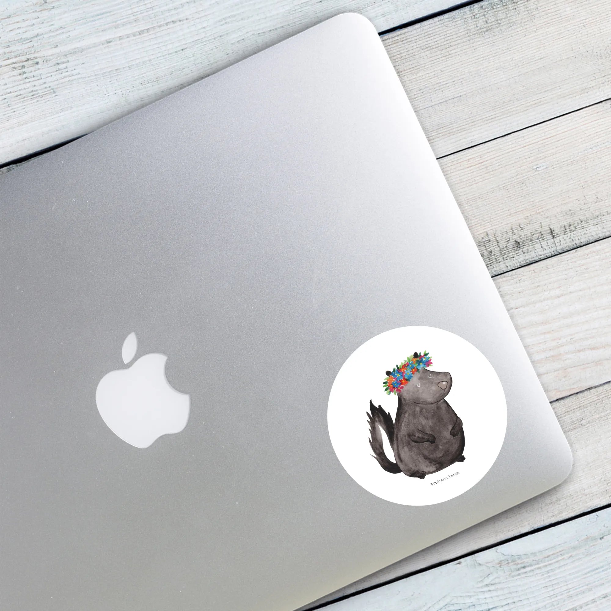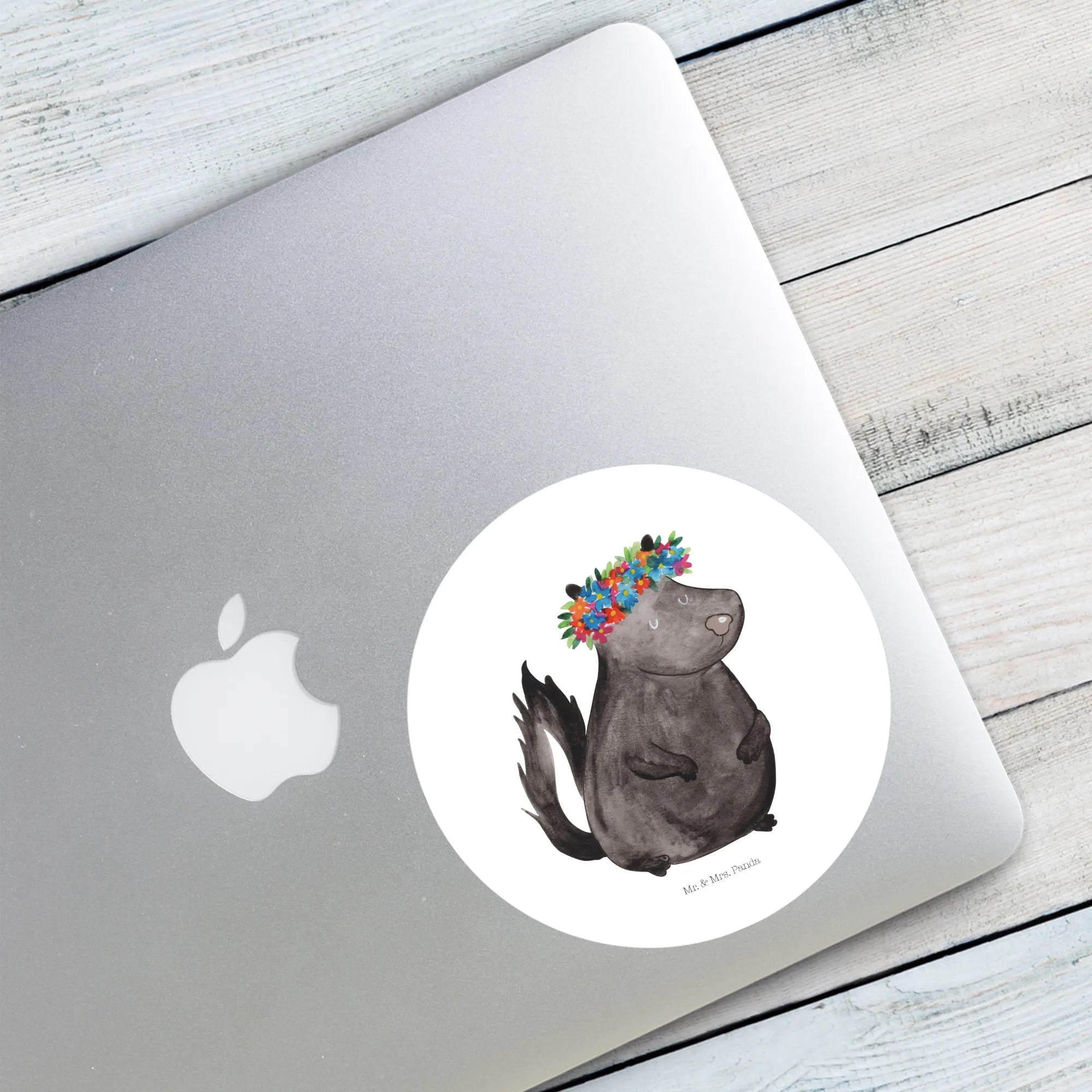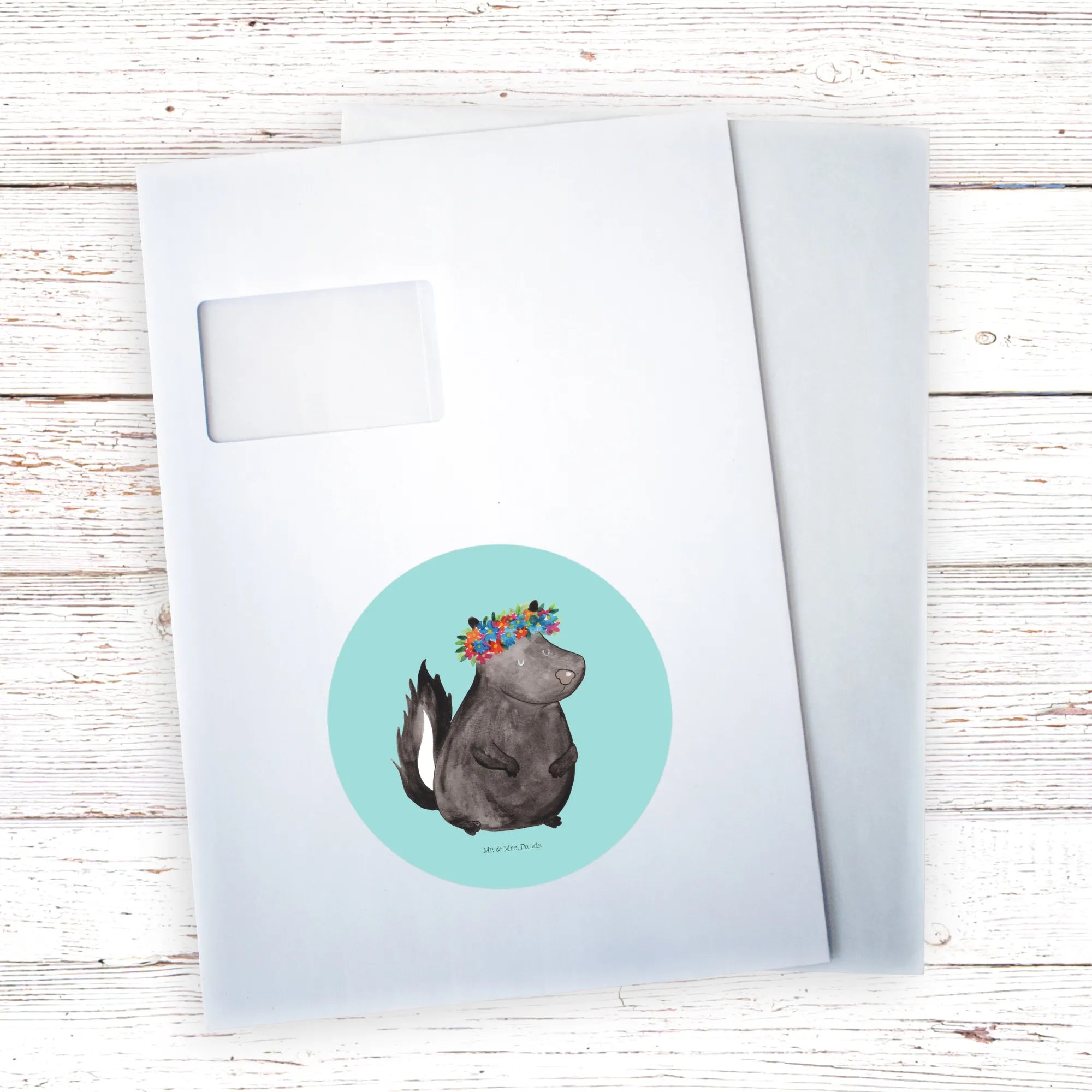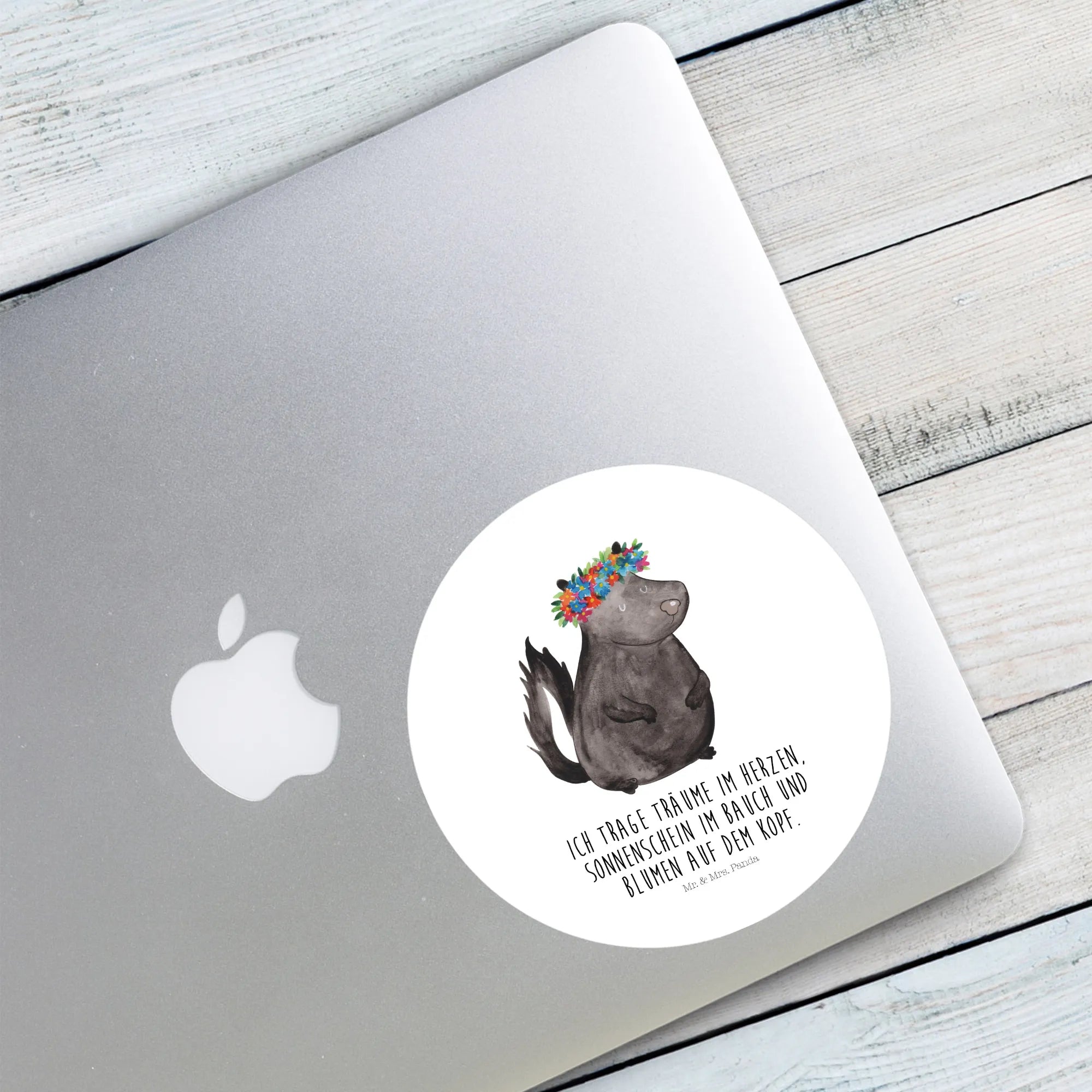 80mm okrągła naklejka skunks dziewczynka - 80mm Rund Aufkleber - z napisem - biały