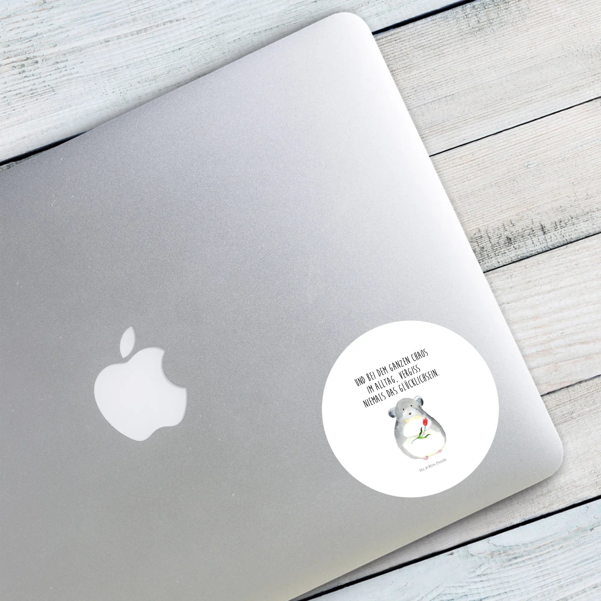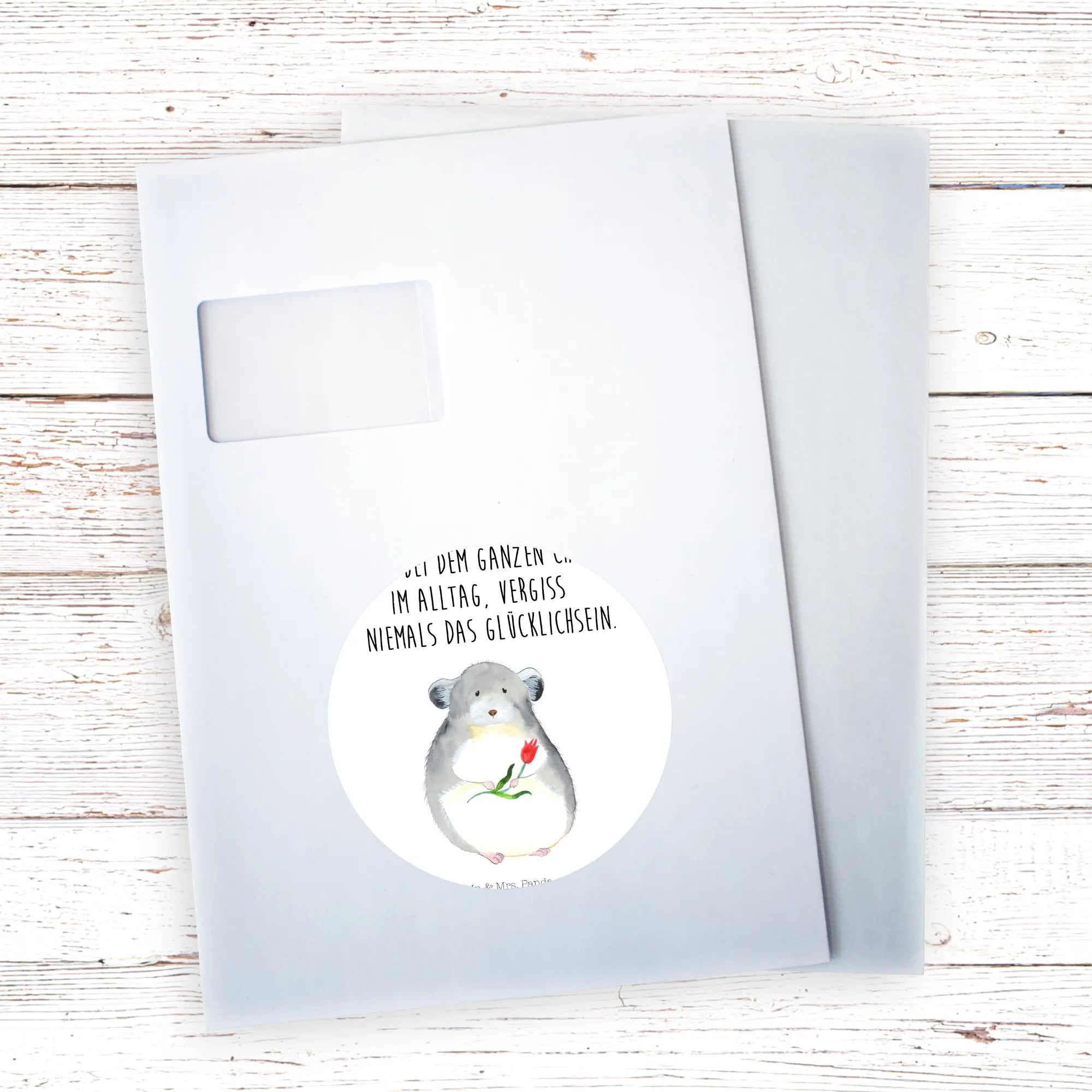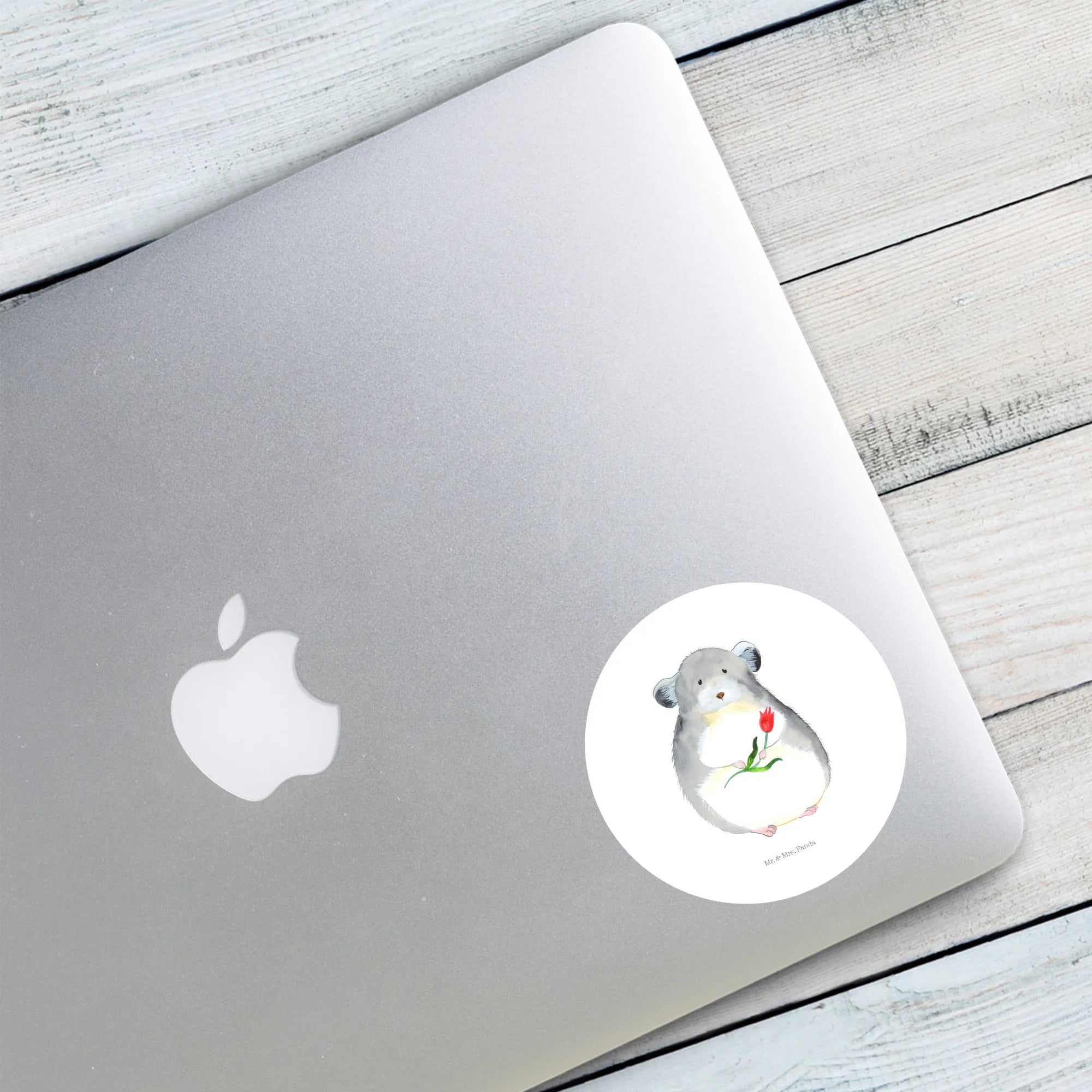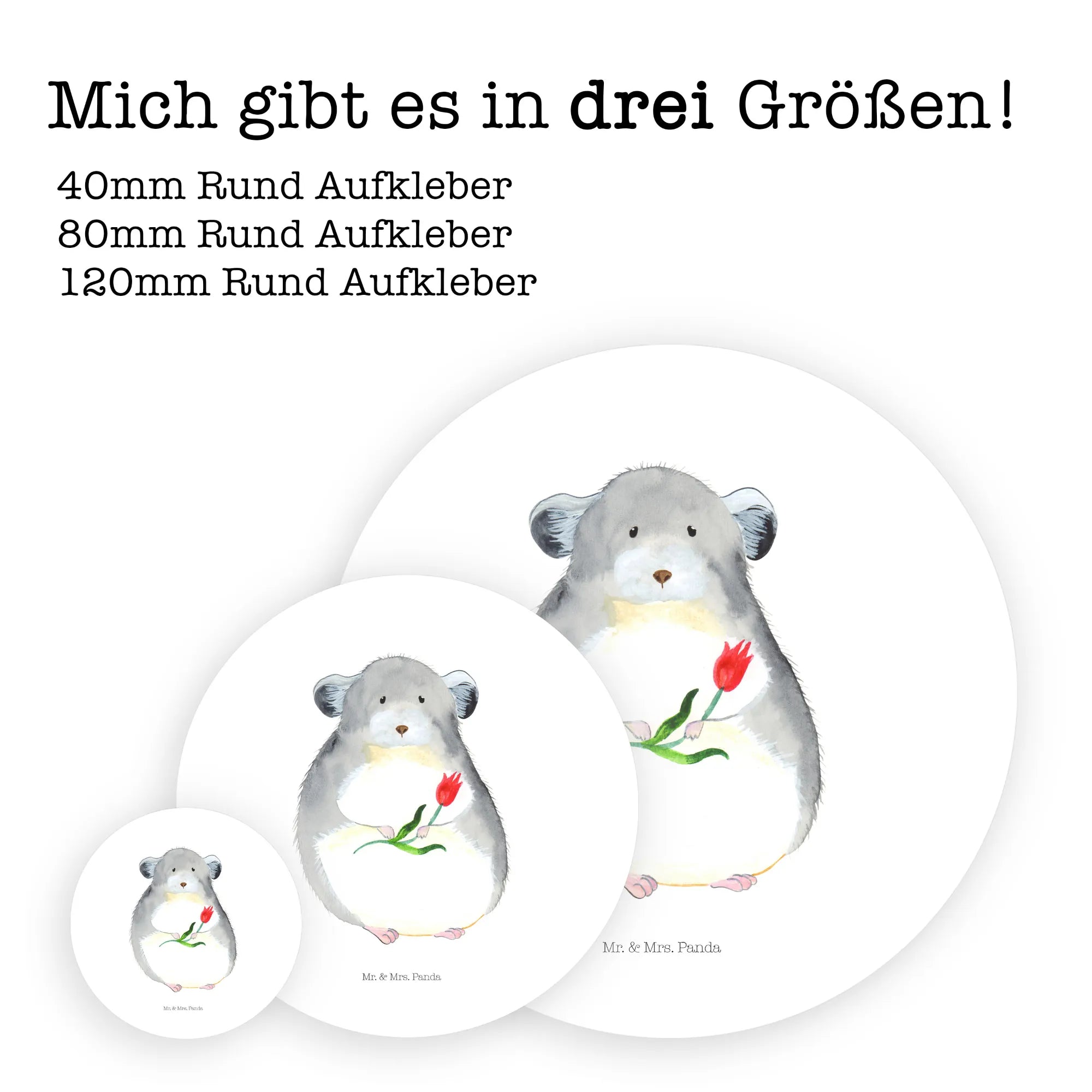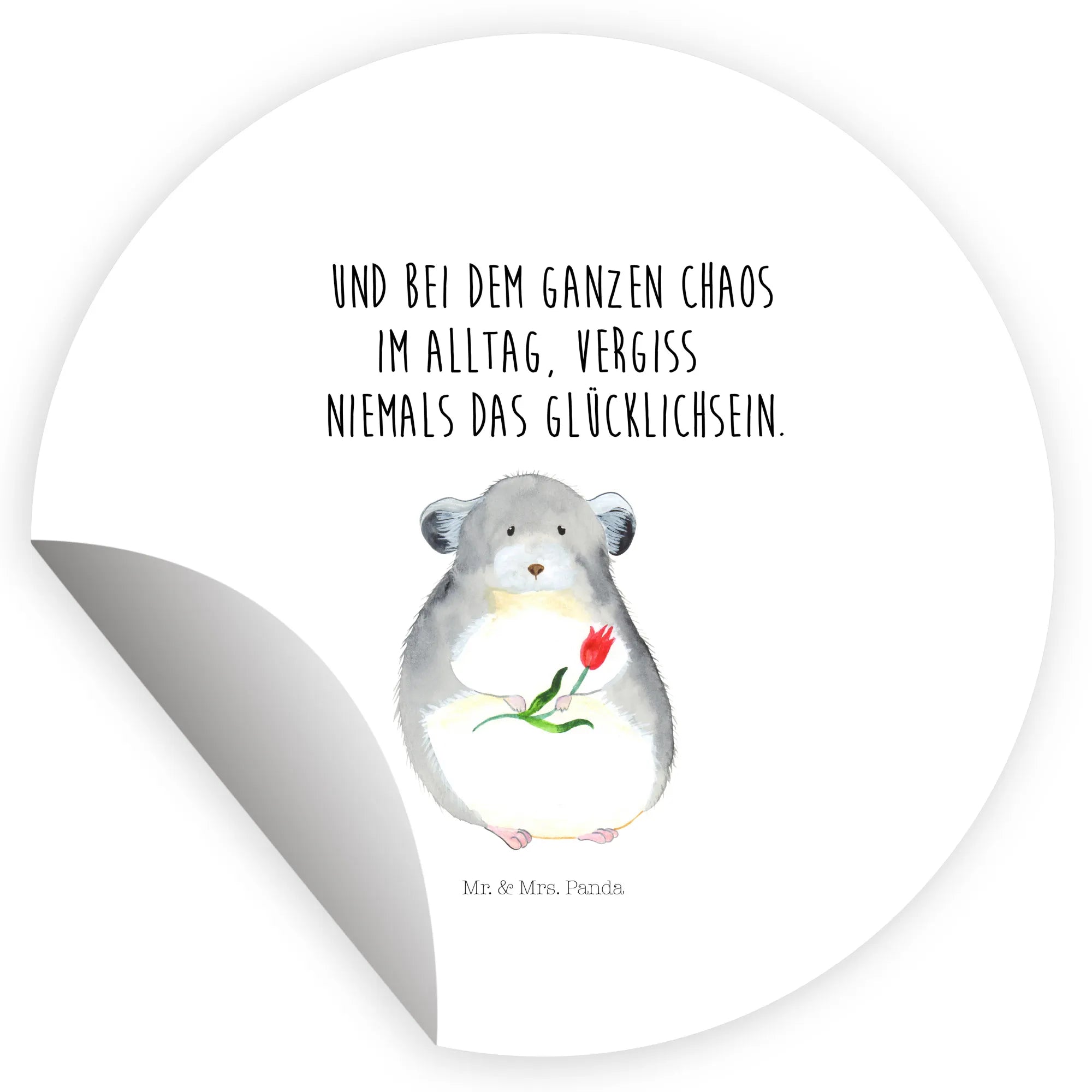80mm okrągła naklejka szynszyla kwiat - 80mm Rund Aufkleber - z napisem - biały