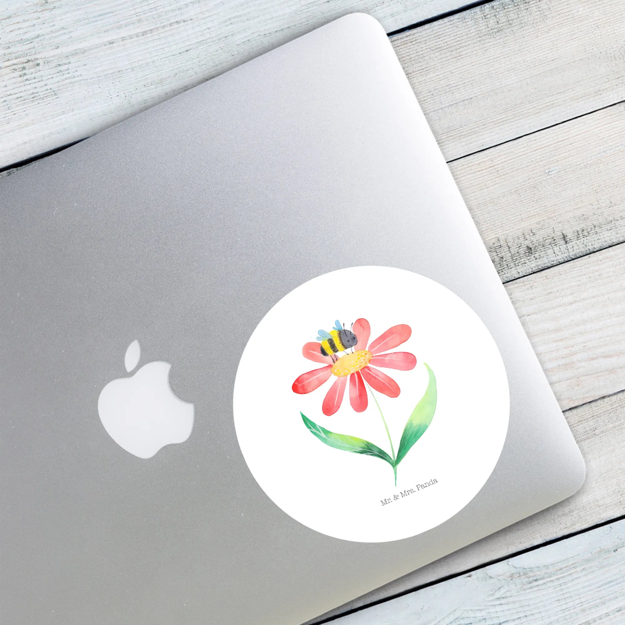 80mm okrągła naklejka trzmiel kwiat - 120mm Rund Aufkleber - z napisem - biały