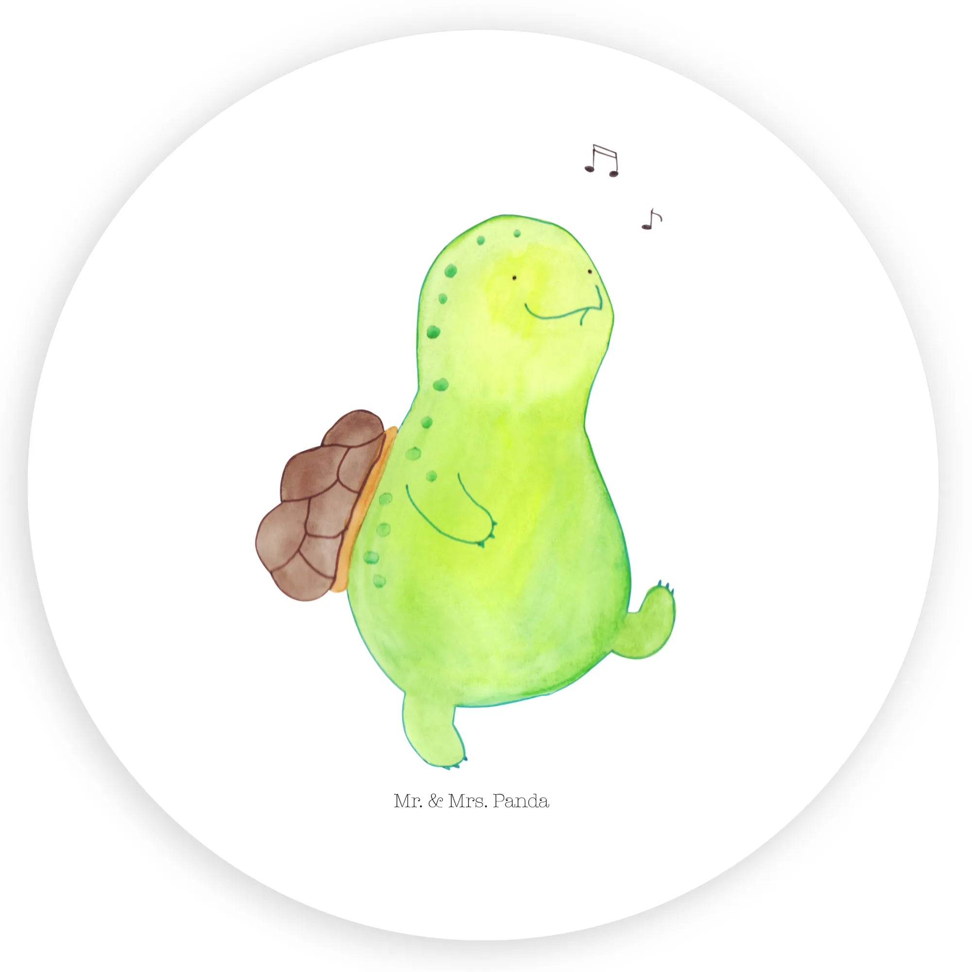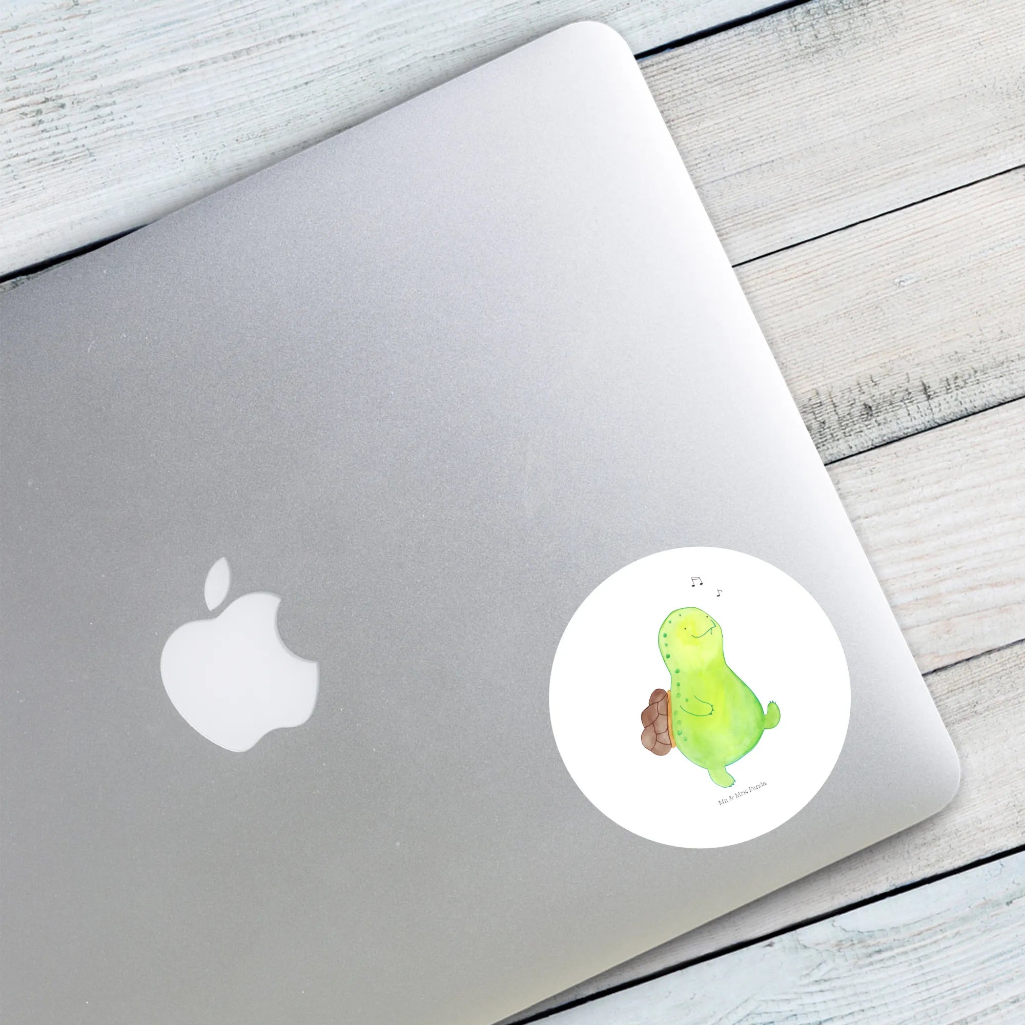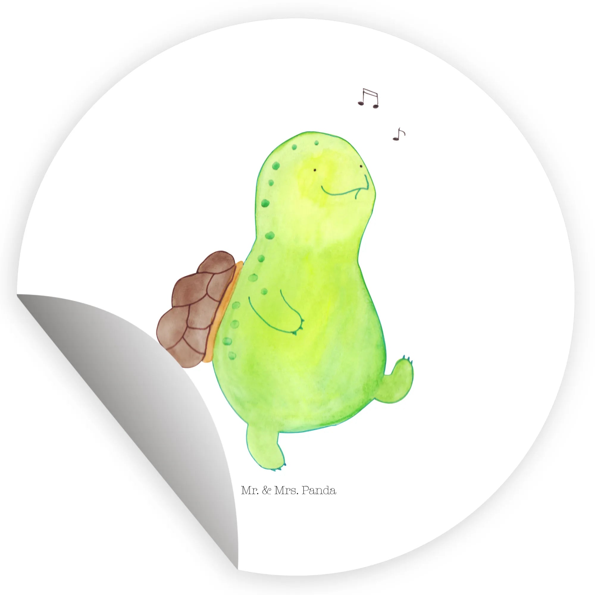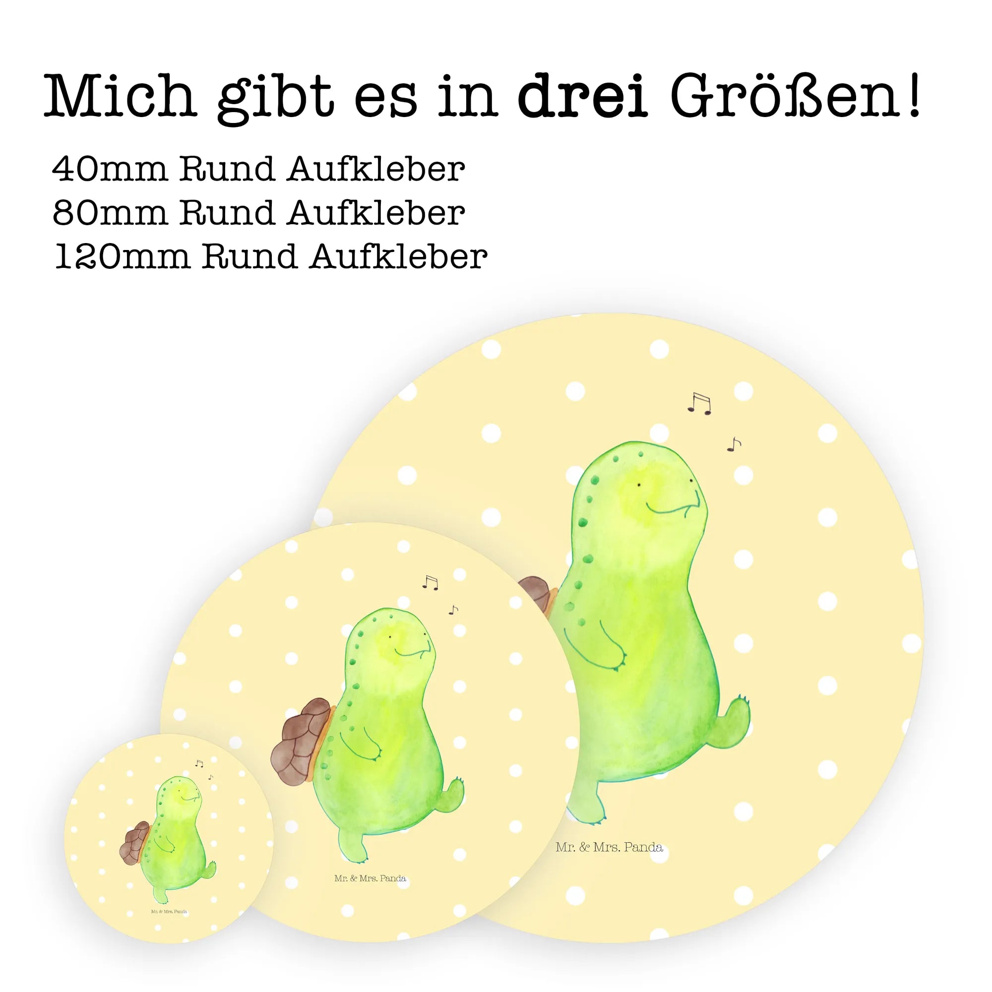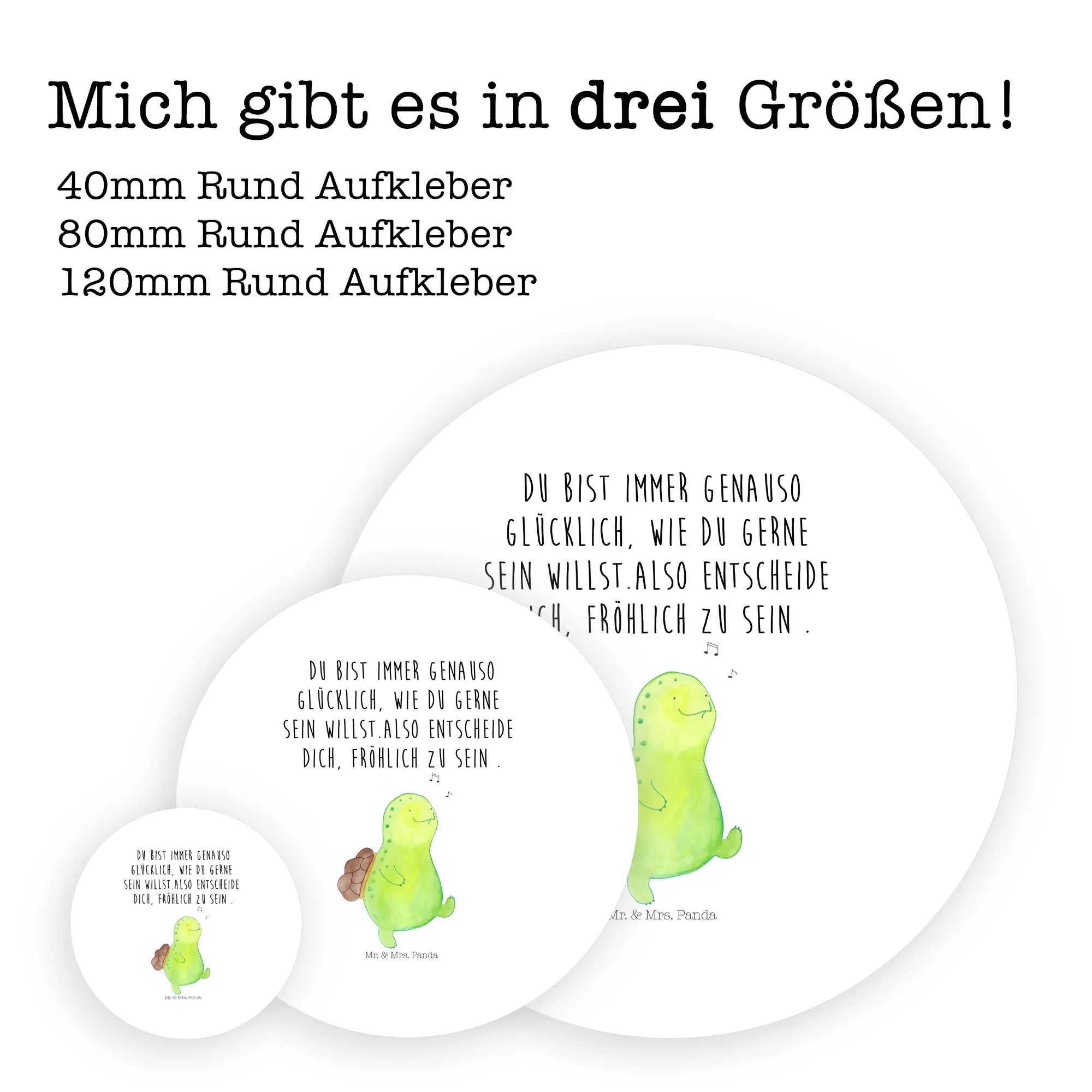 80mm okrągła naklejka żółw gwizdać - 80mm Rund Aufkleber - z napisem - biały