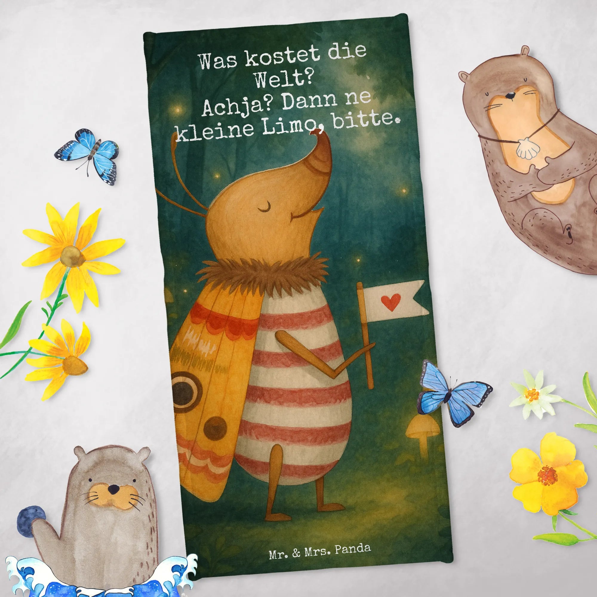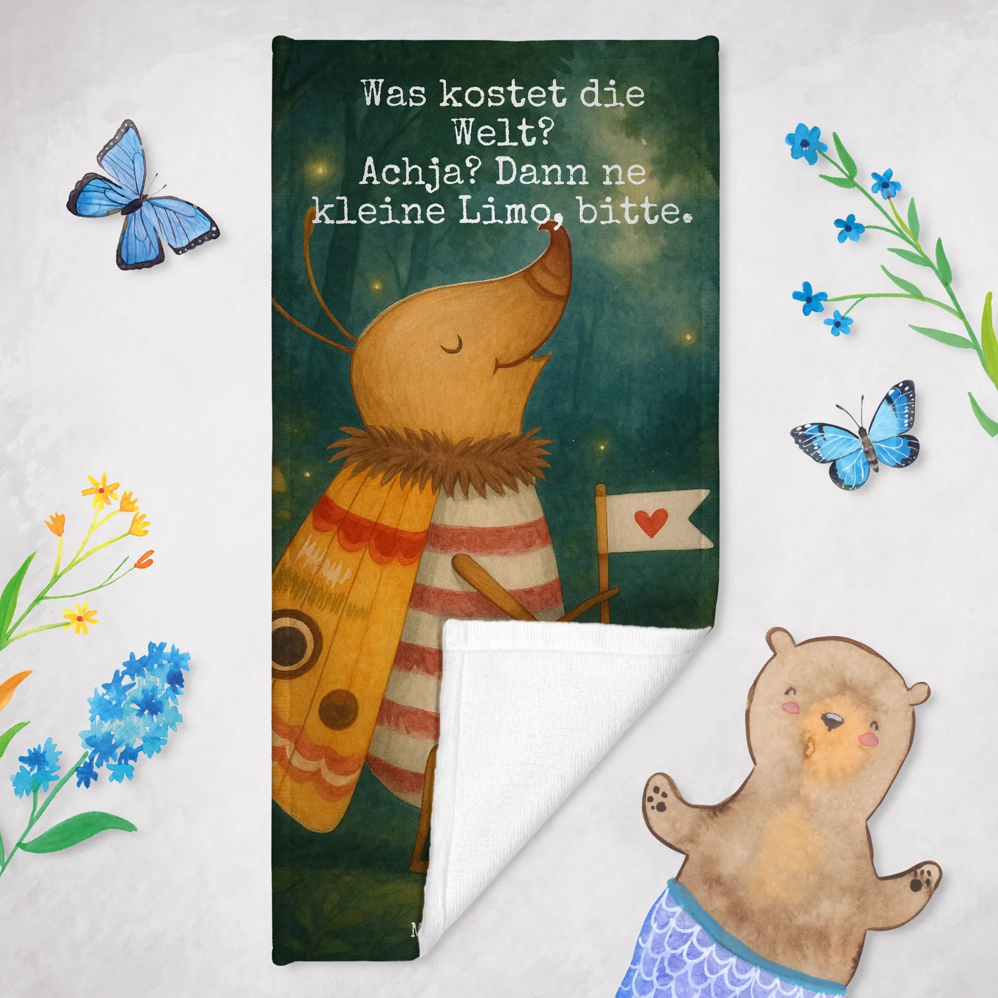 Badehandtuch Nachtfalter Fähnchen Design Duschtuch, Badetuch, Strandtuch, Saunatuch, Kinder Handtuch, Tiermotive, Gute Laune, lustige Sprüche, Tiere, Nachtfalter, Käfer, Spruch lustig, Spruch witzig, süß, niedlich, Küche Deko, Was kostet die Welt