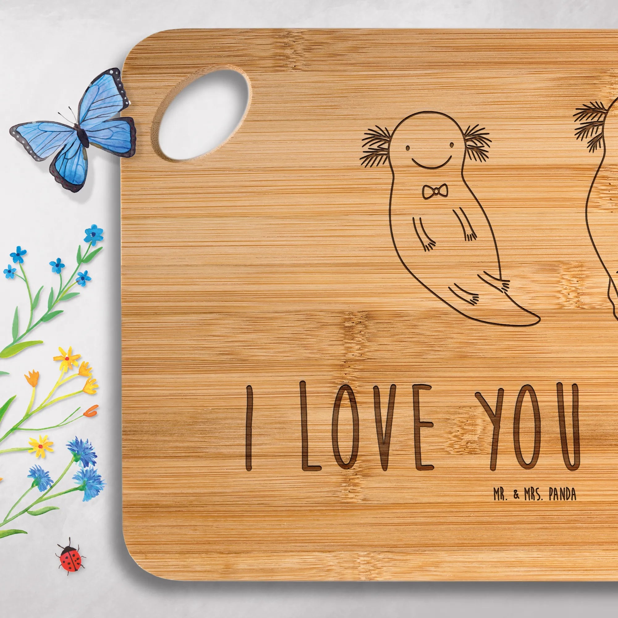 Bambus - deska do krojenia ajolotl Miłość – Mr. & Mrs. Panda