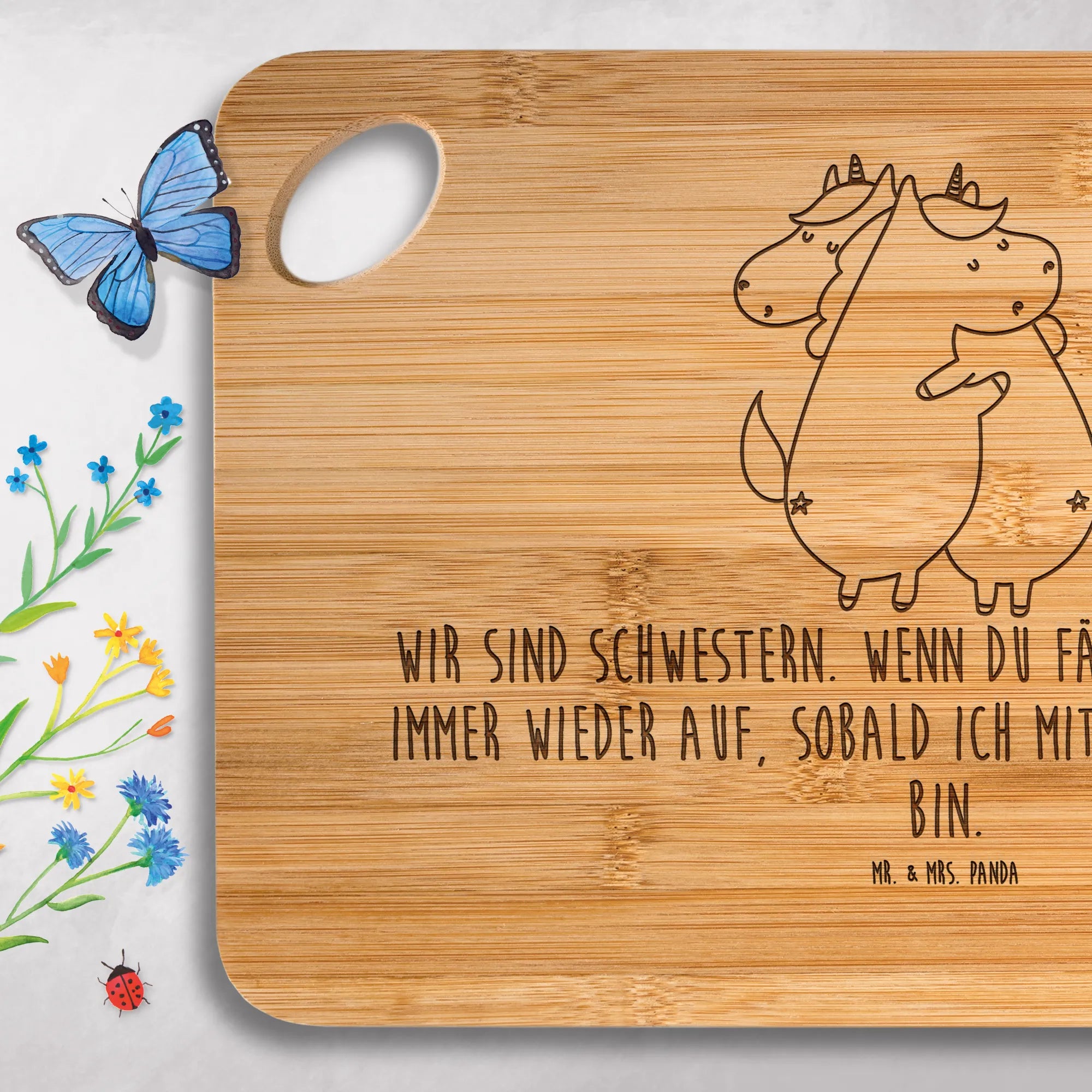 Bambus - deska do krojenia Jednorożce Przytulanie - z napisem