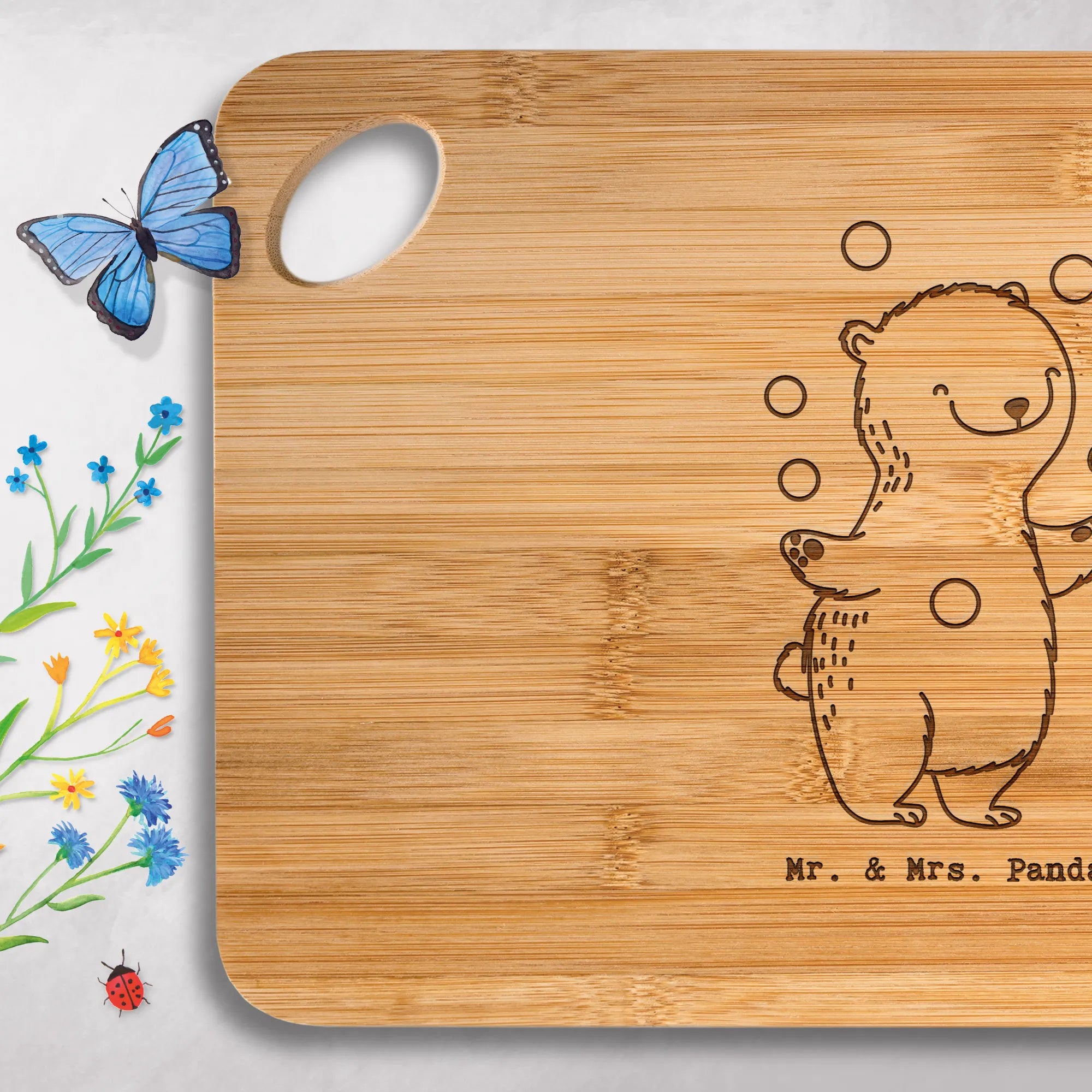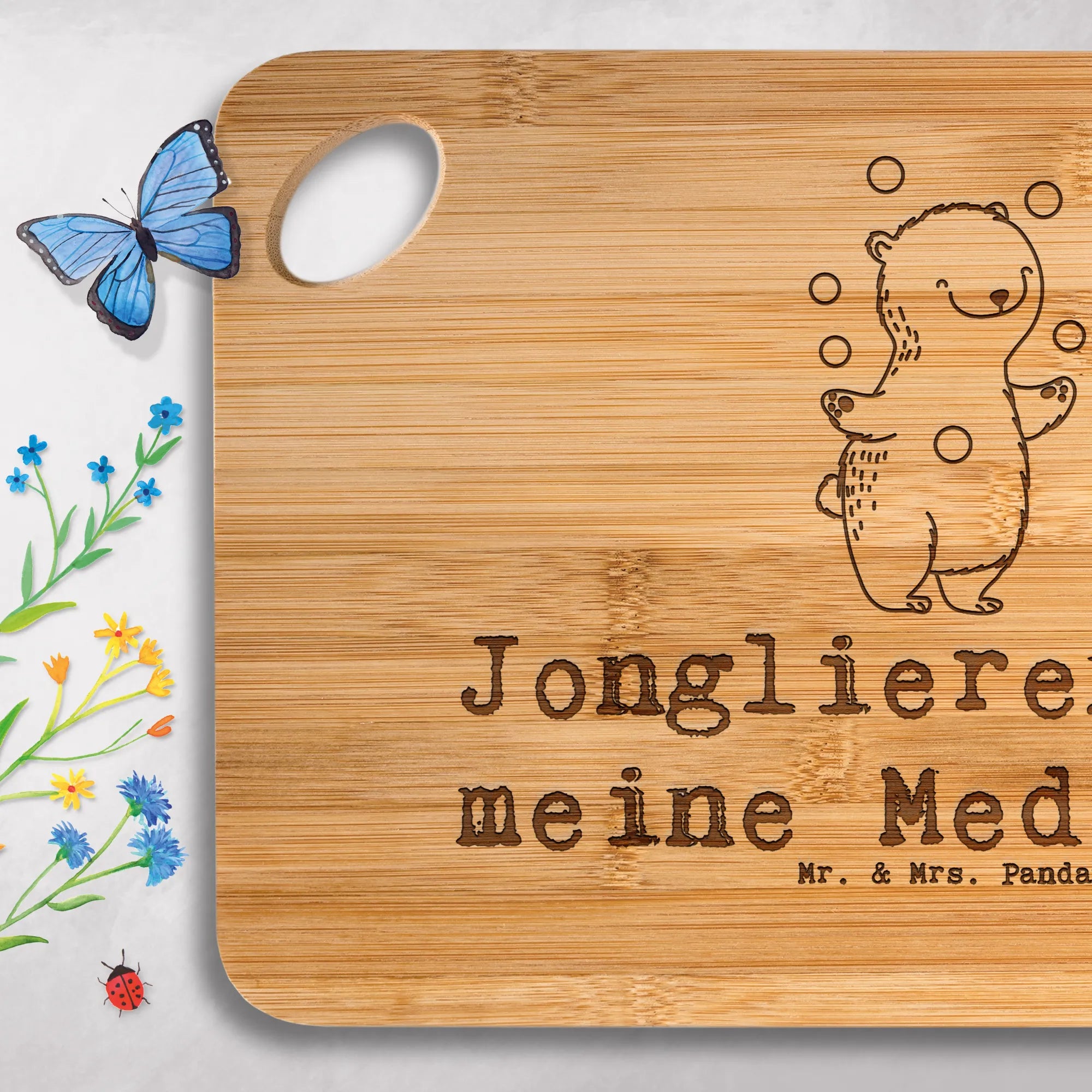 Bambus - deska do krojenia niedźwiedź żonglować - z napisem