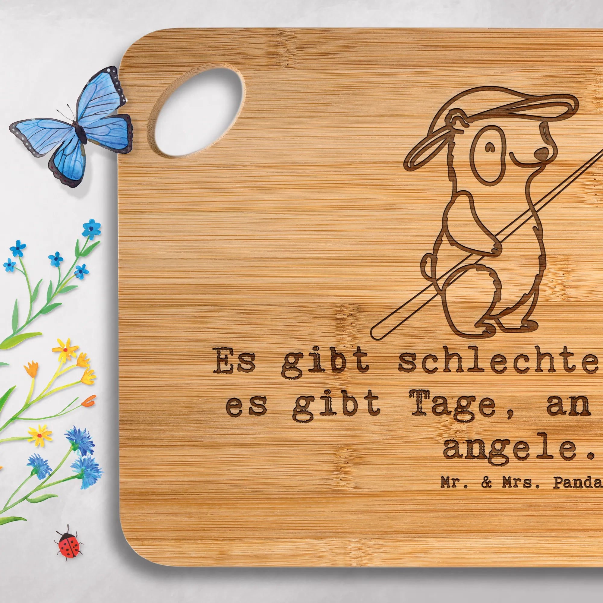 Bambus - deska do krojenia Panda Wędkowanie - z napisem