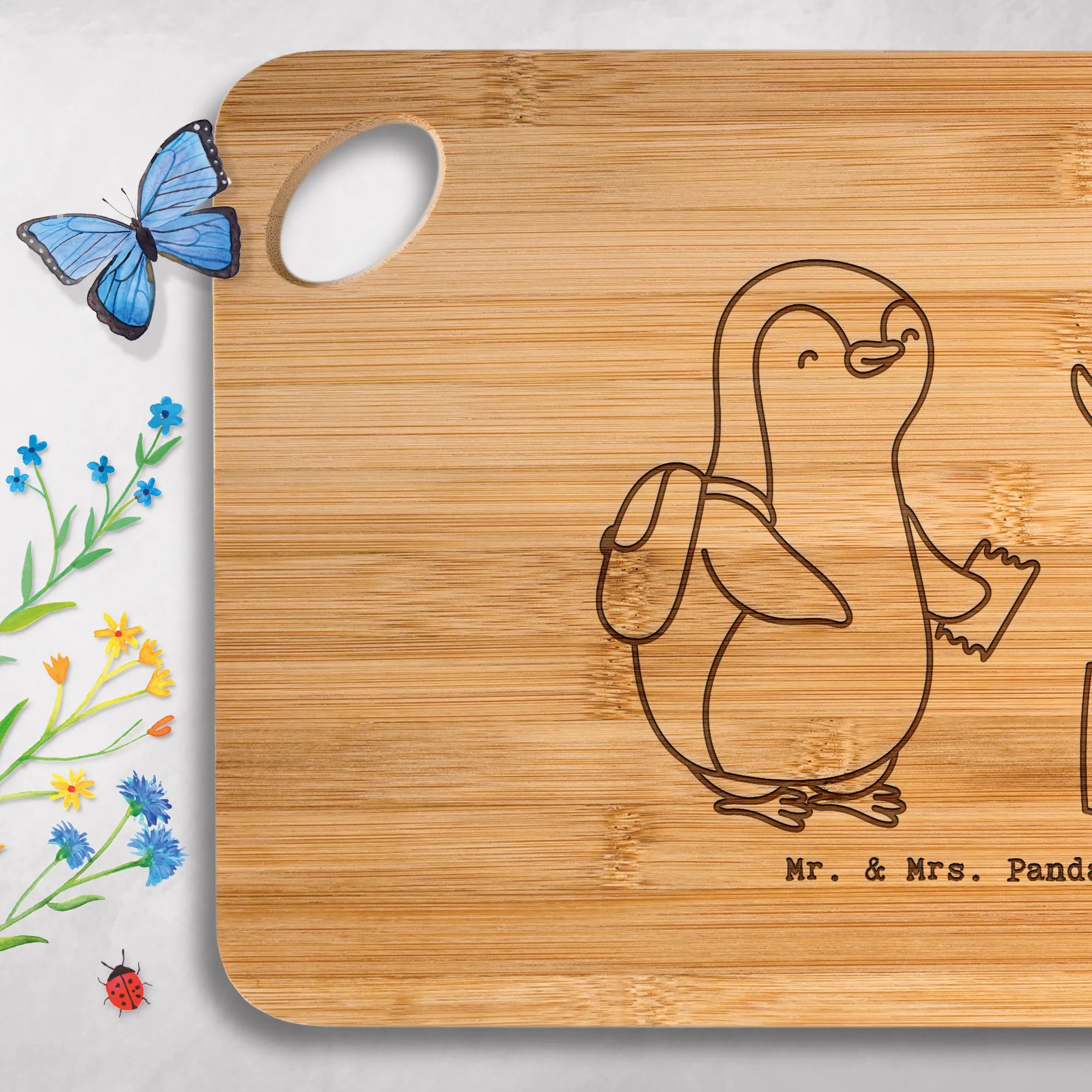 Bambus - deska do krojenia Pingwin Odwiedź muzeum - z napisem