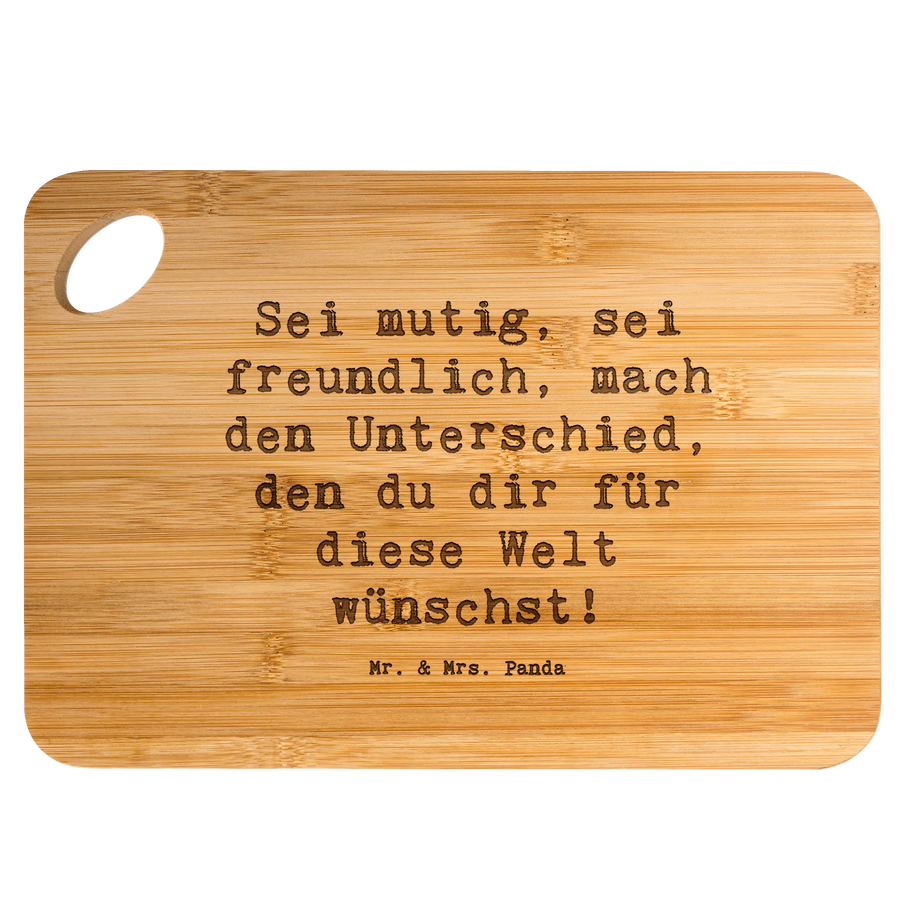 Bambus - deska do krojenia Przysłowie Sei mutig, sei freundlich, mach den Unterschied, den du dir für diese Welt wünschst! Hackbrett, Brett, Frühstücksbrett, Servierbrett, Holzbrett, Holzbrettchen, Küchenbrett, Schneidebrett, sprüche, zitate, spruch kollektion, inspiration, motivation, lebensweisheiten, geschenkideen, wanddeko, wohnaccessoires, sprüche sammlung, schöne sprüche, glück, liebe, freude, lächeln, alltag verschönern, nachhaltige geschenke, dekoration, kreativ, einzigartig, shopify, mr and mrs panda