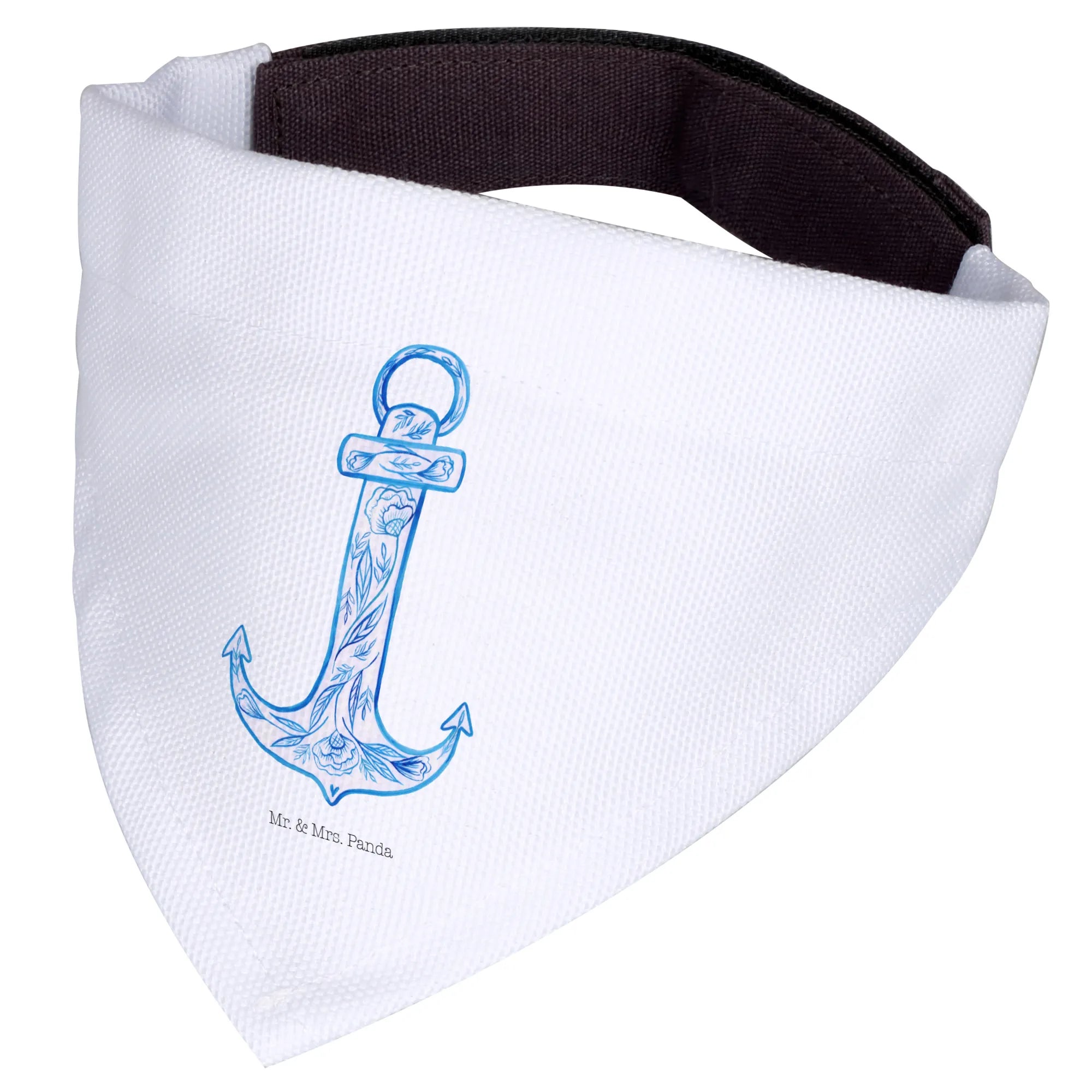 Bandana dla psa M kotwica Niebieski - Hundehalstuch M - z napisem - biały