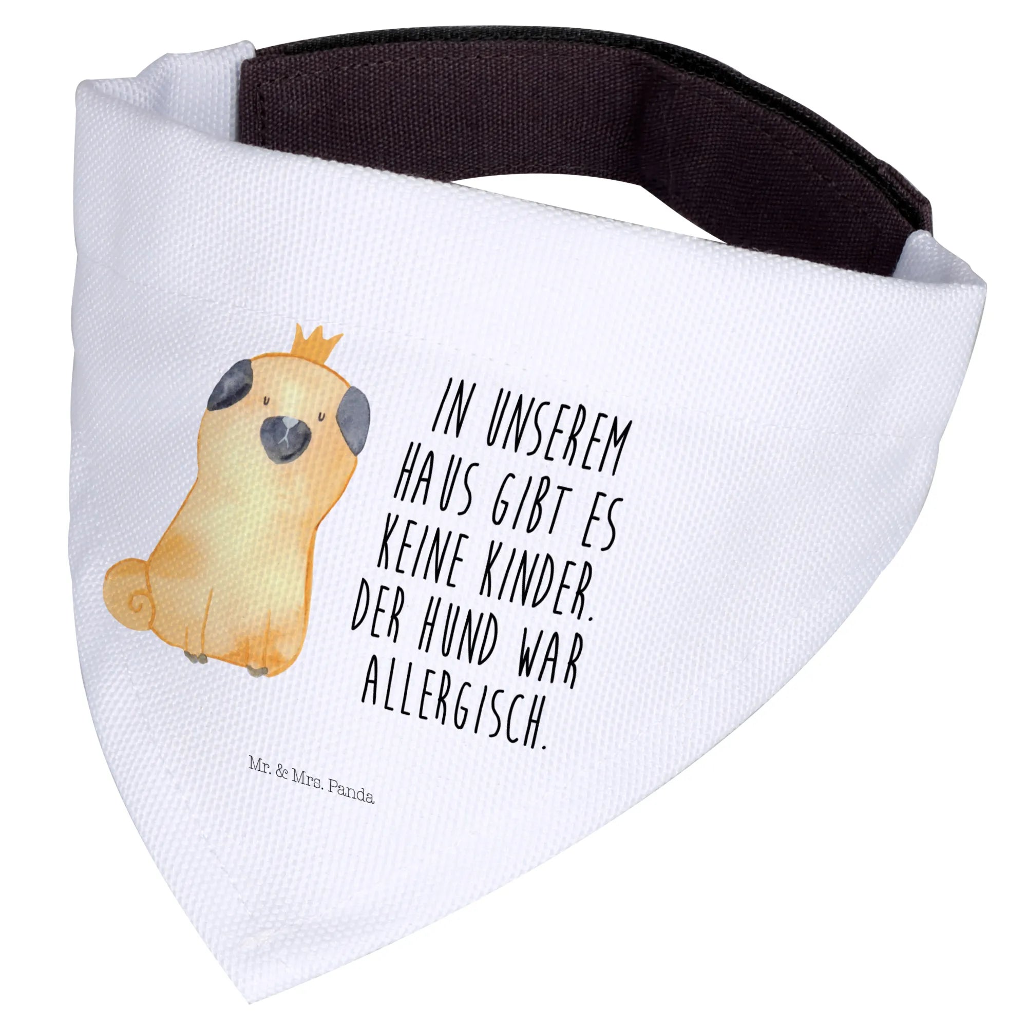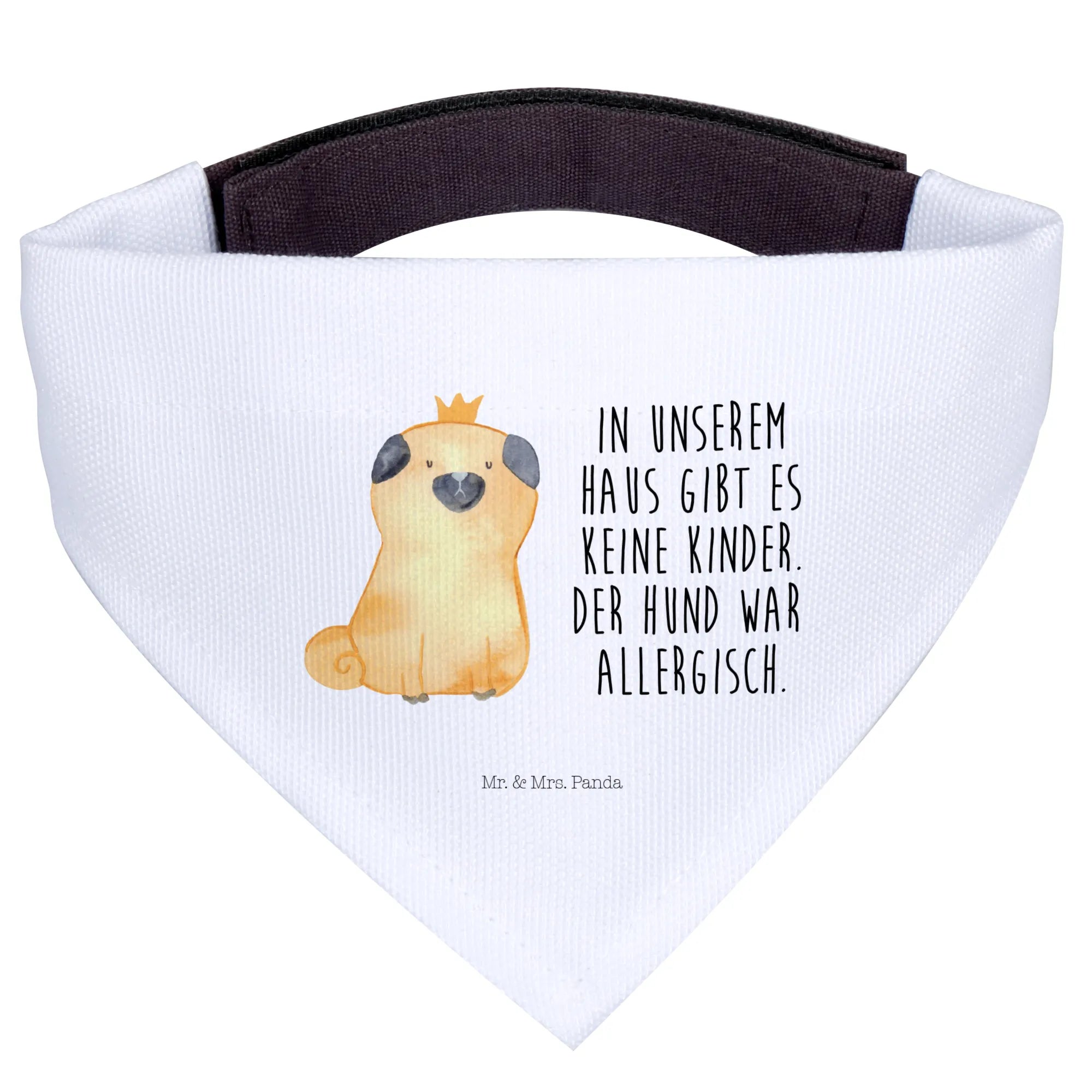 Bandana dla psa M mops korona - Hundehalstuch M - z napisem - biały
