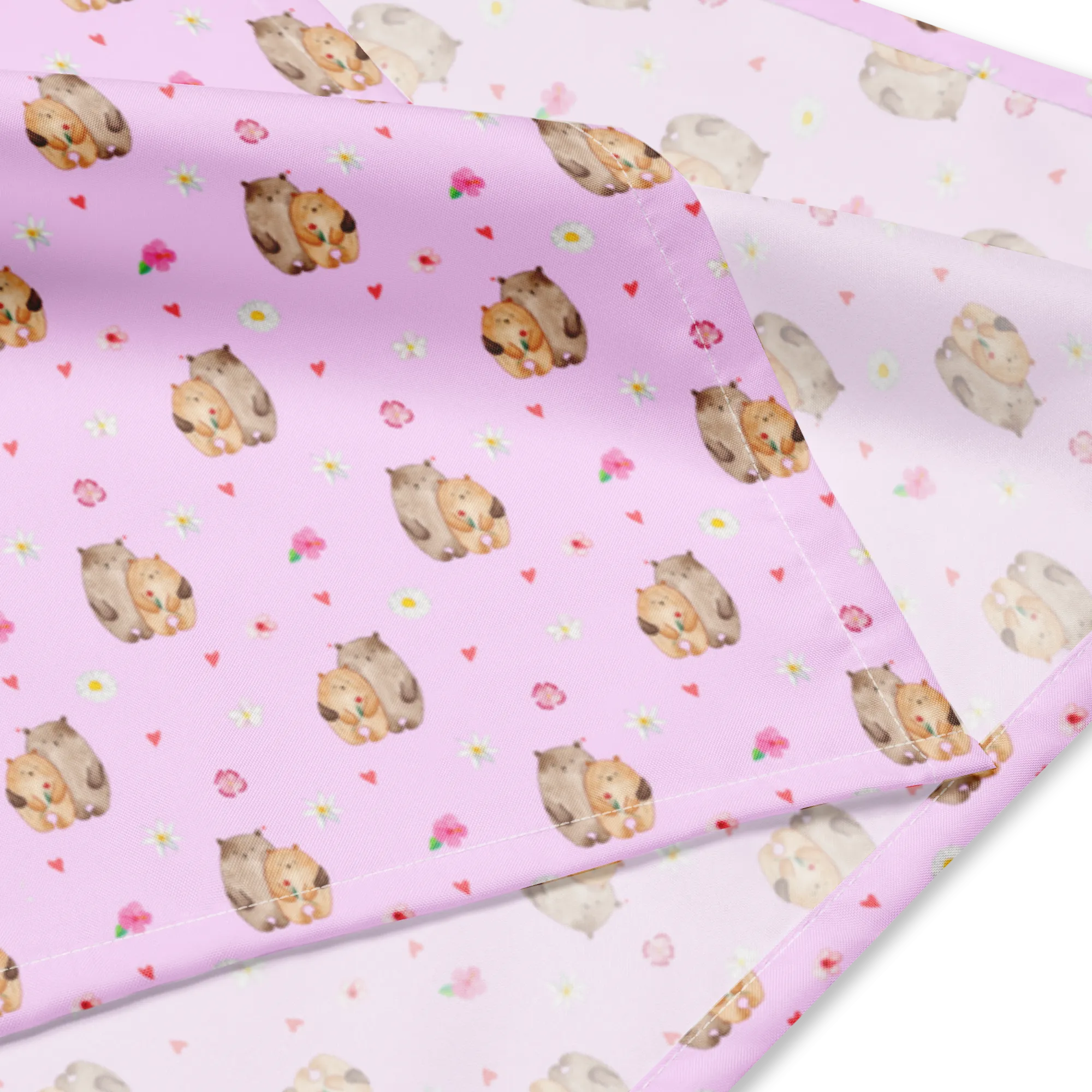 Mit einem liebevollen Design, das zwei liebende Bären zeigt, die ein Herz formen, versprüht es pure Romantik und Zuneigung. Der links stehende Bär hält eine zarte Blume und schaut den rechten Bären zärtlich an, während ein kleines Herz zwischen ihnen schwebt. Die sanften Brauntöne und die süße Botschaft machen dieses Bandana zu einem außergewöhnlichen Geschenk, das die Herzen höher schlagen lässt.
