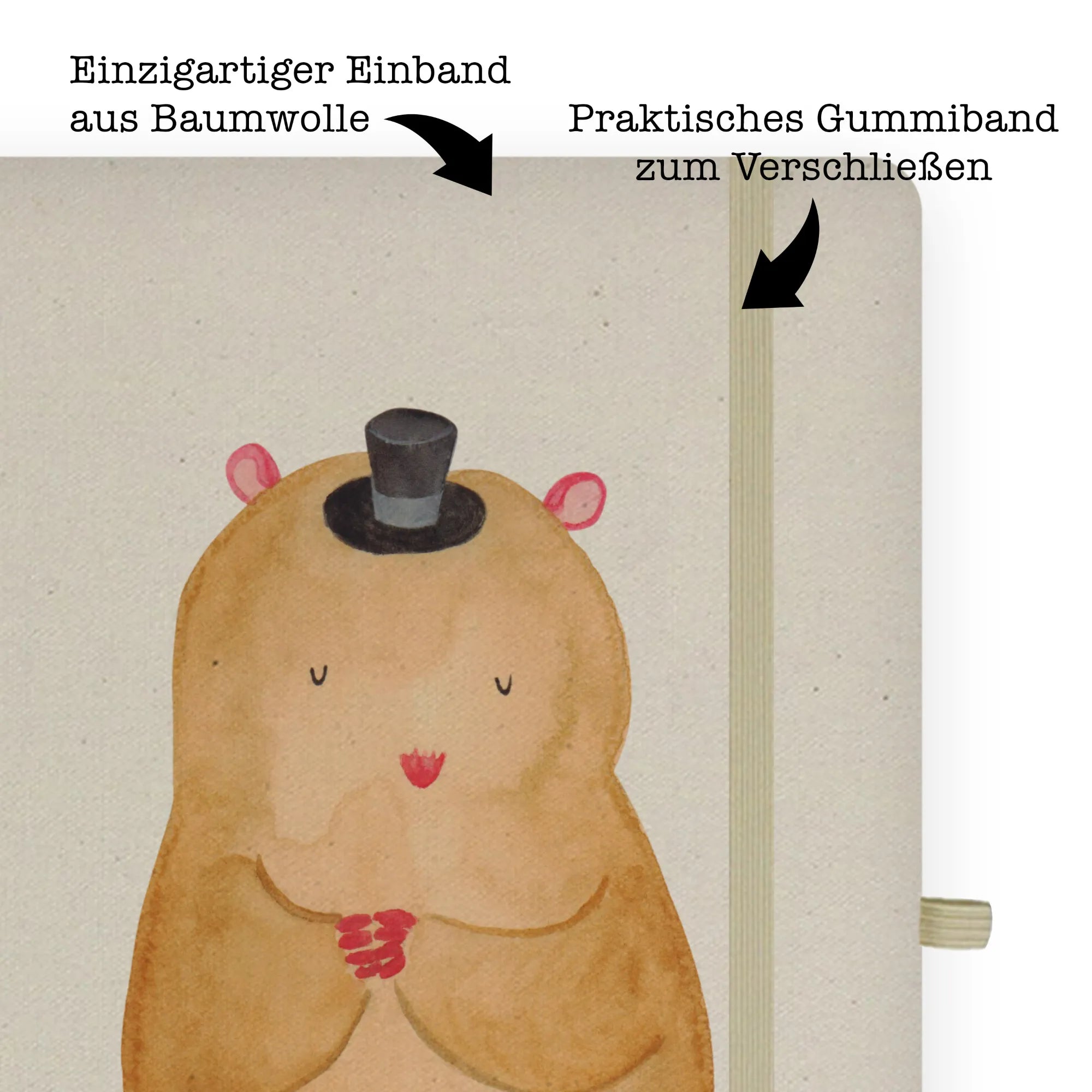 Bawełniany notatnik DIN A4 Chomik kapelusz - Bawełniany notatnik DIN A5 - z napisem