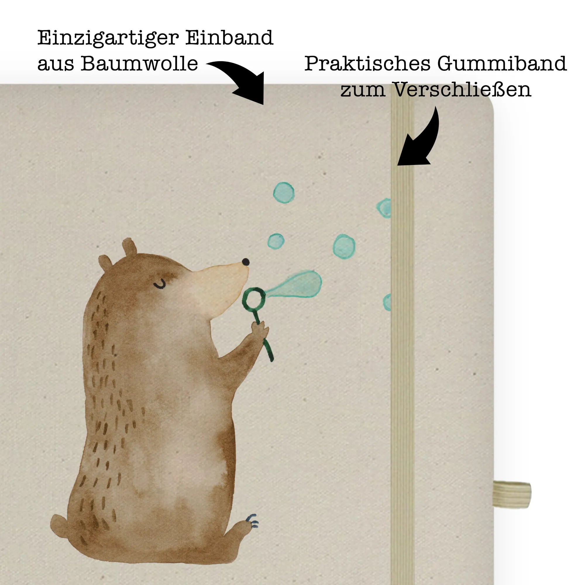 Bawełniany notatnik DIN A4 niedźwiedź bańki mydlane - Bawełniany notatnik DIN A5 - z napisem