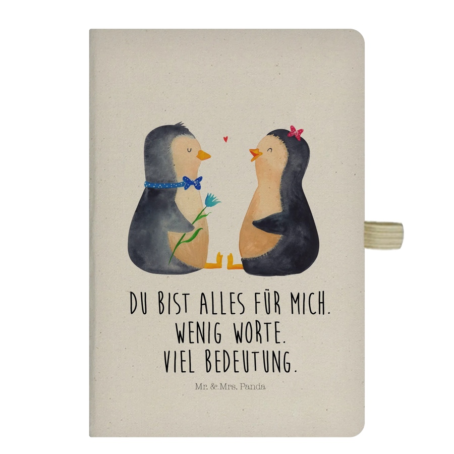 Bawełniany notatnik DIN A4 Pingwin para - DIN A4 Baumwoll Notizbuch - z napisem