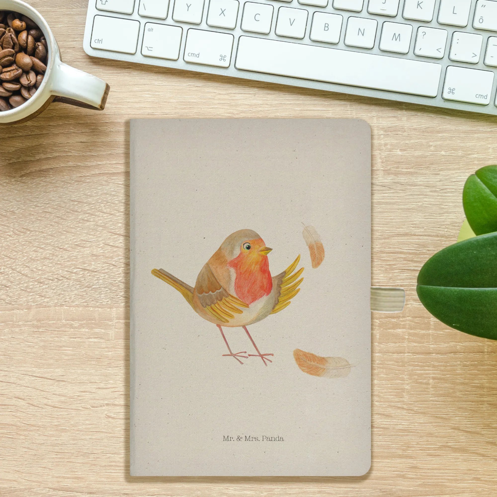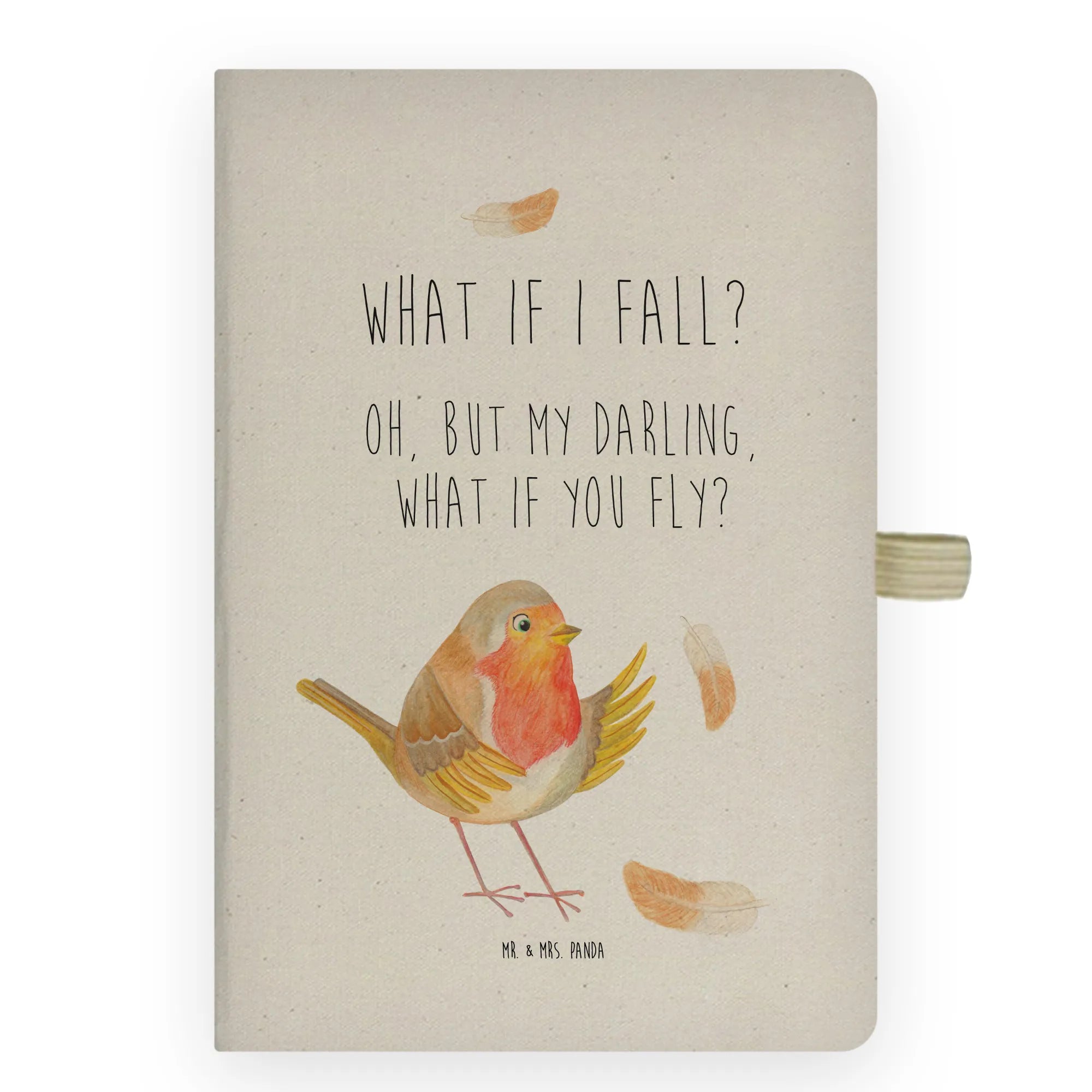 Bawełniany notatnik DIN A4 rudzik Pióra - Bawełniany notatnik DIN A5 - z napisem
