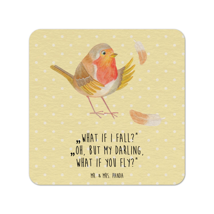 Der Bierdeckel "Rotkehlchen mit Federn" aus der wunderschönen Small World Kollektion von Mr. & Mrs. Panda ist das perfekte Gastgeschenk für Hochzeiten, Geburtstagsfeiern oder andere besondere Anlässe! Dieser quadratische Bierdeckel begeistert nicht nur mit seinem liebevollen Motiv, sondern auch mit einem berührenden Slogan: „What if I fall? Oh, but my darling, what if you fly?" Diese Worte zaubern ein Lächeln auf dein Gesicht und bringen eine Portion Motivation in deinen Alltag.