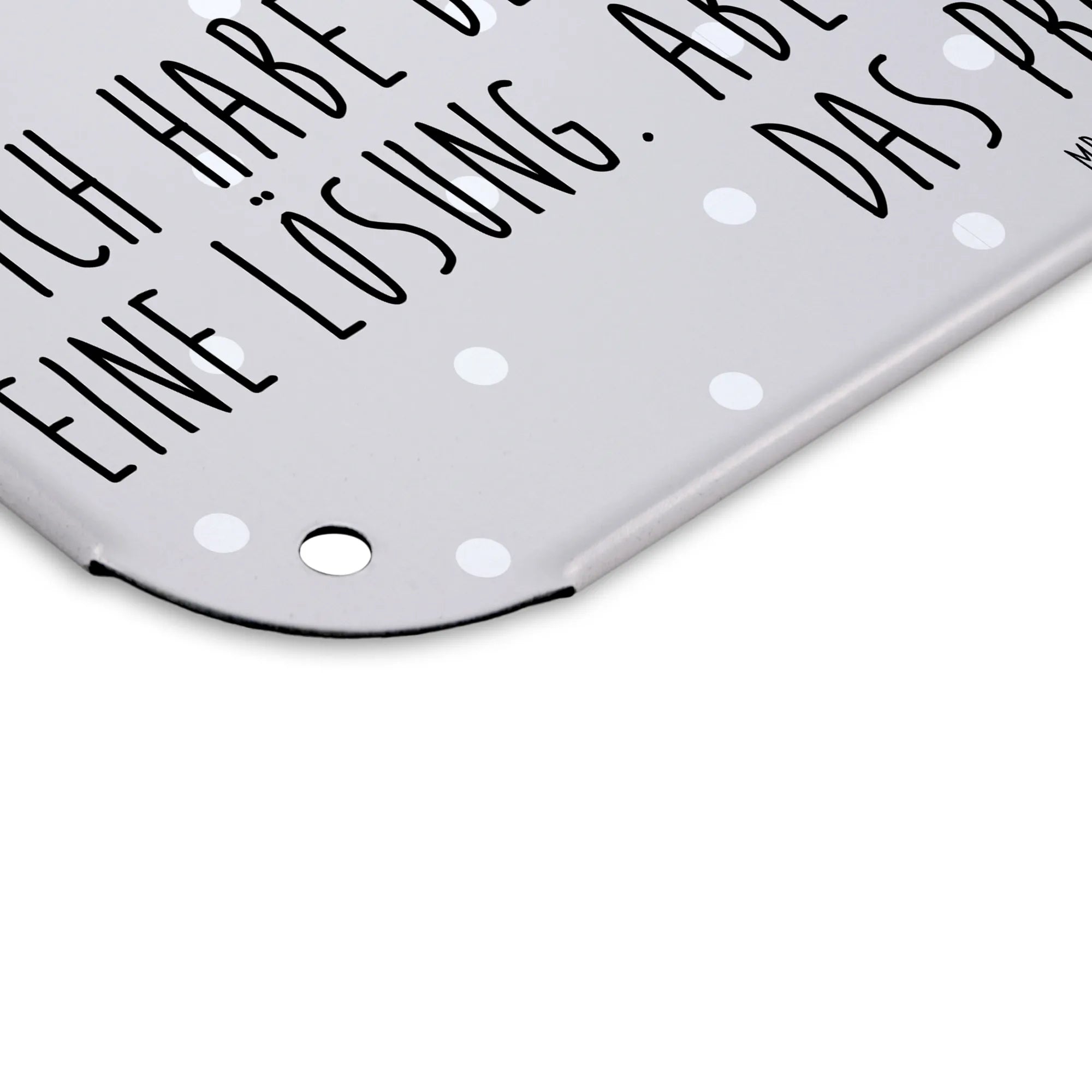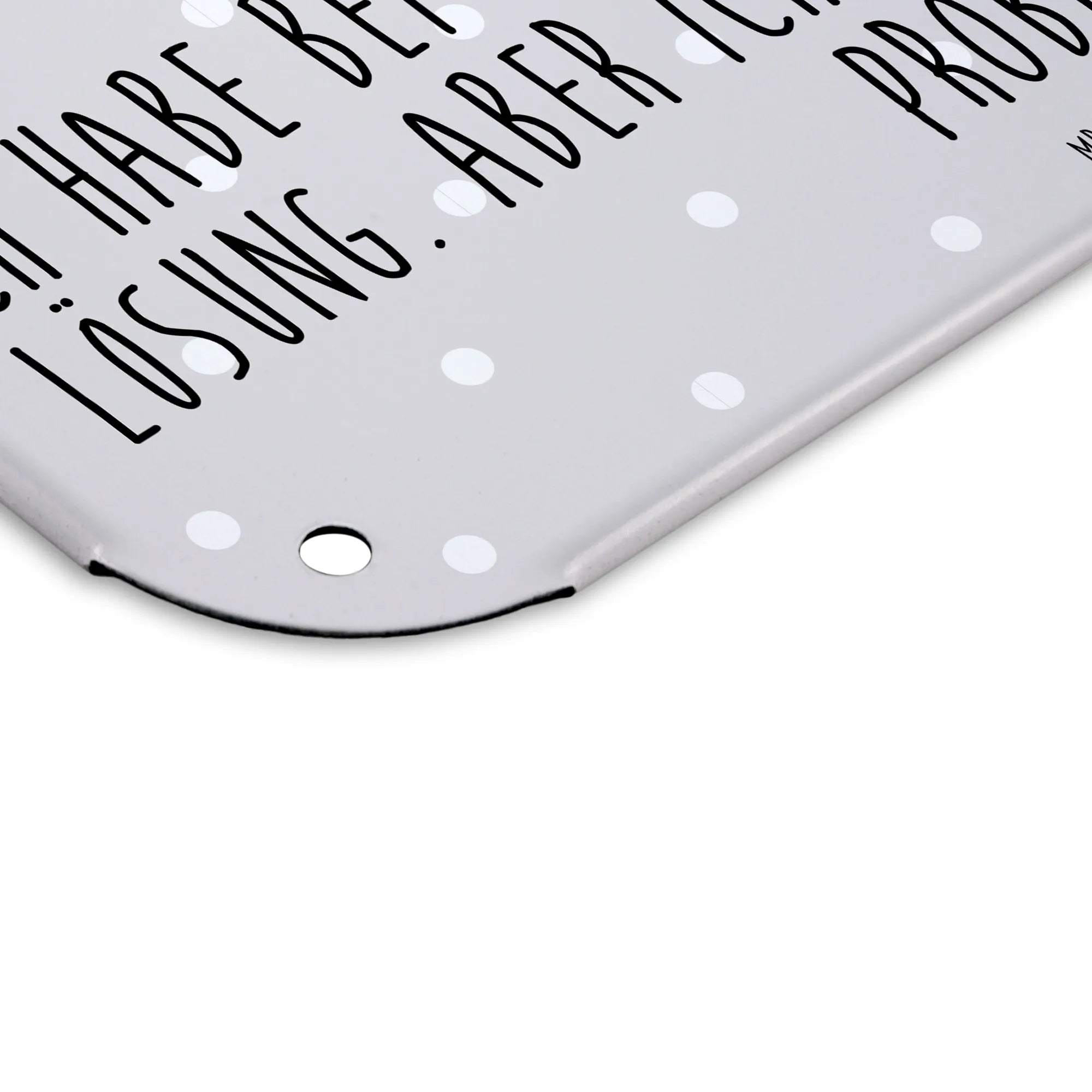 Das Blechschild mit dem niedlichen Motiv des Axolotls von Mr. & Mrs. Panda ist der perfekte Hingucker für dein Zuhause! In der Größe DIN A3, ausgestattet mit dem Spruch "Ich habe bei Problemen nicht immer eine Lösung. Aber ich bewundere gerne das Problem.", ist dieses Schild nicht nur ein schönes Deko-Element, sondern auch eine amüsante Erinnerung daran, das Leben leicht zu nehmen. Das hochwertige Stahlblech sorgt für ein edles Aussehen und die seidenmatte Oberfläche verleiht dem Schild eine besondere Eleganz.