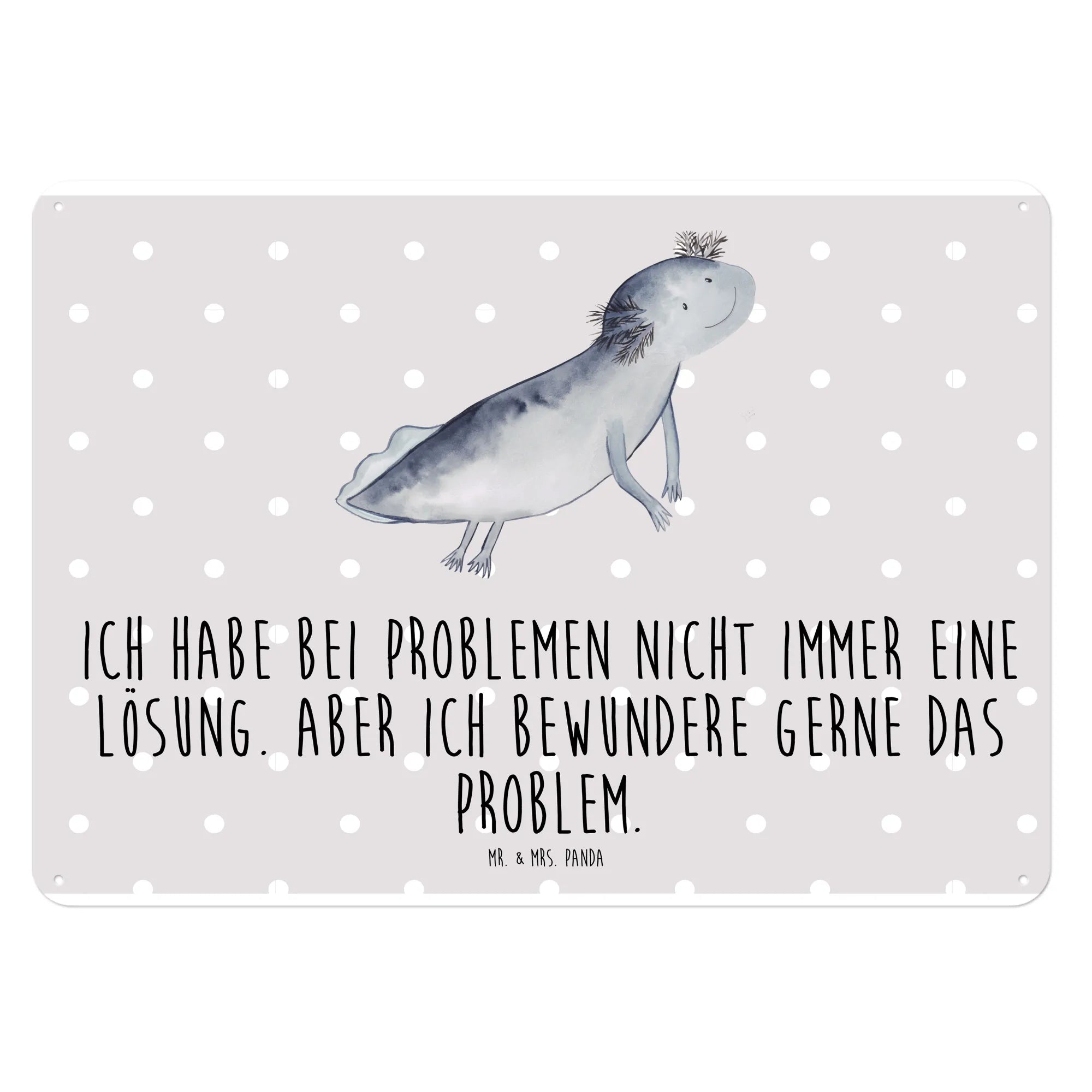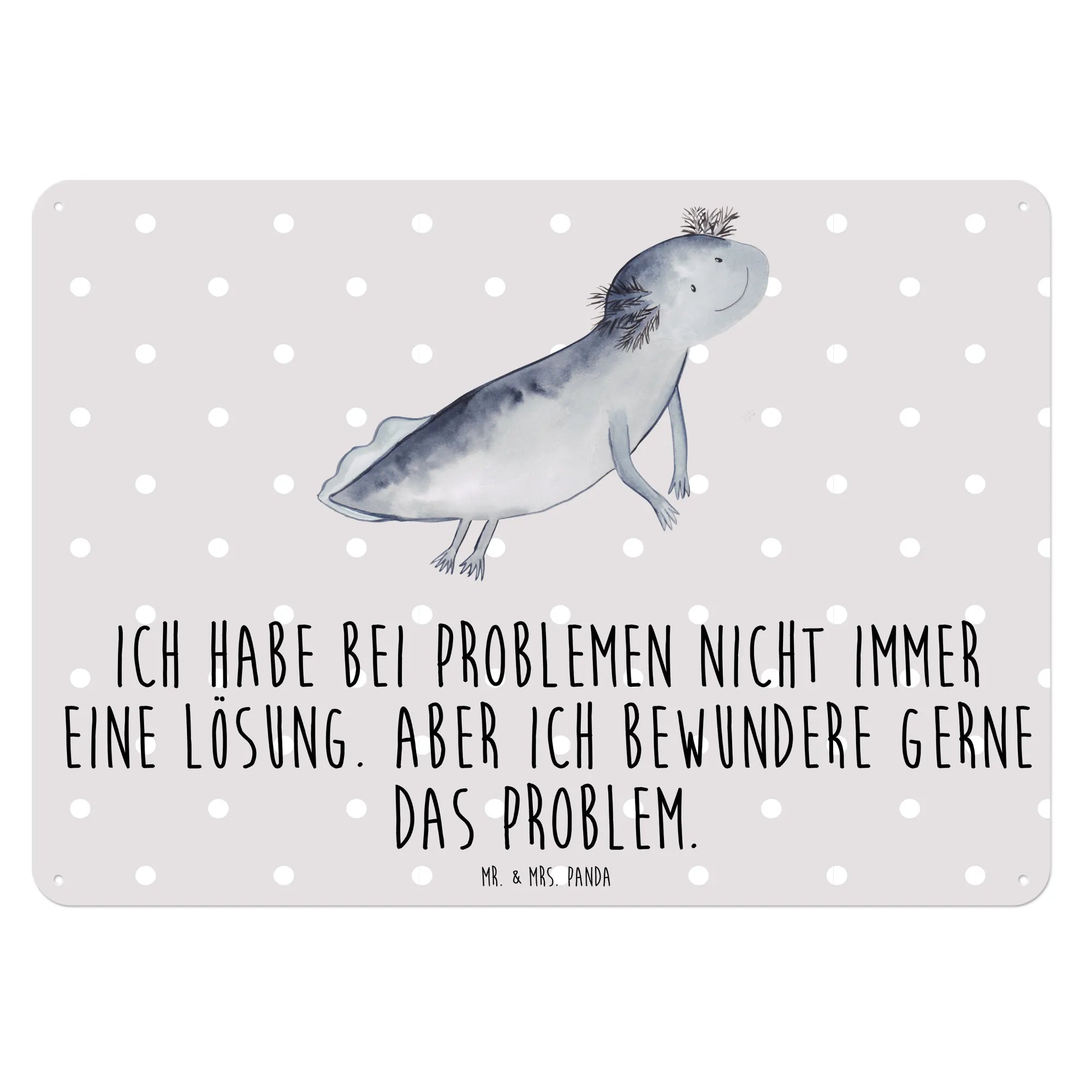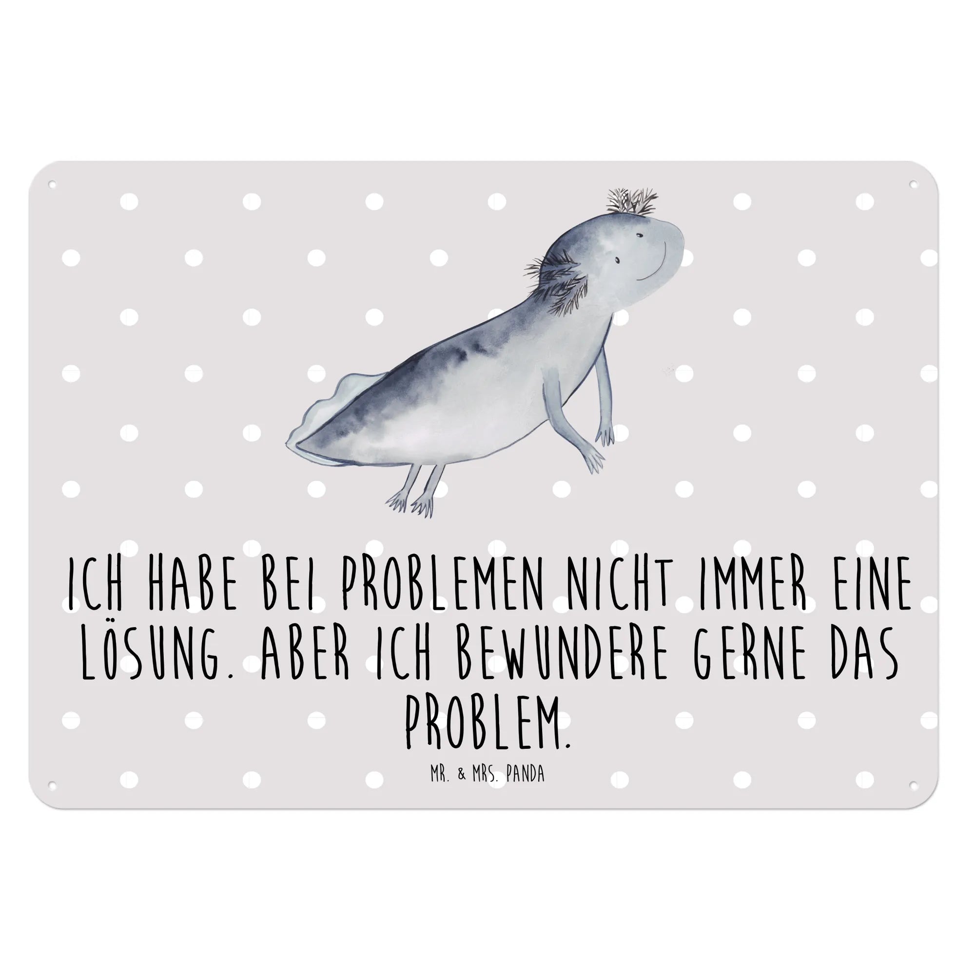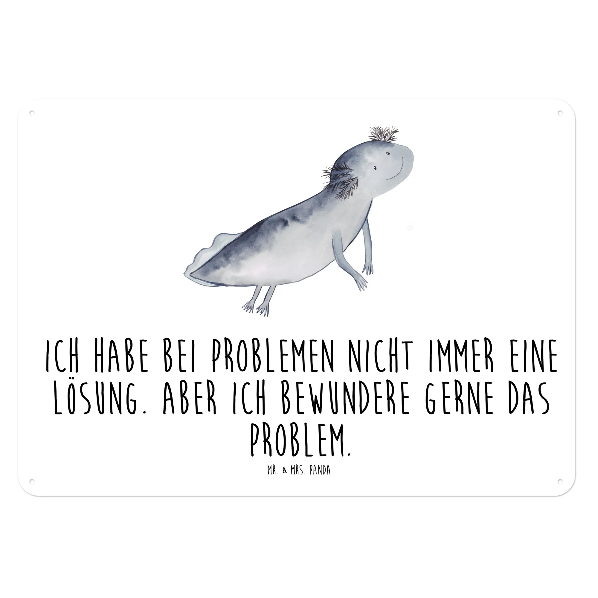 Tauche ein in die bunte Welt des Axolotl mit unserem edlen Blechschild von Mr. & Mrs. Panda! Dieses wunderschöne Schild, bedruckt mit einem niedlichen Axolotl-Motiv, ist nicht nur ein Blickfang in jedem Raum, sondern auch eine tolle Geschenkidee für Freunde und Familie. Mit dem Slogan 'Ich habe bei Problemen nicht immer eine Lösung. Aber ich bewundere gerne das Problem.' bringt es einen Hauch von Humor und Inspiration in dein Zuhause.