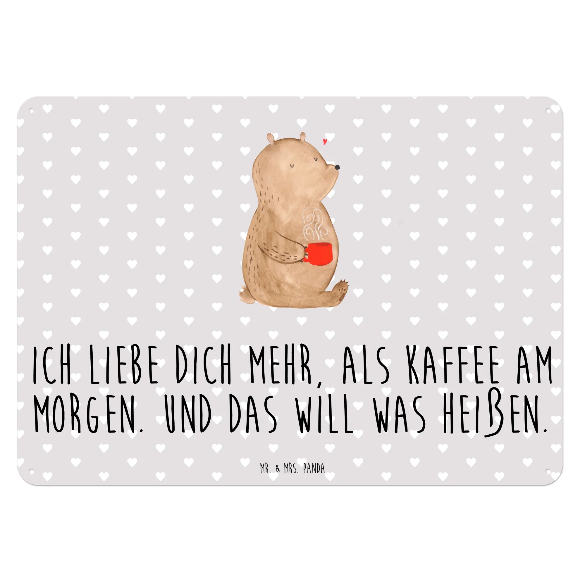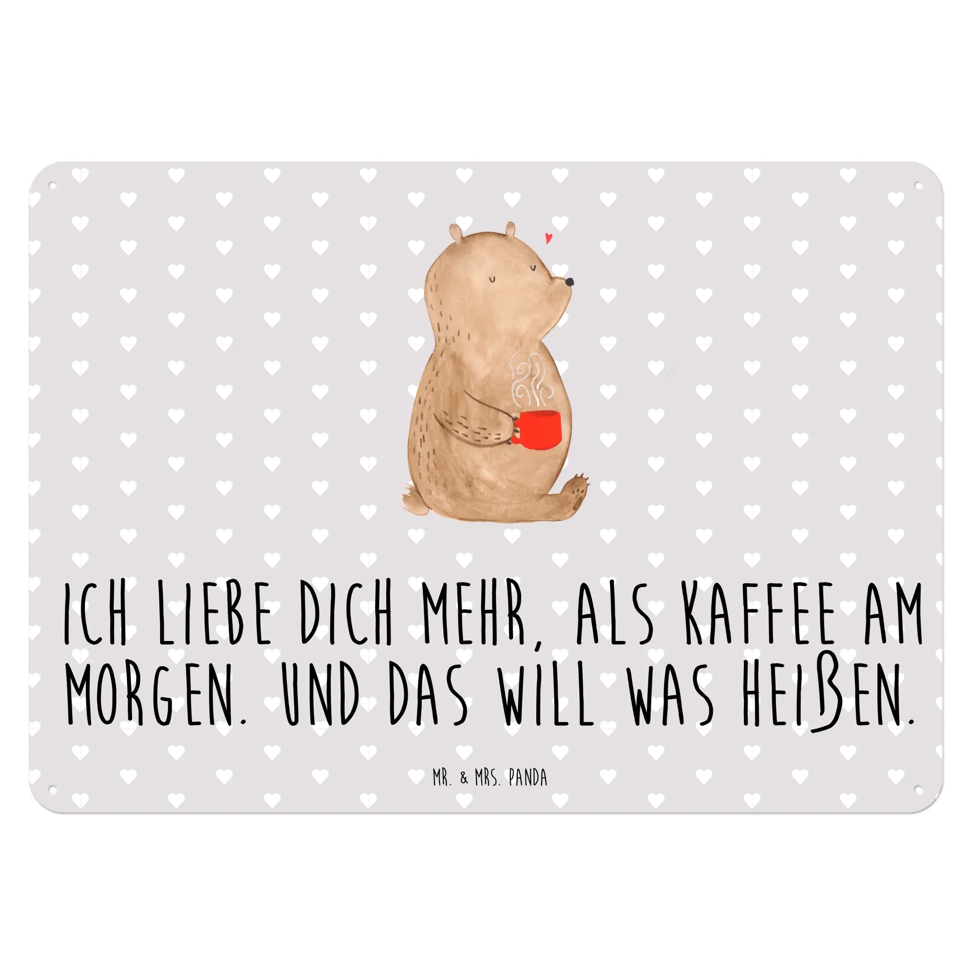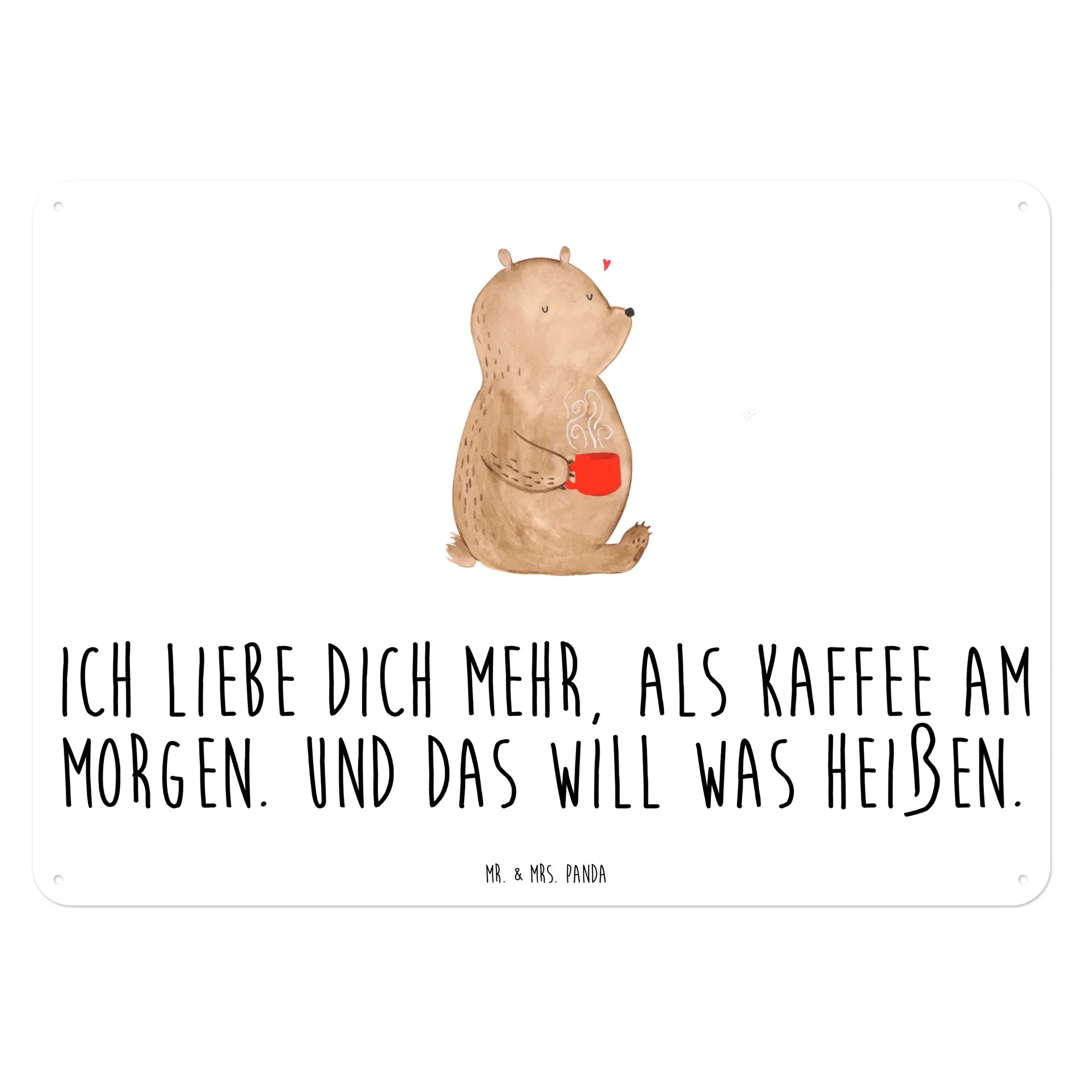 Das wunderschöne Blechschild "Bär Morgenkaffee" von Mr. & Mrs. Panda ist das perfekte Geschenk für alle, die die kleinen Dinge im Leben lieben.