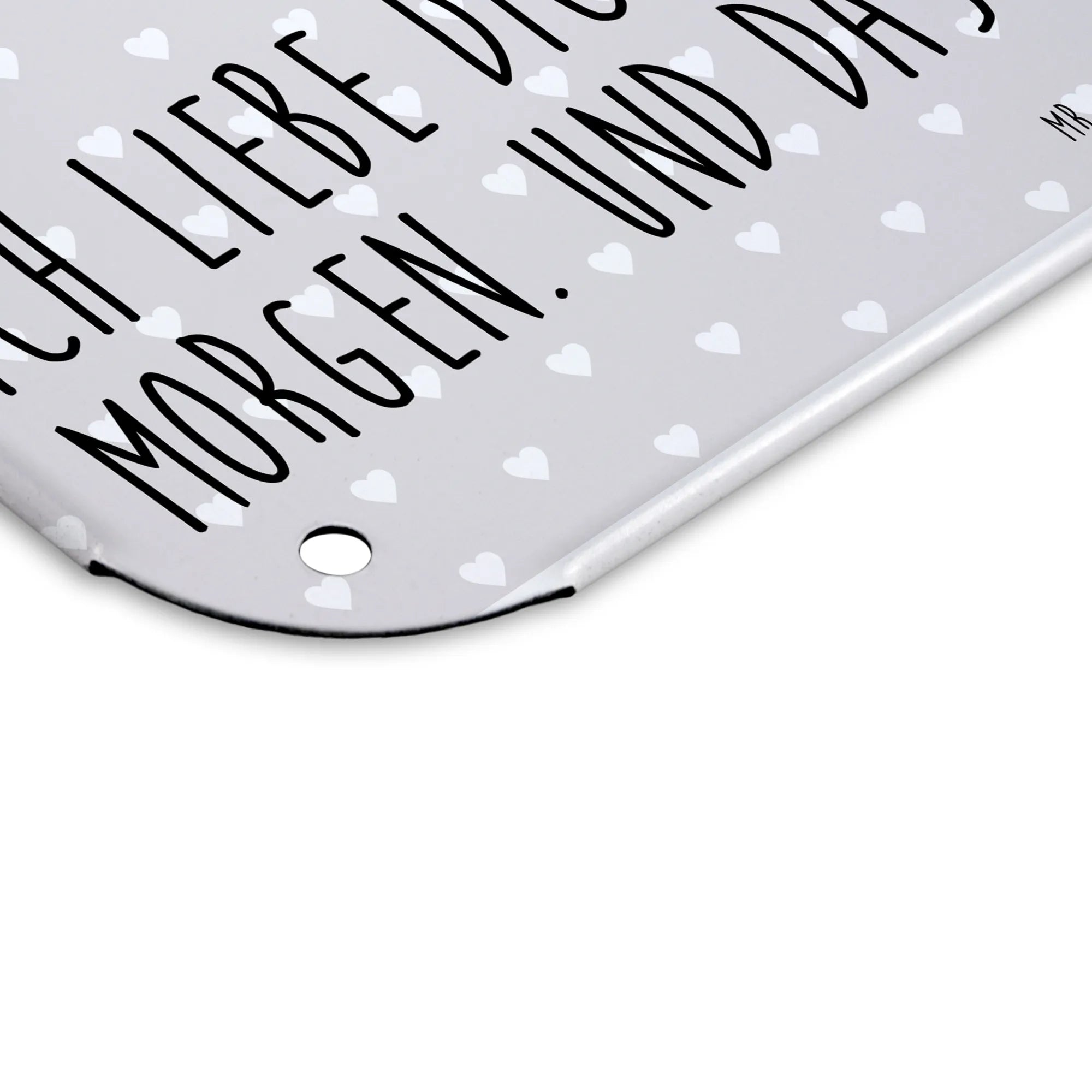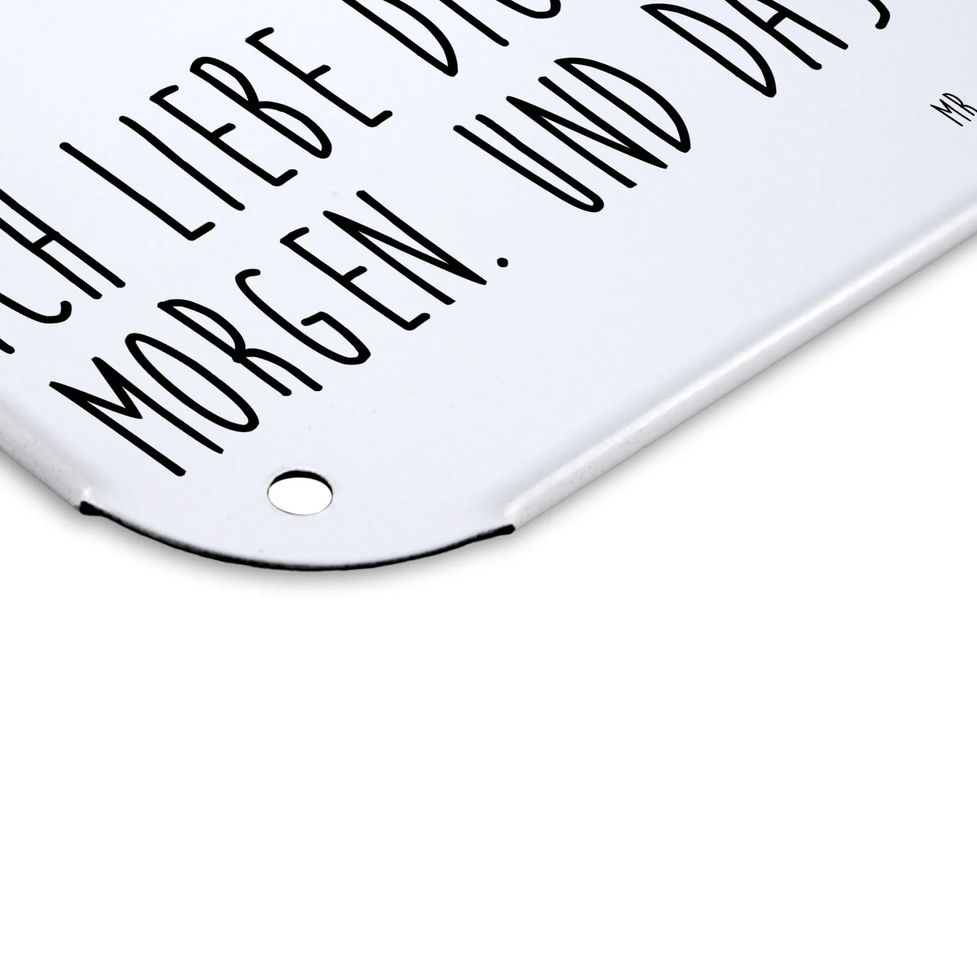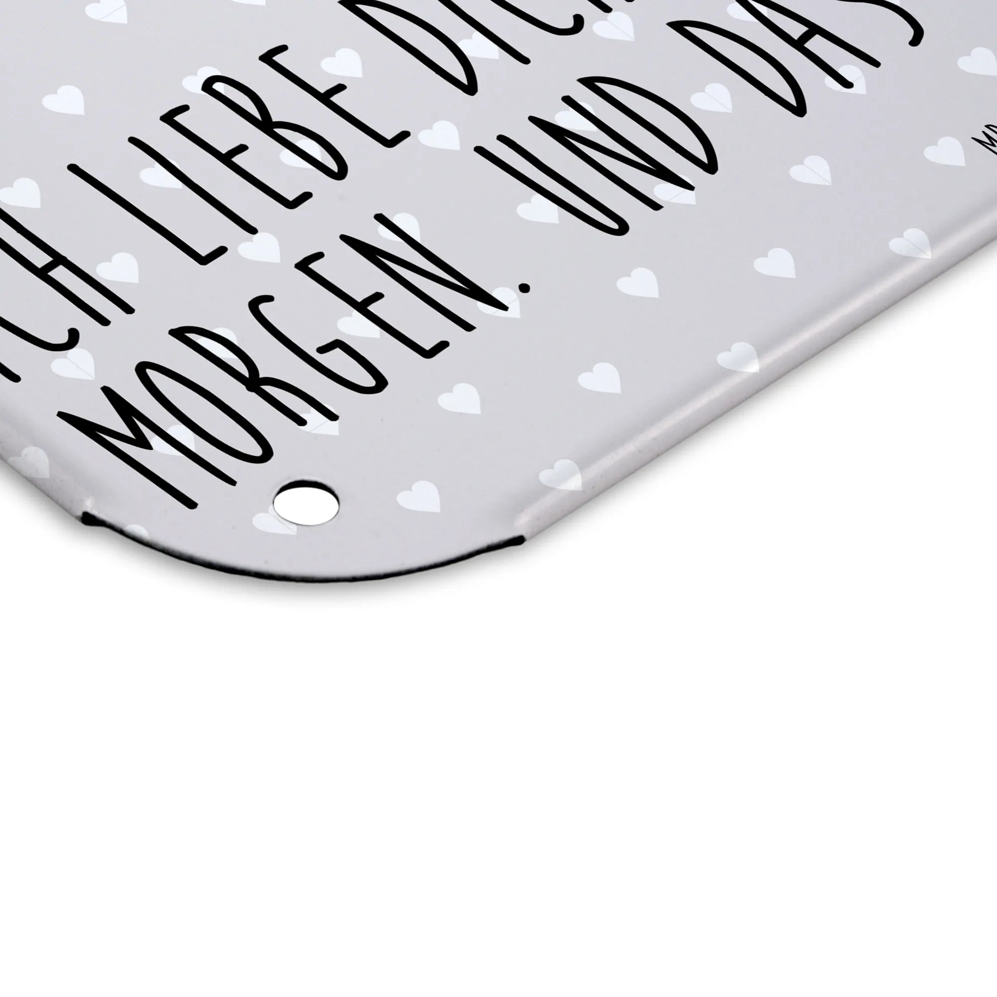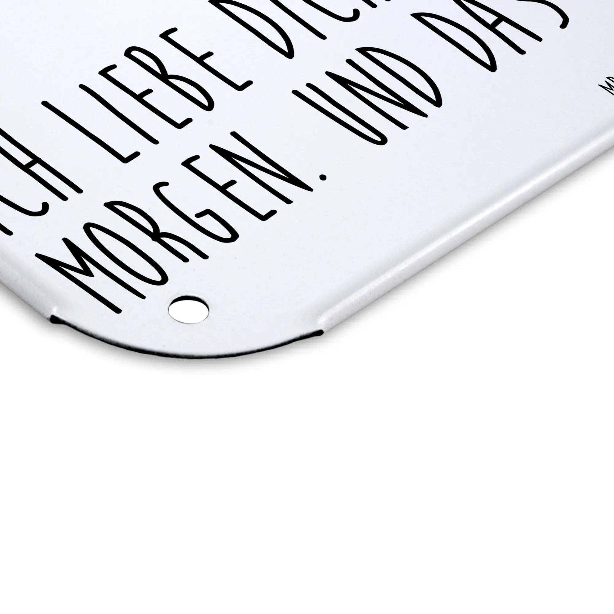Das hochwertige Premium Blech garantiert Langlebigkeit und macht zudem einen sehr edlen Eindruck. Dank der praktischen 4 Bohrungen zur Befestigung ist das Anbringen kinderleicht. Pflegeleicht ist das Schild außerdem: einfach mit einem feuchten Tuch abwischbar. Das Blechschild wird mit viel Liebe von Mr. & Mrs. Panda designt und ist ein echtes Liebesgeschenk für deinen Partner, Freundin oder Ehemann. Schenke Freude und Liebe mit diesem zauberhaften Schild!