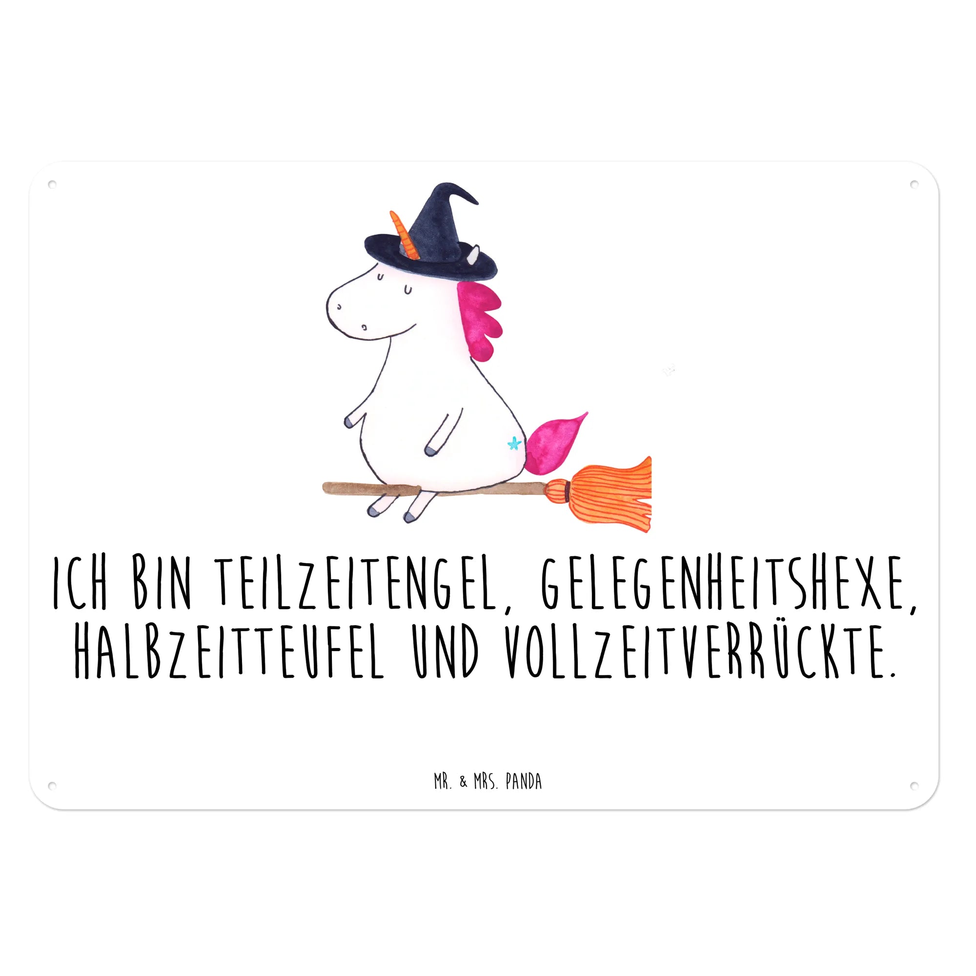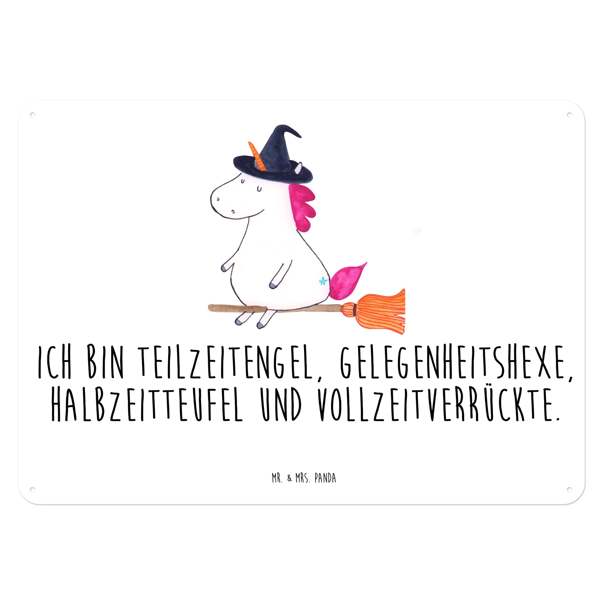 Das ein wunderschönes und edles Blechschild von Mr. & Mrs. Panda ist das perfekte Geschenk für alle Einhornliebhaber! Mit einem charmanten Motiv von einem Einhorn in einem Hexenhut, das auf einem Besen reitet, bringt dieses Schild einen Hauch von Magie in jedes Zuhause.