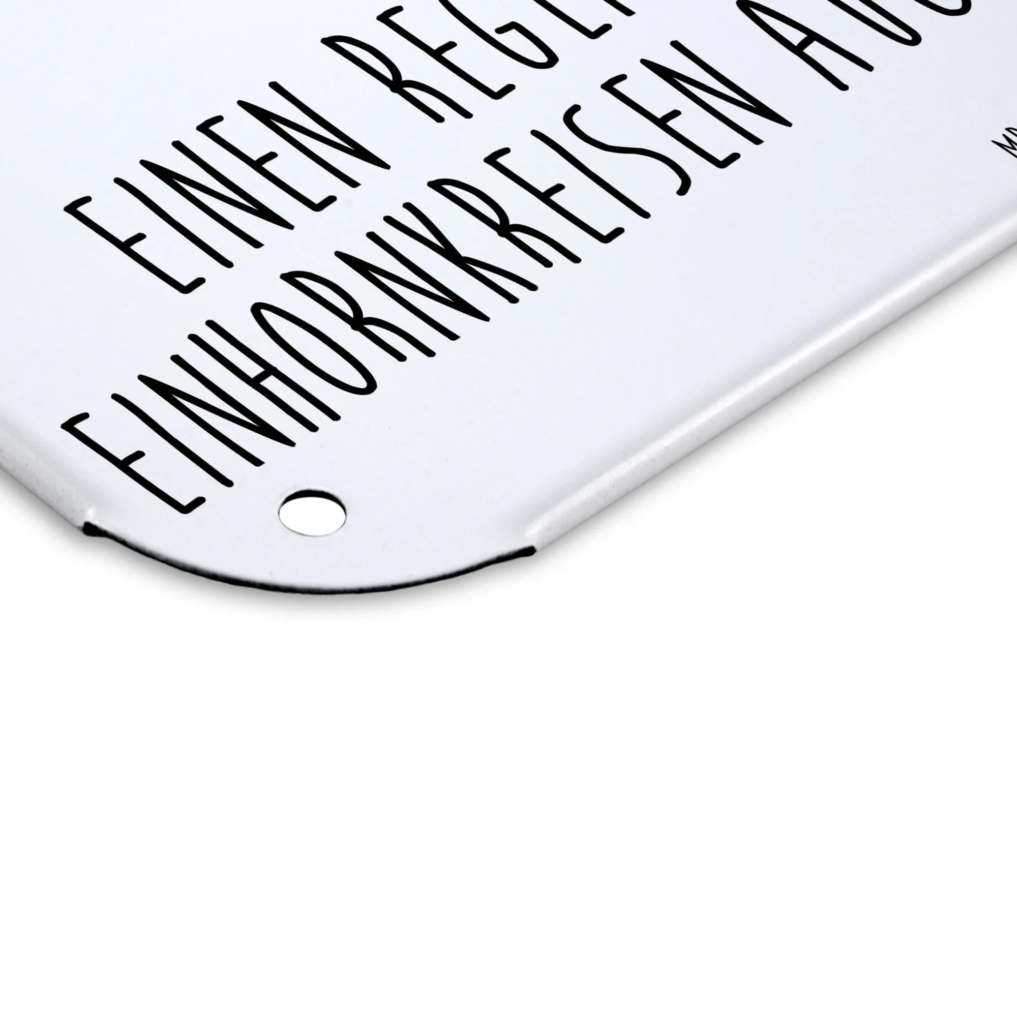 Das wunderschöne Blechschild Einhorn Regenbogen von Mr. & Mrs. Panda bringt zauberhafte Magie in jedes Zuhause! Mit dem Spruch "Einen Regenbogen nennt man in Einhornkreisen auch Einhornautobahn" verbreitet es gute Laune und ein Lächeln bei jedem, der vorbeikommt.