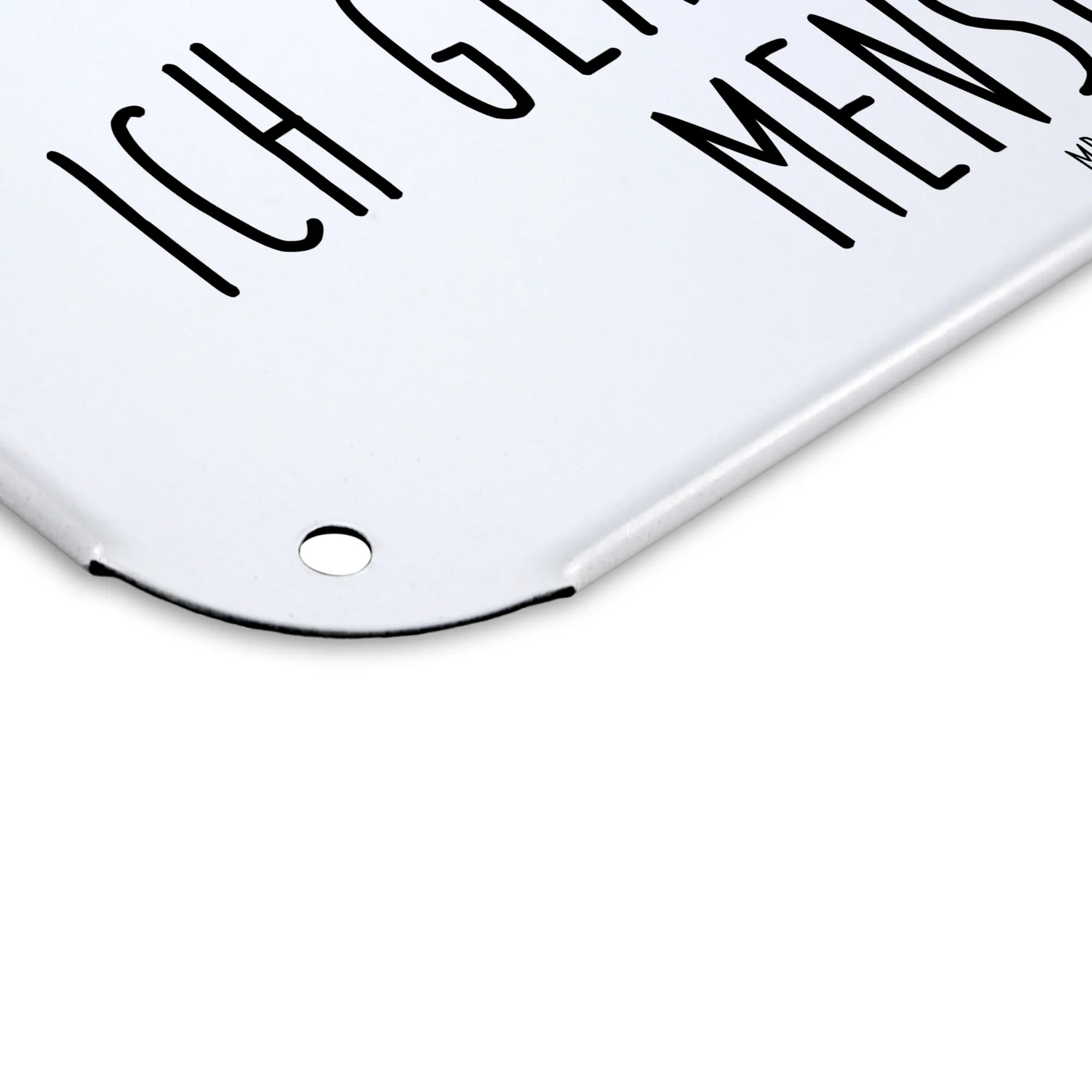 Das Blechschild "Einhorn Wolke 7" aus der zauberhaften Einhorn-Kollektion von Mr. & Mrs. Panda ist der perfekte Blickfang für jeden Raum! Mit seinem liebevoll gestalteten Motiv, das ein entspanntes Einhorn zeigt, das auf einer Wolke sitzt und grinsend sagt: "Ich glaube nicht an Menschen", verspricht es nicht nur ein Lächeln auf die Gesichter der Betrachter zu zaubern, sondern auch eine Portion gute Laune in dein Zuhause zu bringen. Egal ob im Kinderzimmer, im Wohnzimmer oder als originelle Türdekoration – dieses Schild ist vielseitig einsetzbar.