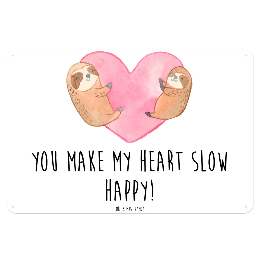 Das Faultiere Herz Blechschild von Mr. & Mrs. Panda ist das perfekte Geschenk für jeden Anlass, an dem Liebe und Zuneigung im Mittelpunkt stehen. Mit einem durch das Herz gezeichneten Motiv zweier süßer Faultiere, die sich innig umarmen, fängt dieses Schild die Essenz der Zuneigung ein.