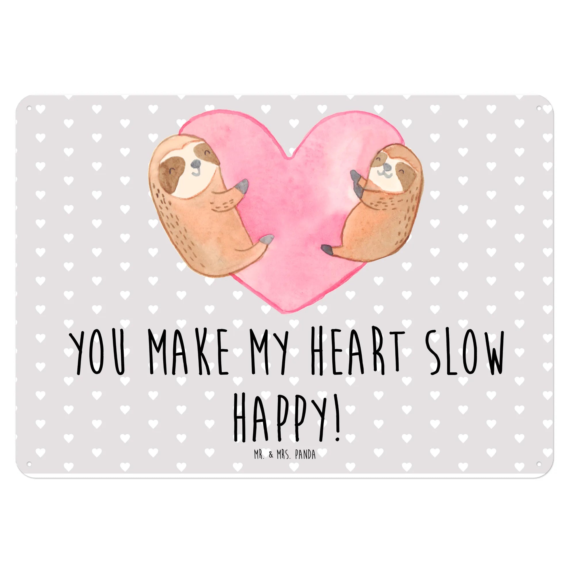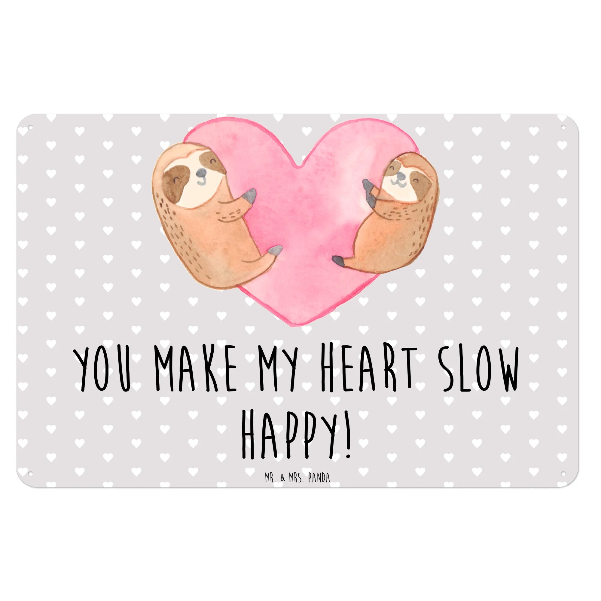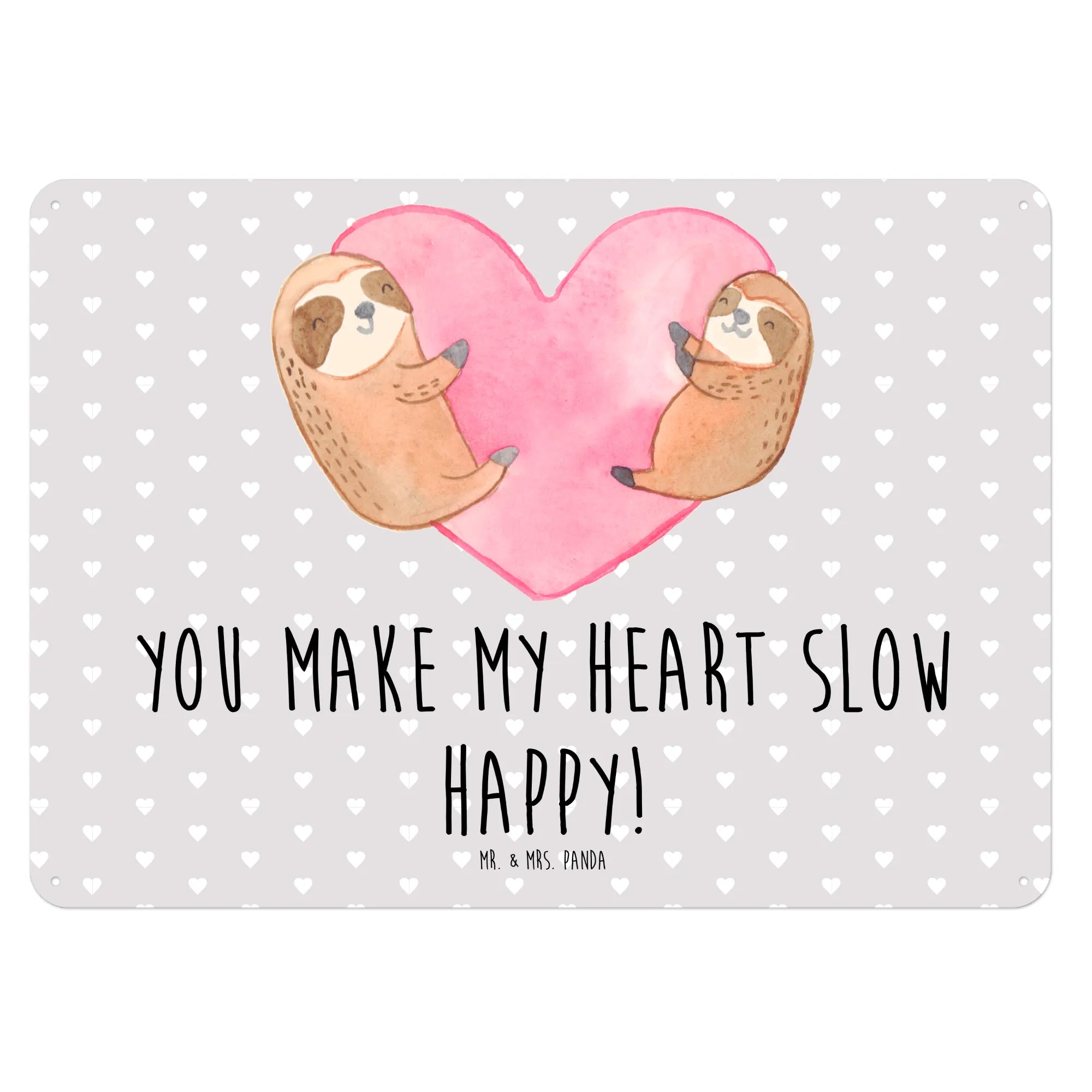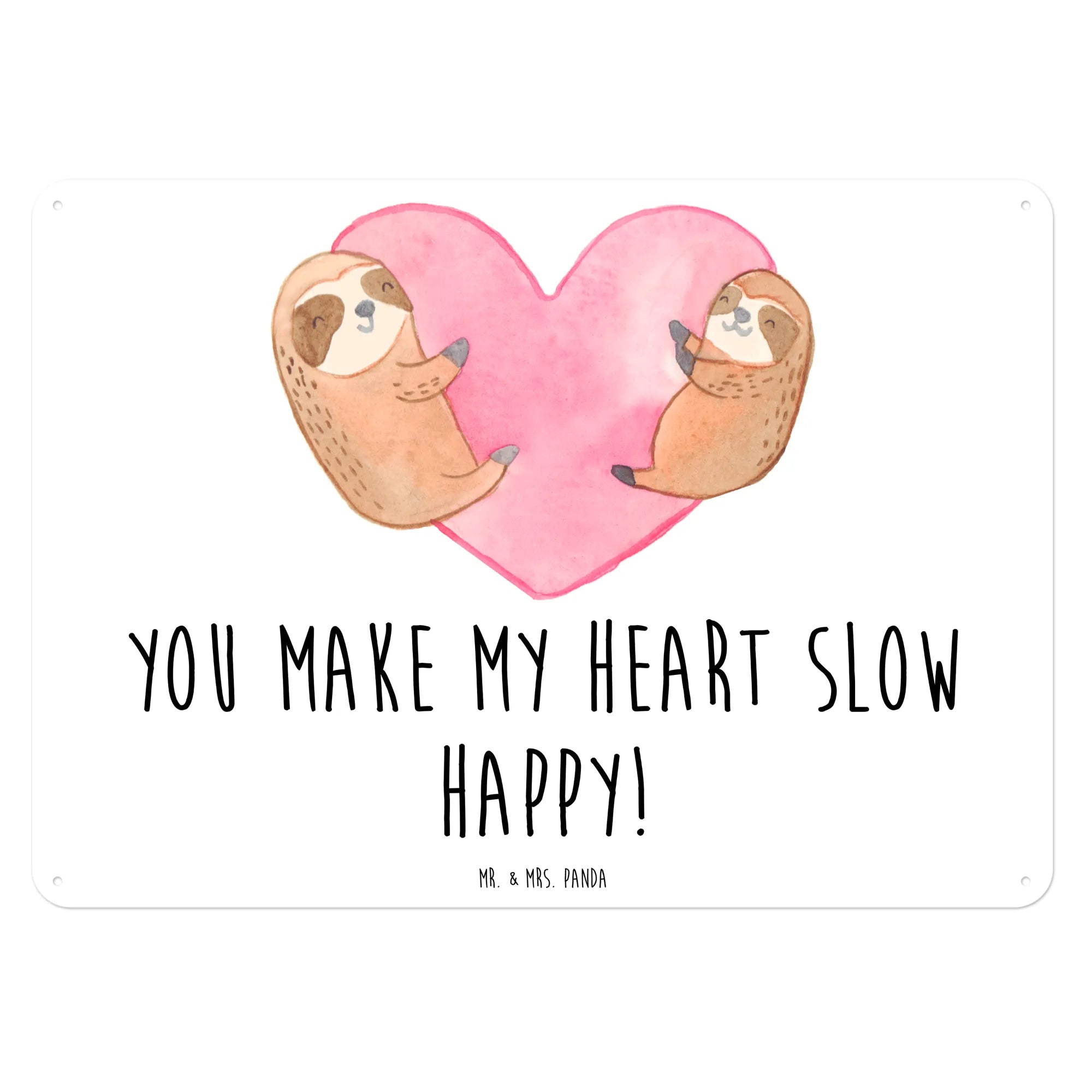 Das Faultiere Herz Blechschild von Mr. & Mrs. Panda ist das perfekte Geschenk für alle, die die Liebe in ihrer schönsten Form feiern möchten. Mit seinen handgemalten Motiven und dem liebevollen Spruch "You make my heart slow happy!" bringt es sofort ein Lächeln auf die Gesichter deiner Liebsten.