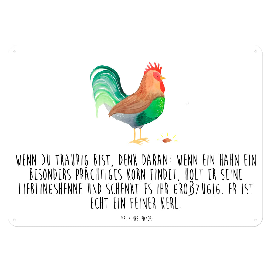 Zeige mit diesem Schild deinen Sinn für Humor und deine Liebe zur Natur. Schaffe eine einladende Atmosphäre in deinem Zuhause oder verschenke ein Stück Bauernhof-Gefühl mit Mr. & Mrs. Panda's "Hahn mit Korn"! Es wird mit Sicherheit das Herz eines jeden Menschen erfreuen und ein wahres Highlight an jeder Wand setzen.