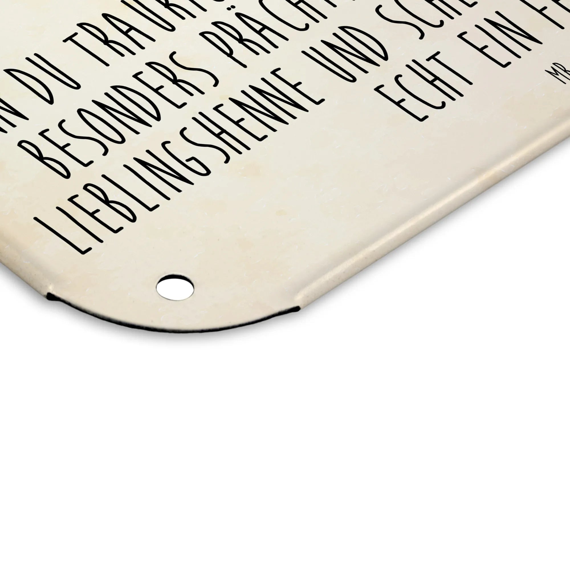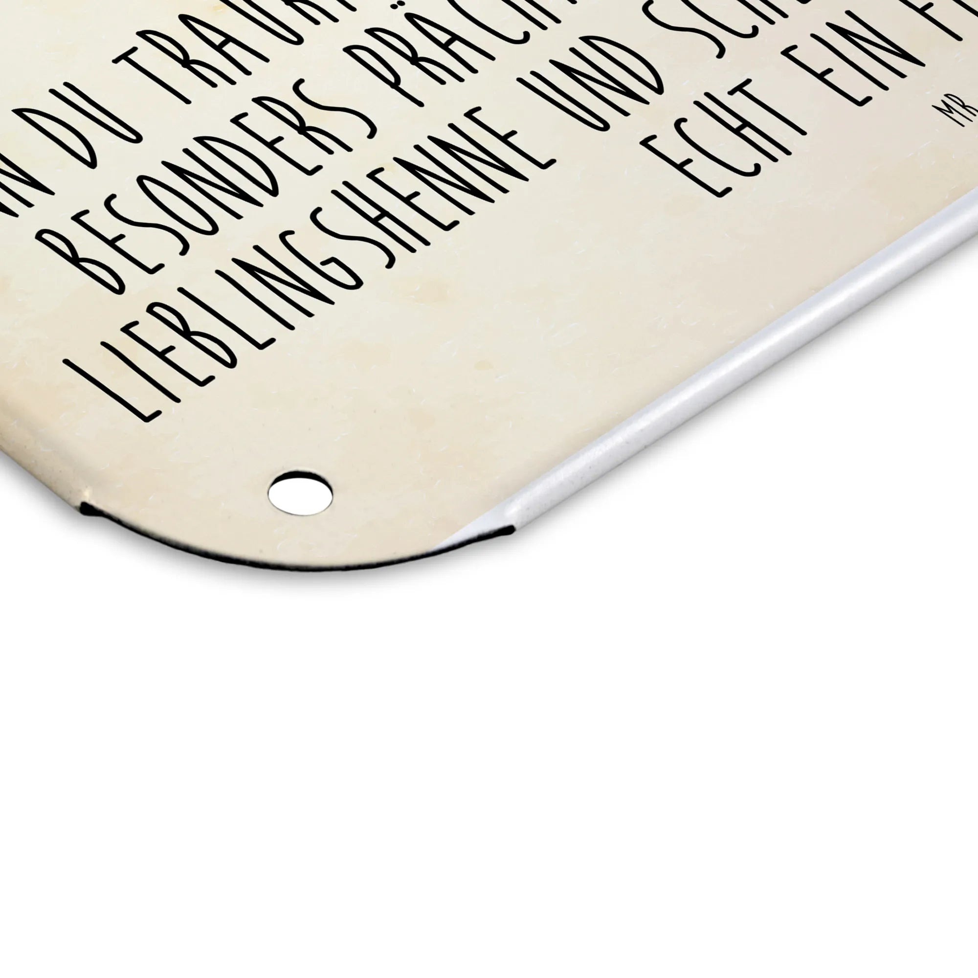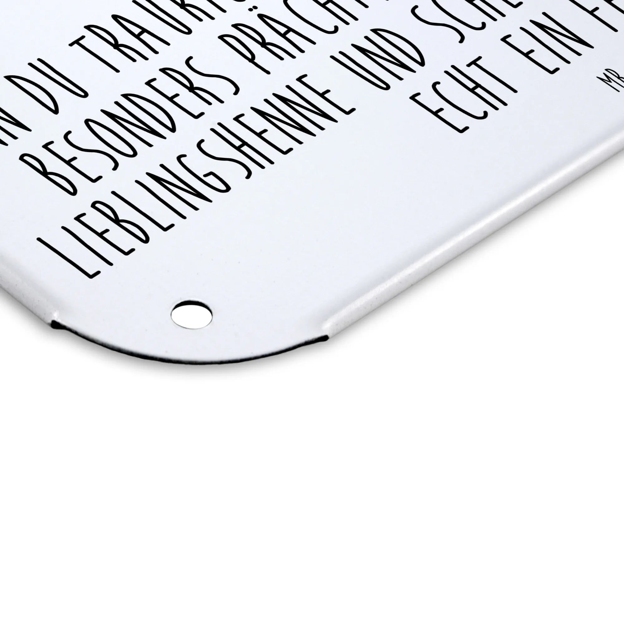 Mit den vier Bohrungen ist eine einfache und sichere Befestigung gewährleistet. Pflegeleichte Reinigung? Kein Problem! Mit einem feuchten Tuch lässt sich das Schild spielend leicht abwischen. Mit diesem Blechschild bringst du ein Stück Bauernhof-Flair in dein Zuhause und verschenkst Freude, wo auch immer es gebraucht wird. Mach anderen oder dir selbst eine Freude mit diesem einzigartigen Produkt aus der Bauernhof-Kollektion von Mr. & Mrs. Panda!