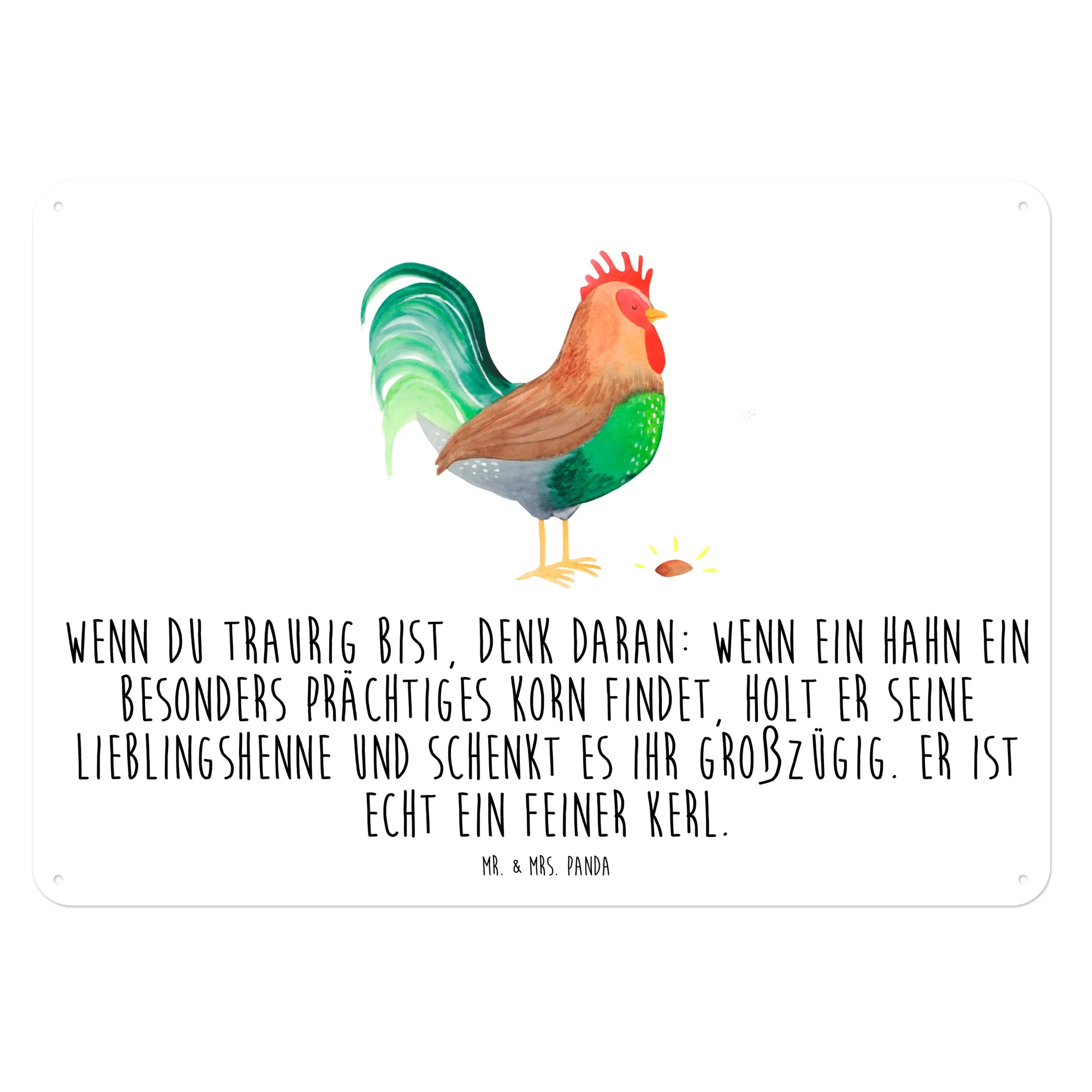 Das edle Blechschild "Hahn mit Korn" von Mr. & Mrs. Panda ist nicht nur ein wunderschönes Deko-Element, sondern auch ein perfektes Geschenk für Tierliebhaber und Freunde des ländlichen Lebens. Mit seinem liebevoll handgezeichneten Motiv eines stolzen Hahns, der großzügig sein Korn teilt, bringt dieses Schild ein Stück Bauernhof-Feeling in dein Zuhause. Der Spruch: "Wenn du traurig bist, denk daran: wenn ein Hahn ein besonders prächtiges Korn findet, holt er seine Lieblingshenne und schenkt es ihr großzügig. Er ist echt ein feiner Kerl." versüßt die Botschaft und zaubert jedem ein Lächeln ins Gesicht.