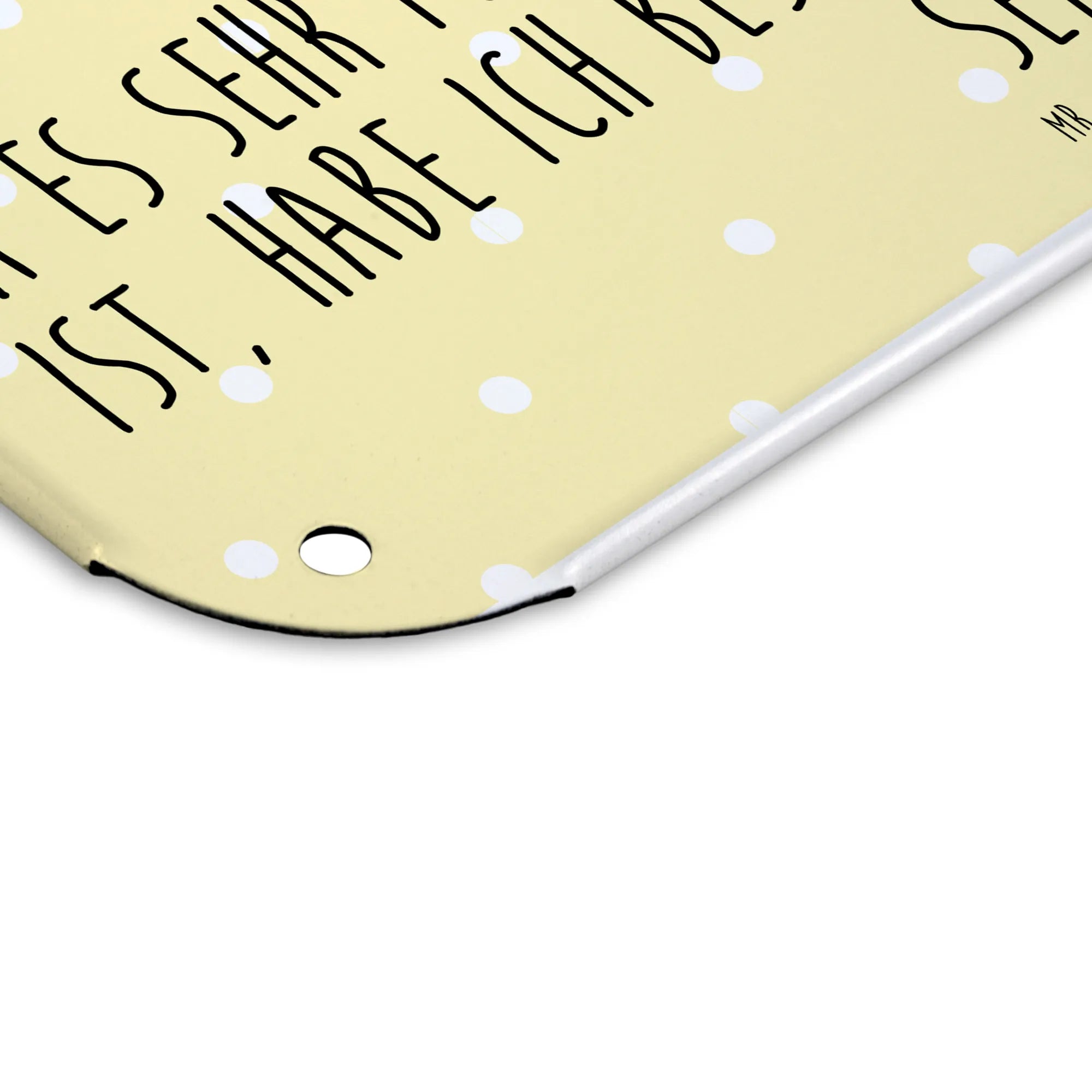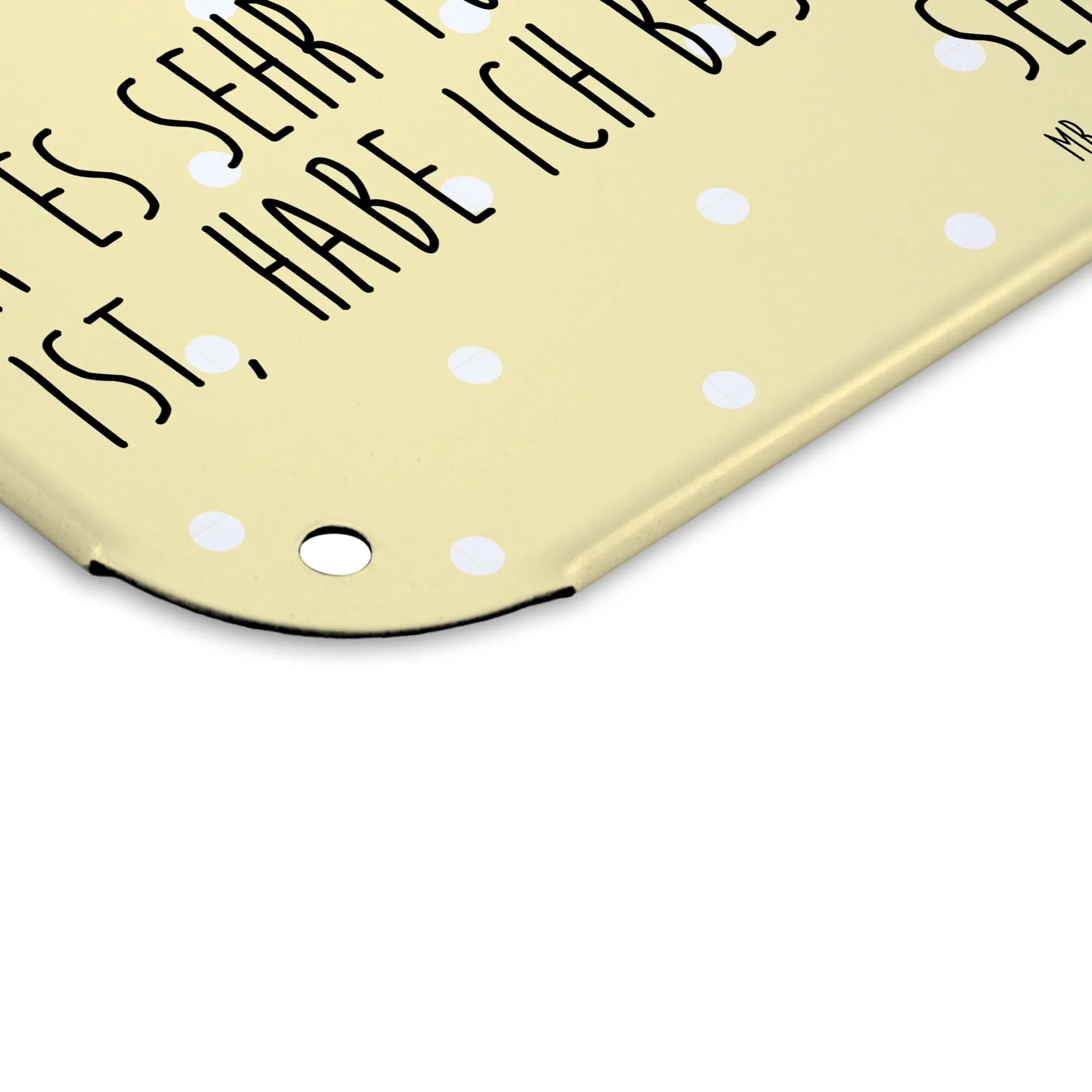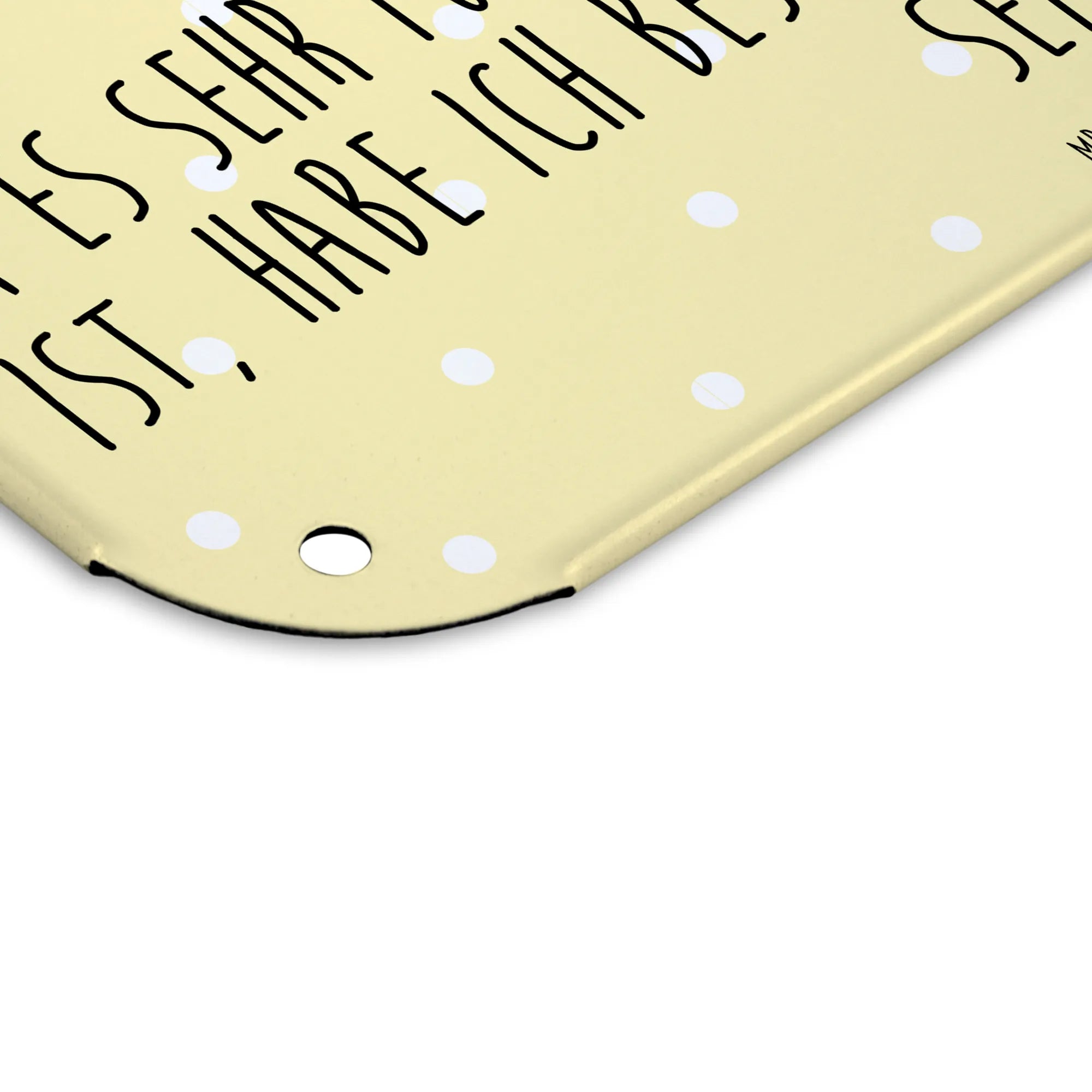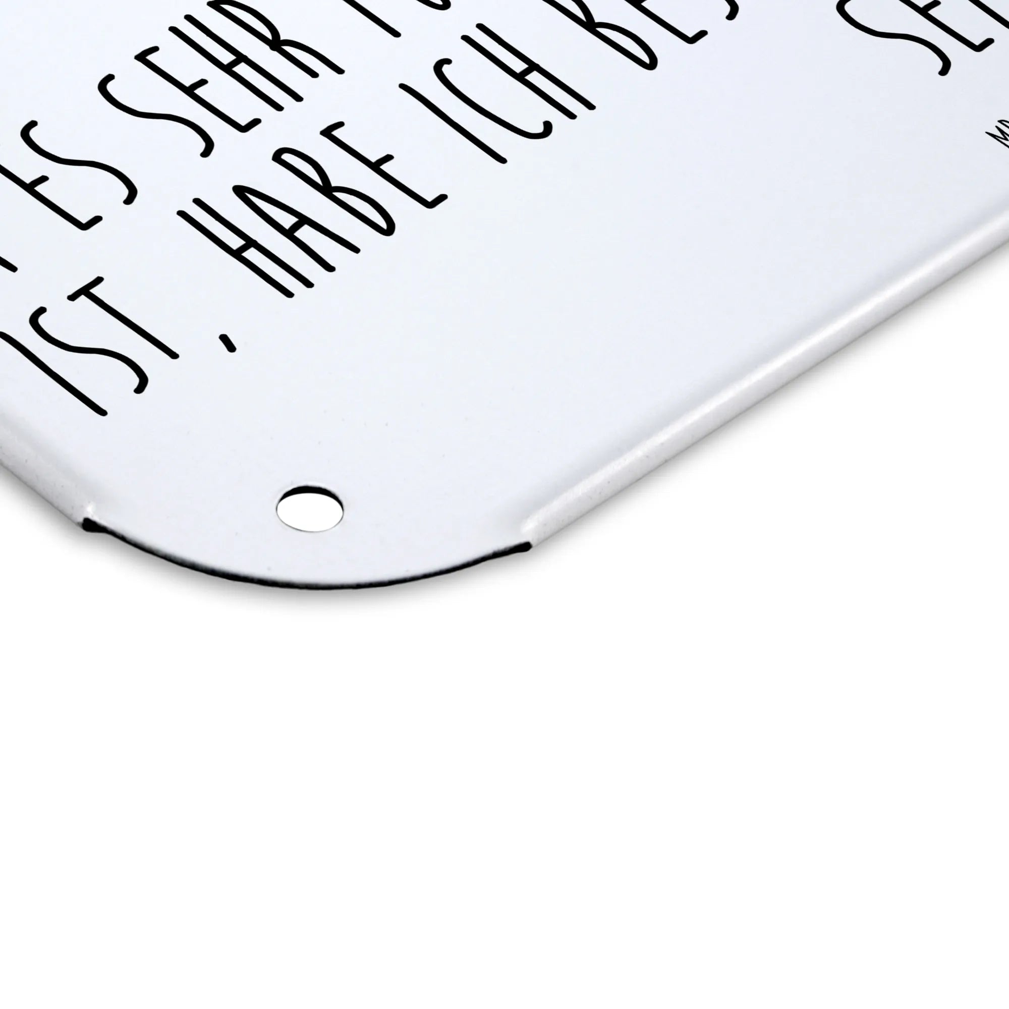 Das Blechschild hat eine hochwertige, seidenmatte Oberfläche, die nicht nur edel aussieht, sondern auch langlebig ist. Es eignet sich perfekt als Wandschild oder zur Dekoration an der Tür. Mit den 4 Bohrungen lässt sich das Schild ganz einfach aufhängen und zieht sofort alle Blicke auf sich. Die abgerundeten Ecken und umgefalzten Kanten sorgen zudem für Sicherheit und eine ansprechende Optik. Dieses Produkt ist ideal für den Innenbereich und lässt sich unkompliziert mit einem feuchten Tuch reinigen.