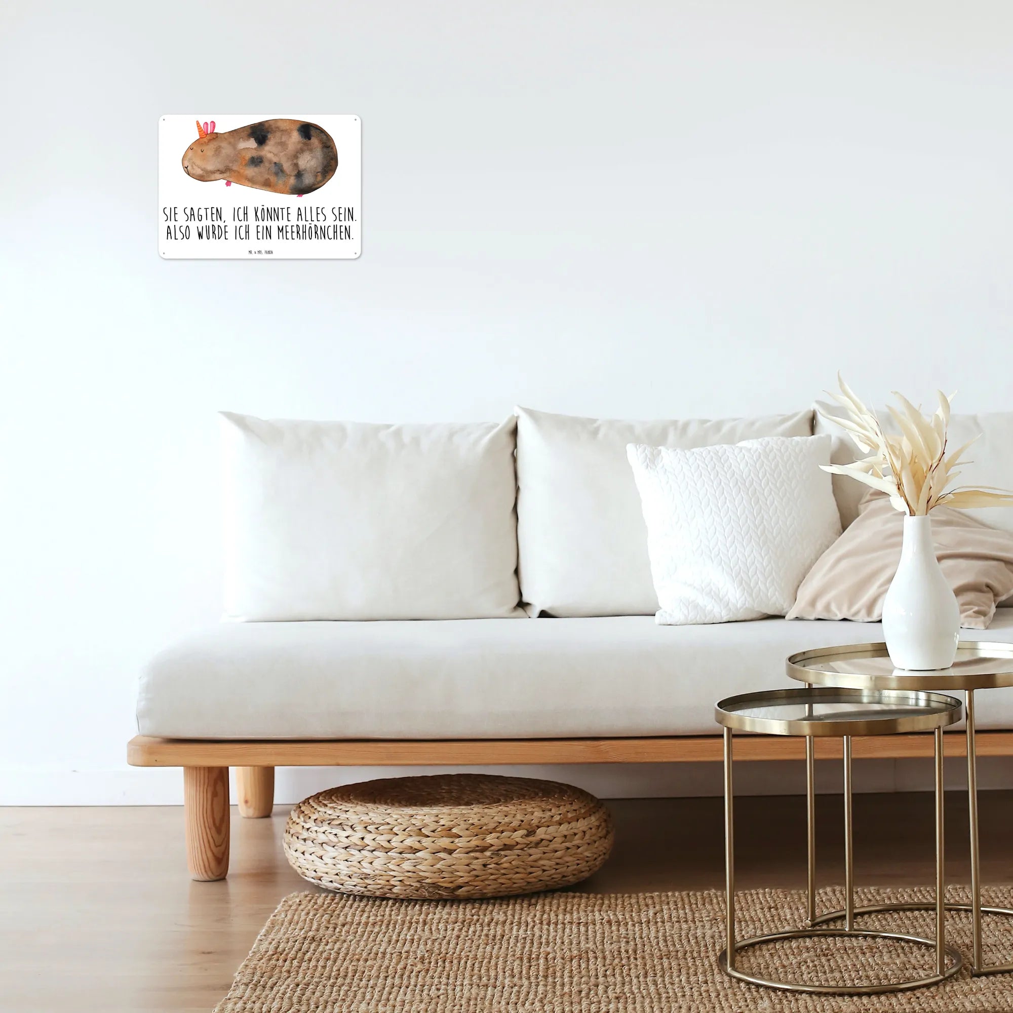 Entdecke das zauberhafte Blechschild "Meerhörnchen" aus der Einhorn-Kollektion von Mr. & Mrs. Panda! Dieses süße Deko-Schild zeigt ein niedliches Meerschweinchen mit einem Horn, gepaart mit dem witzigen Spruch: "Sie sagten, ich könnte alles sein. Also wurde ich ein Meerhörnchen." Perfekt für Freunde der magischen Einhornwelt und aller, die ein Faible für ausgefallene Dekorationen haben! Das Schild ist ein echtes Highlight für dein Zuhause.