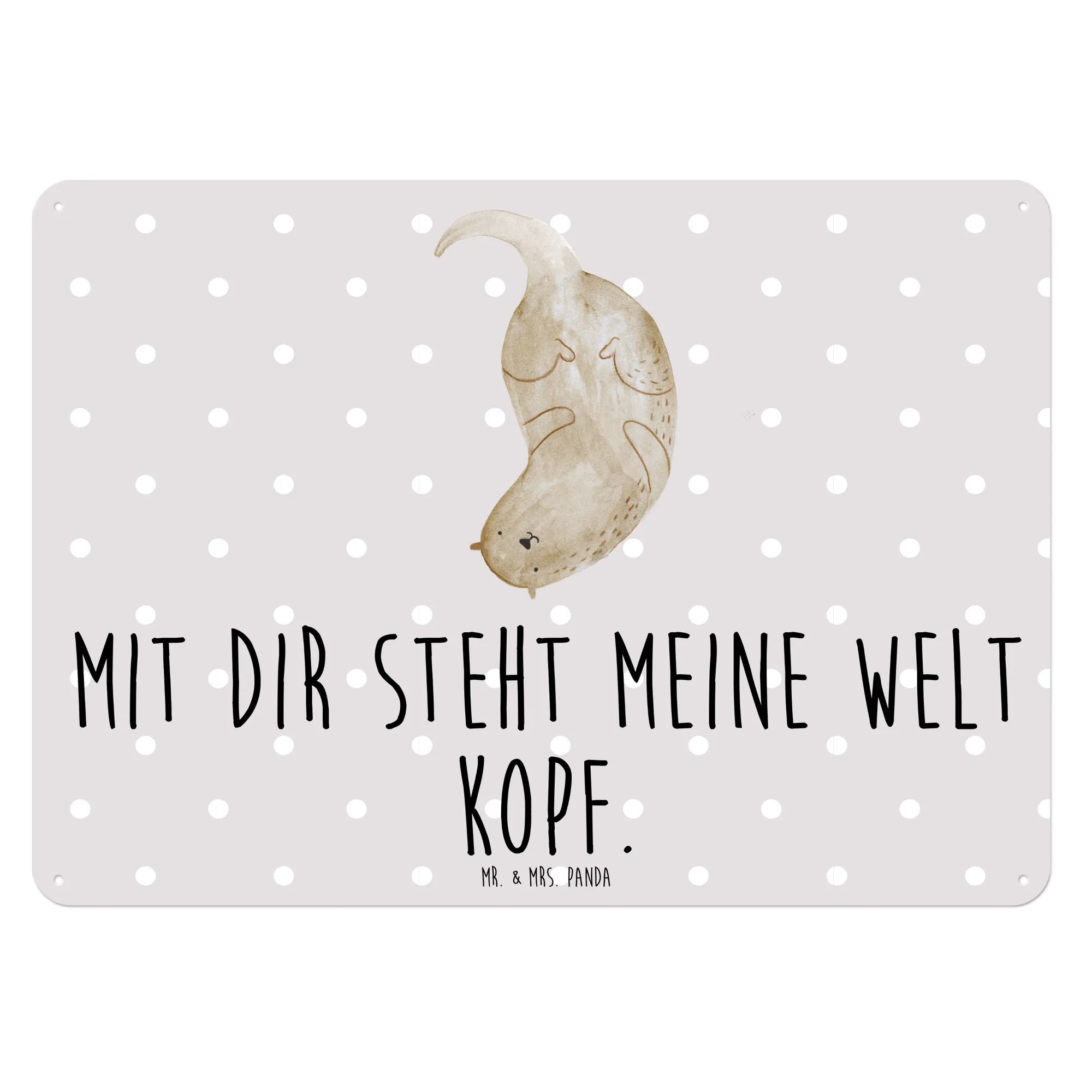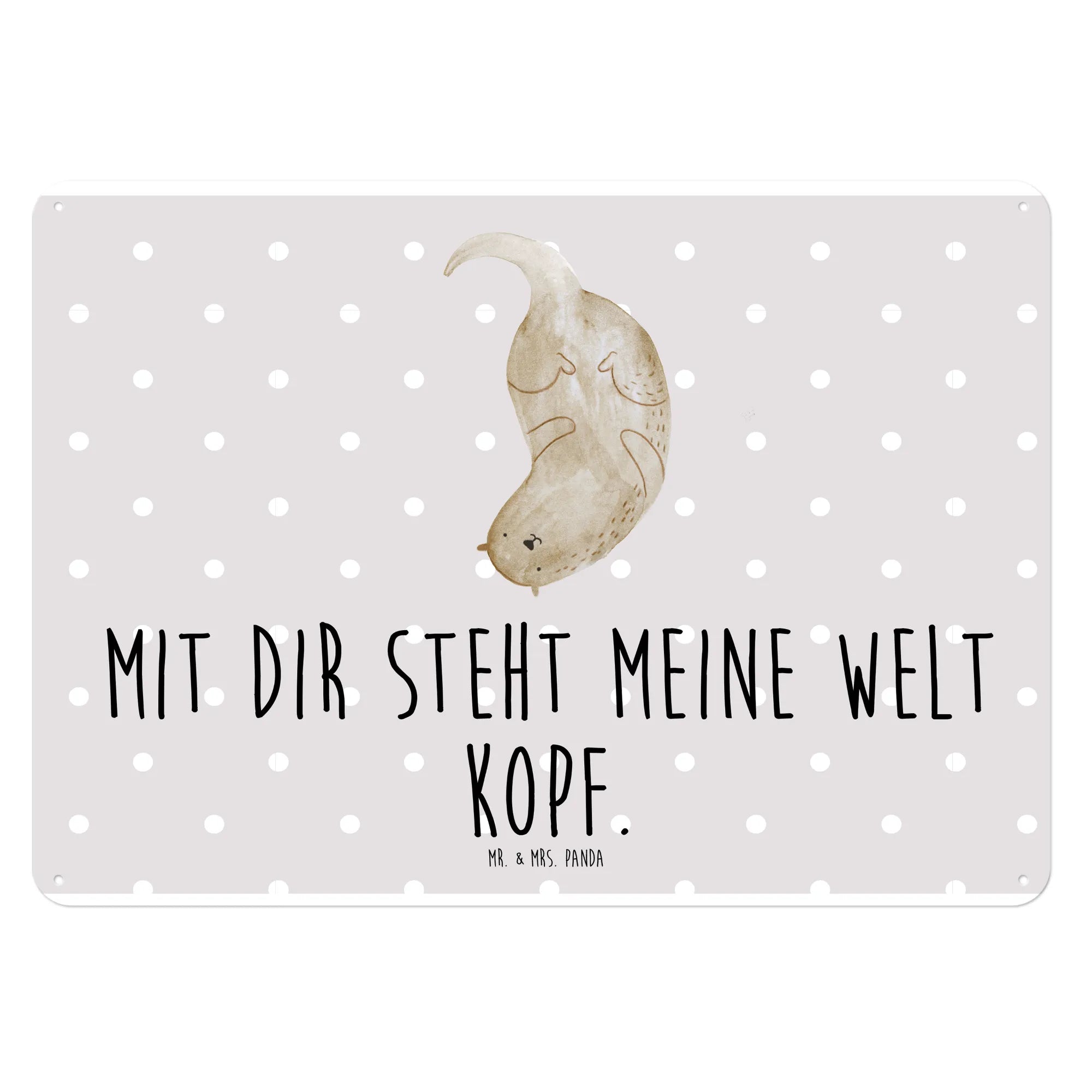 Geschenkideen für Geburtstage, Einweihungsfeiern oder einfach nur so – dieses Blechschild ist vielseitig einsetzbar. Es ist leicht abwischbar und wird mit 4 Bohrungen zur optimalen Befestigung geliefert. Erzähle deinen Freunden und deiner Familie von der ganz besonderen Otter-Kollektion von Mr. & Mrs. Panda, wo jedes Motiv mit viel Liebe von Mrs. Panda handgezeichnet wurde.