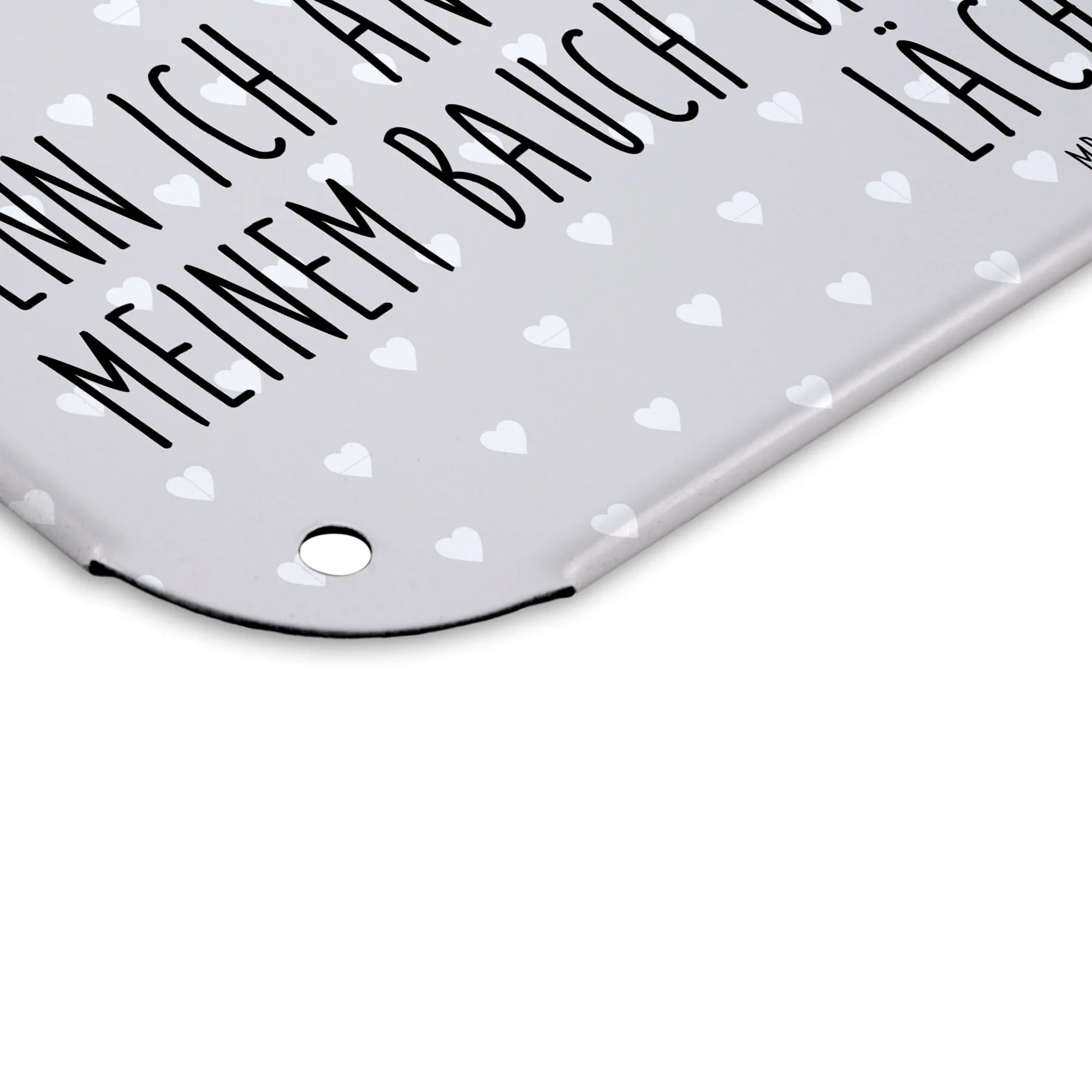 Das hochwertige Stahlblech mit seidenmatter Oberfläche ist langlebig und sorgt dafür, dass der Druck edel bleibt. Egal, ob als Wandschild im Wohnzimmer, Schlafzimmer oder als süßes Türschild – es zieht alle Blicke auf sich. Das Schild kommt mit 4 Bohrungen zur einfachen Befestigung und lässt sich daher problemlos an jedem Ort anbringen. Für den Innenbereich ist es perfekt geeignet und kann leicht mit einem feuchten Tuch gereinigt werden.