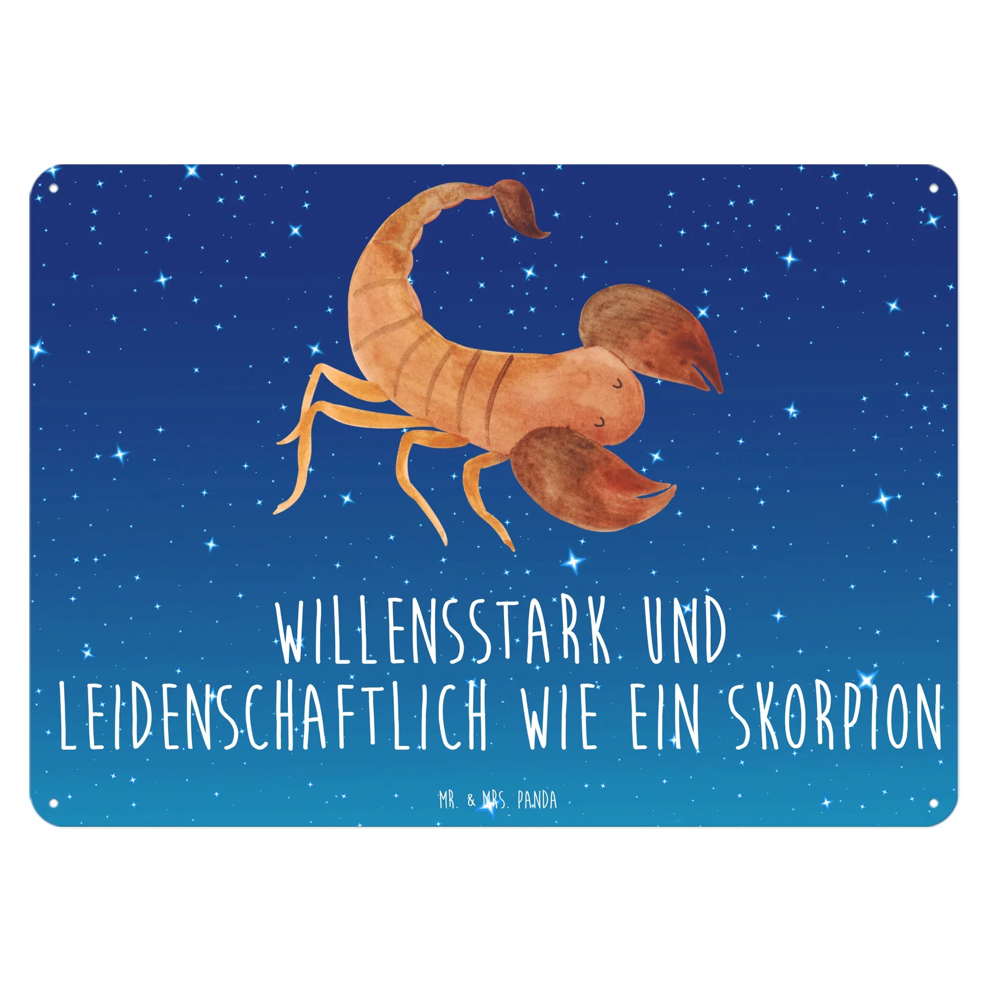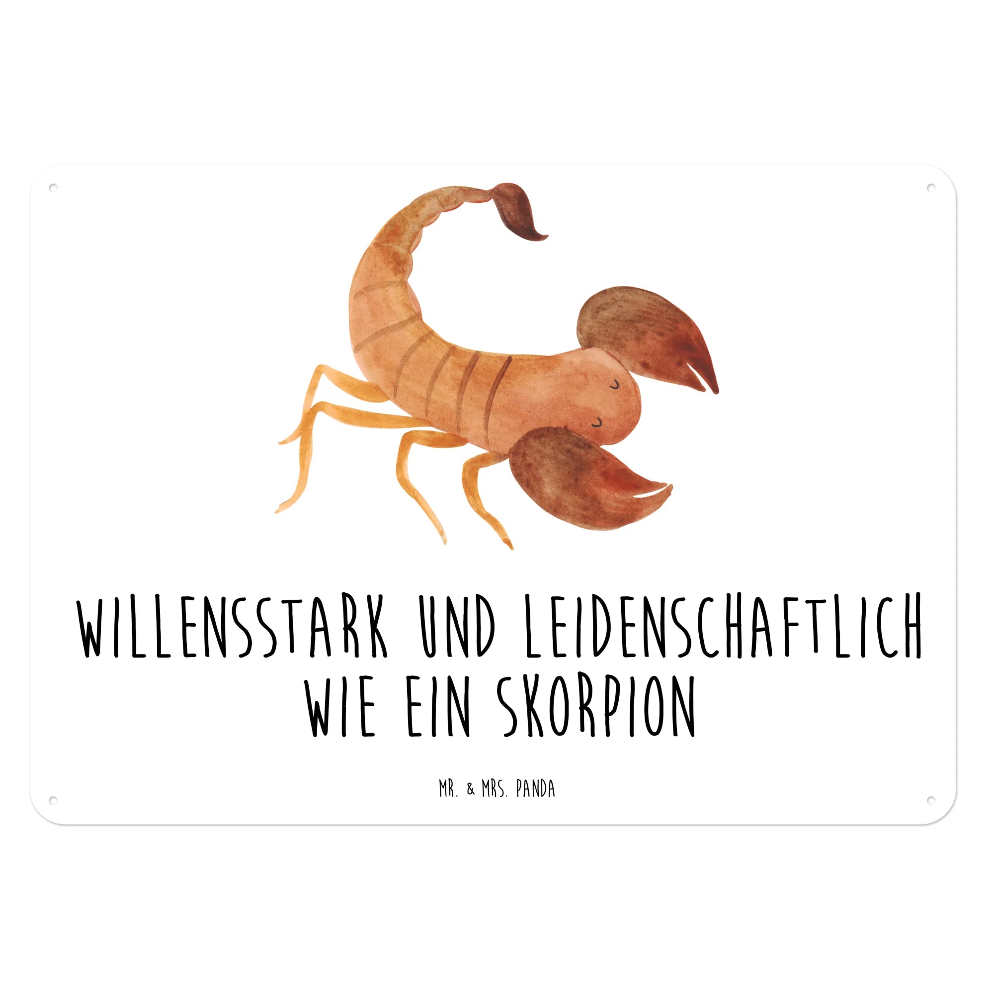 Wenn du auf der Suche nach einem besonderen Geschenk für Skorpion-Fans bist, dann ist unser edles Blechschild mit dem Motiv "Sternzeichen Skorpion" von Mr. & Mrs. Panda genau das Richtige für dich! Mit liebevollen Details und dem Slogan "Willensstark und leidenschaftlich wie ein Skorpion" ist dieses Schild das perfekte Accessoire, um die Wände eines jeden Skorpion-Geborenen zu verschönern.