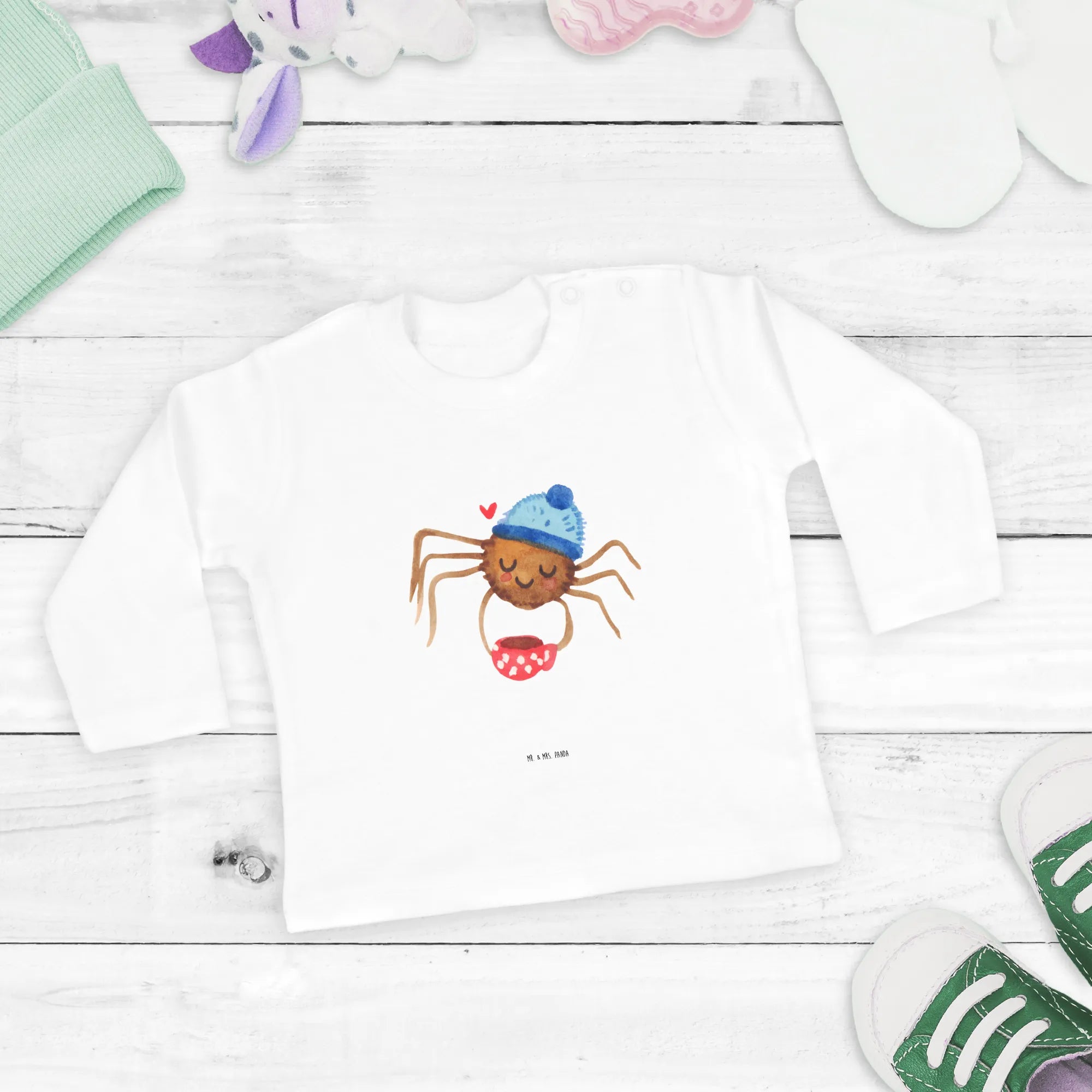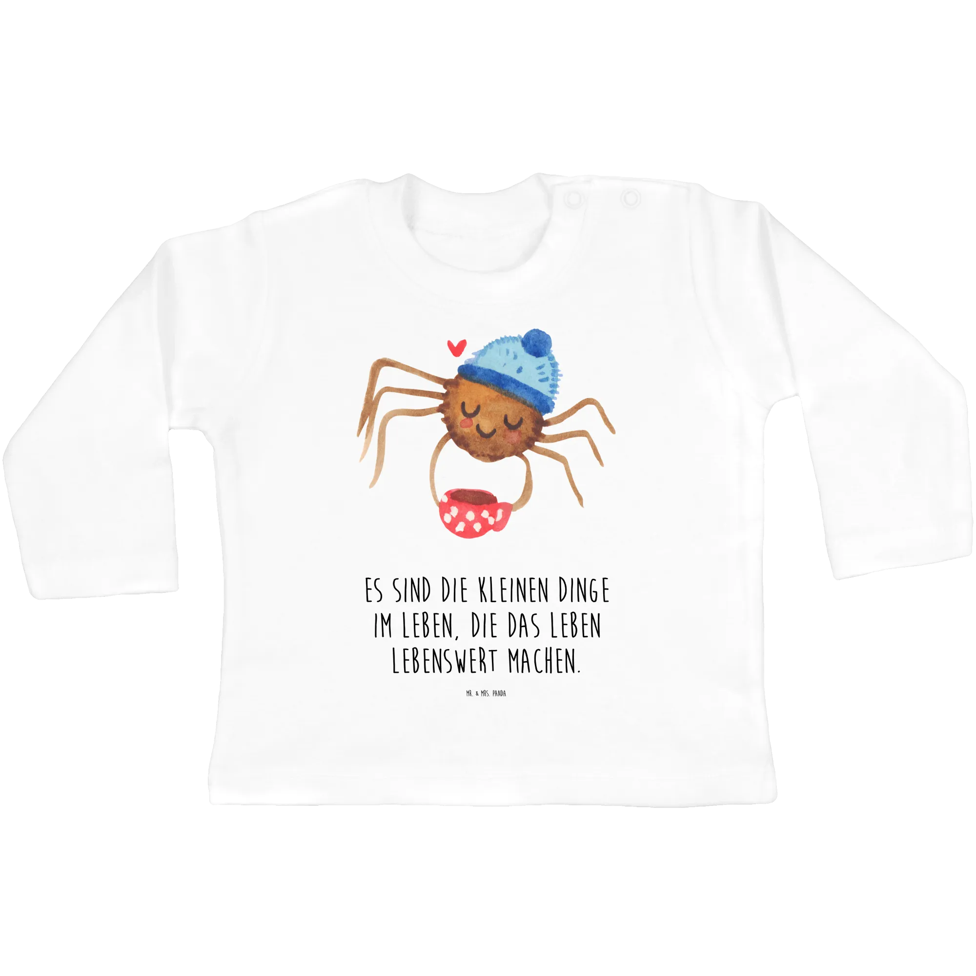 Dieses Longsleeve ist perfekt für die Übergangszeit und hält dein Baby warm, während es sich bewegt und entdeckt. Die Spinne Agathe Kollektion von Mr. & Mrs. Panda hat sich durch ihre niedlichen und einzigartigen Designs einen Namen gemacht. Ob für den ersten Familienausflug, den Besuch bei den Großeltern oder einfach als Lieblingsstück für zu Hause - dieses Oberteil ist vielseitig einsetzbar.