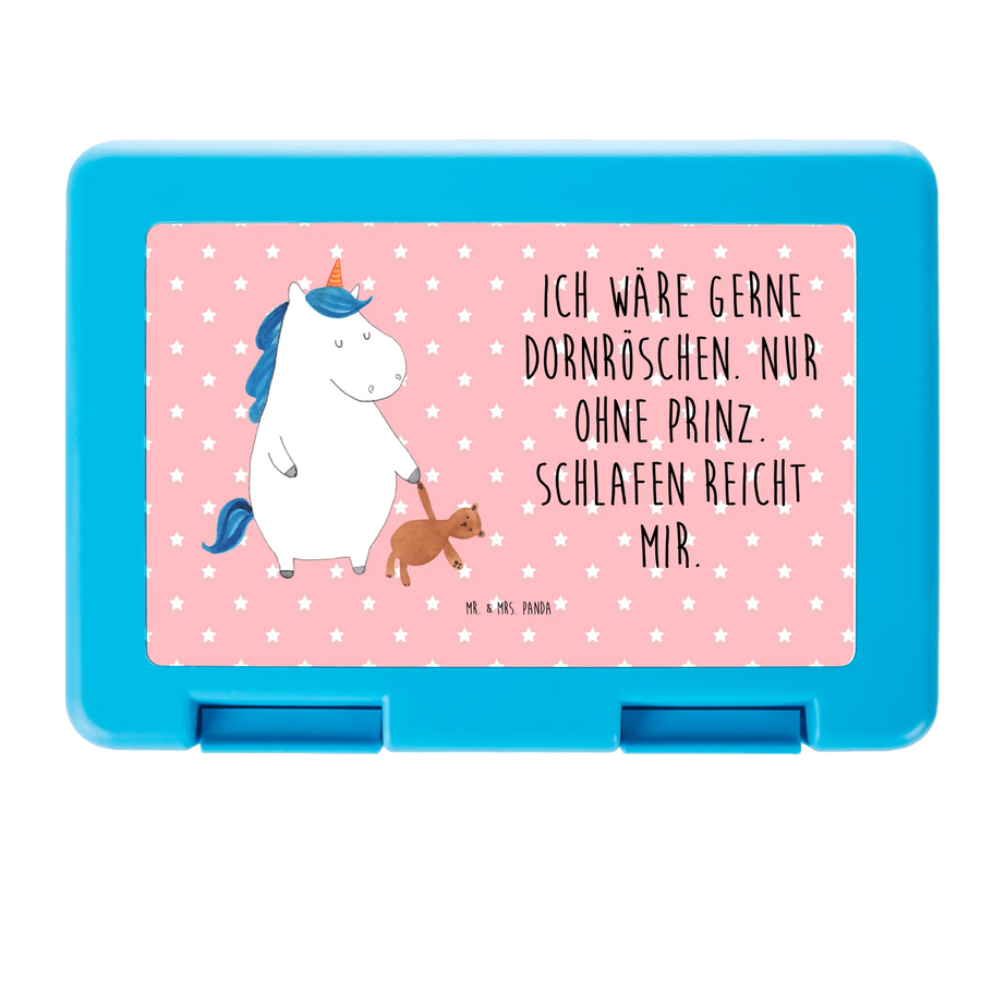 Die süße Brotdose Einhorn Teddy von Mr. & Mrs. Panda ist das perfekte Geschenk für alle Einhornliebhaber und Fans des magischen Unikorns! Diese wunderschöne Brotdose strahlt nicht nur Freude aus, sondern bringt auch ein Lächeln in den Alltag. Mit dem charmanten Motiv eines zauberhaften Einhorns, das schlafend mit einem Teddy in der Hand dasteht, eignet sie sich perfekt für Kinder, die ihre Snacks und Pausenbrote stilvoll transportieren möchten.