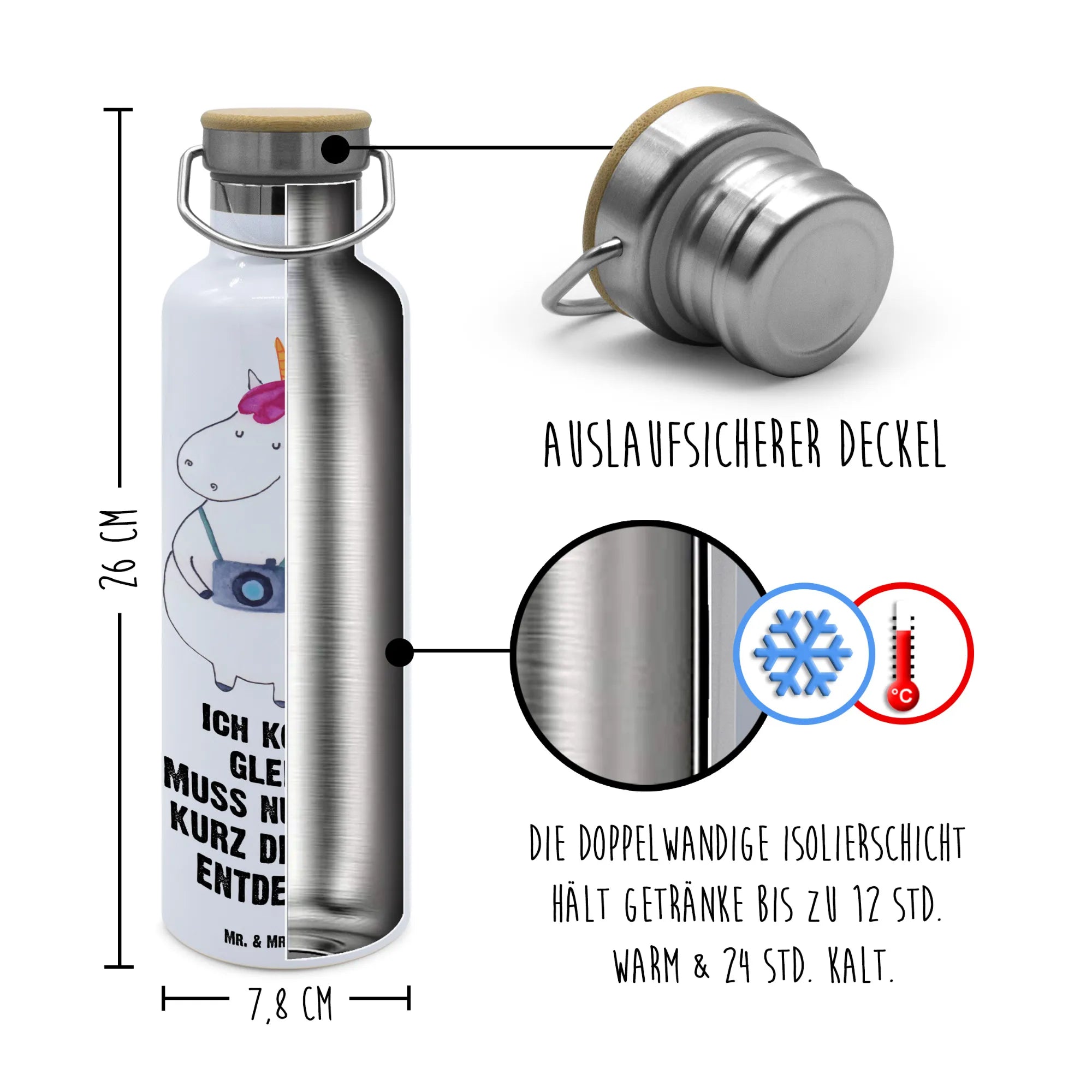 Butelka Jednorożec fotograf - z napisem