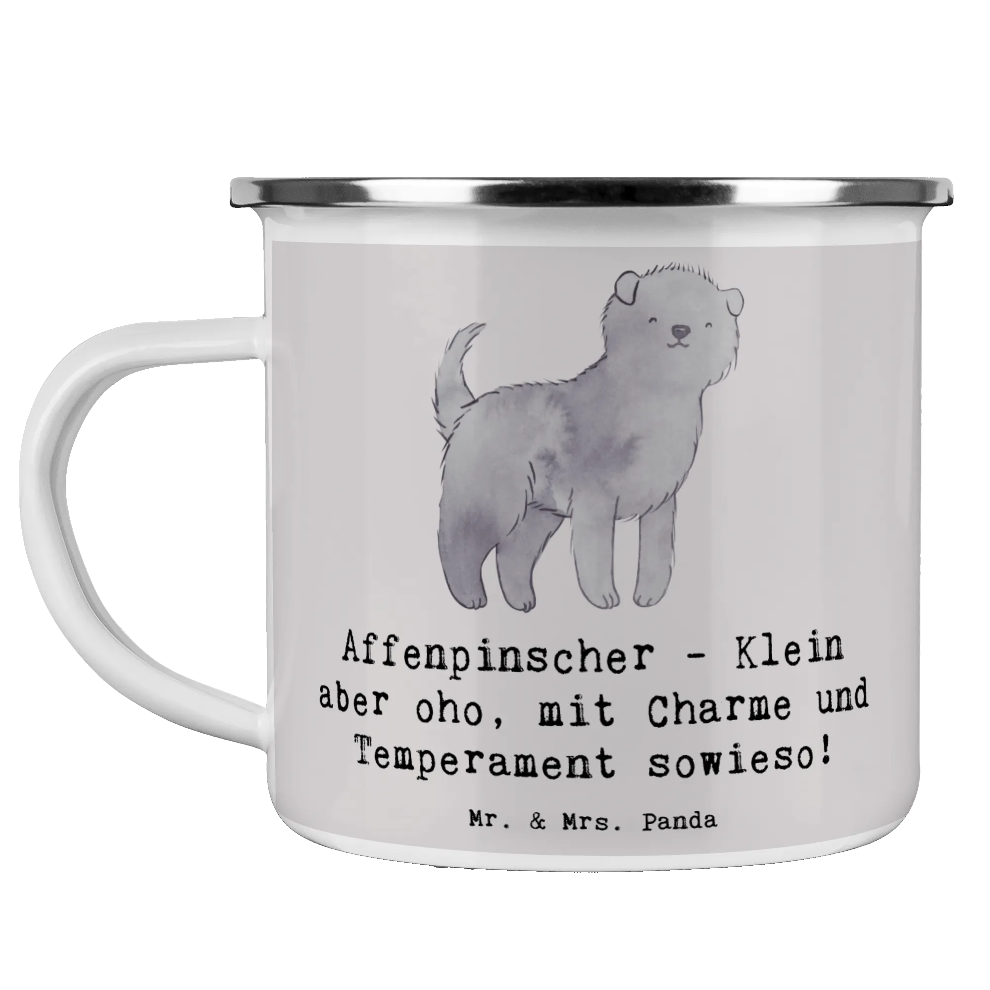 Die bezaubernde Camping Emaille Tasse von Mr. & Mrs. Panda mit dem niedlichen Affenpinscher Motiv ist das perfekte Geschenk für jeden Hundefan und Outdoor-Liebhaber!