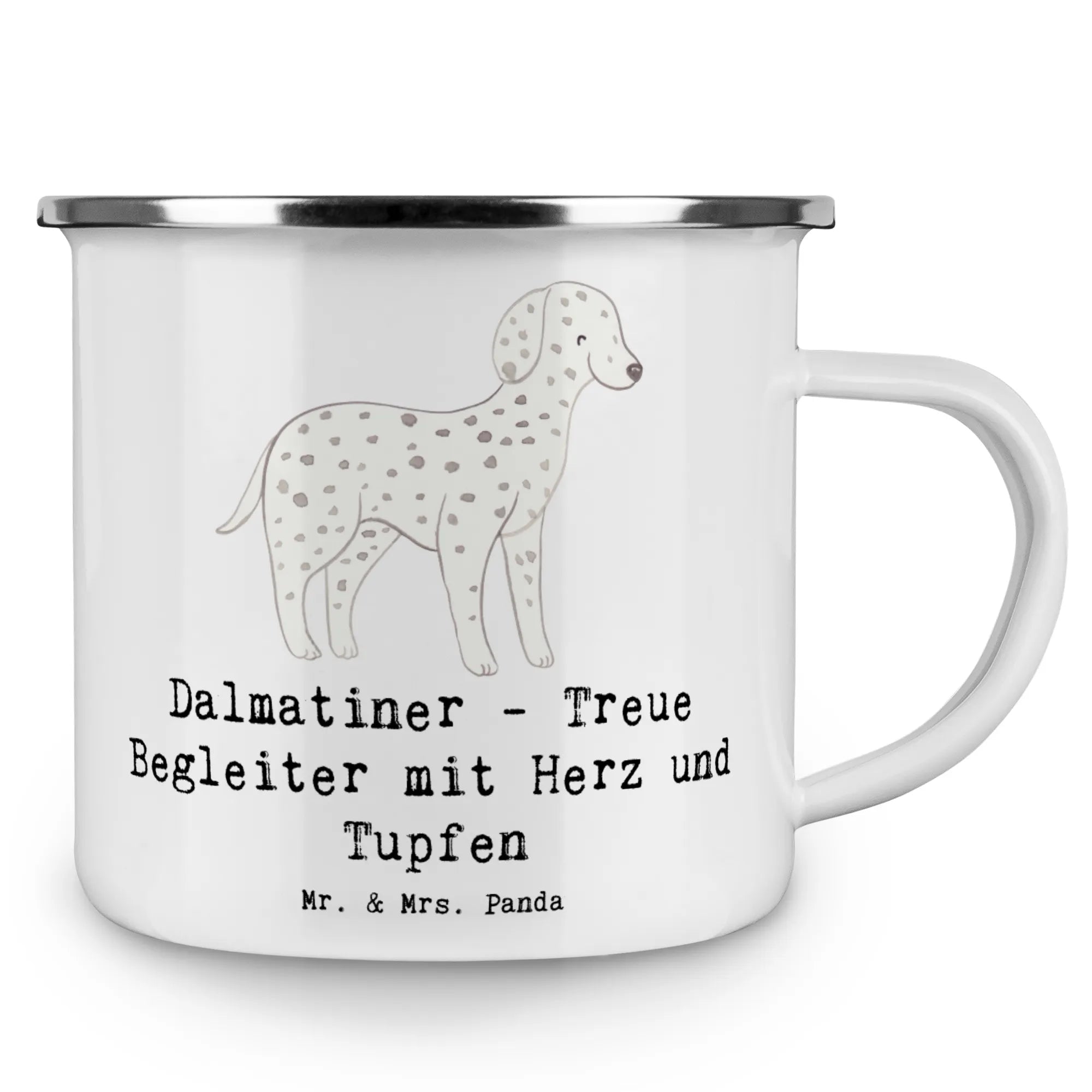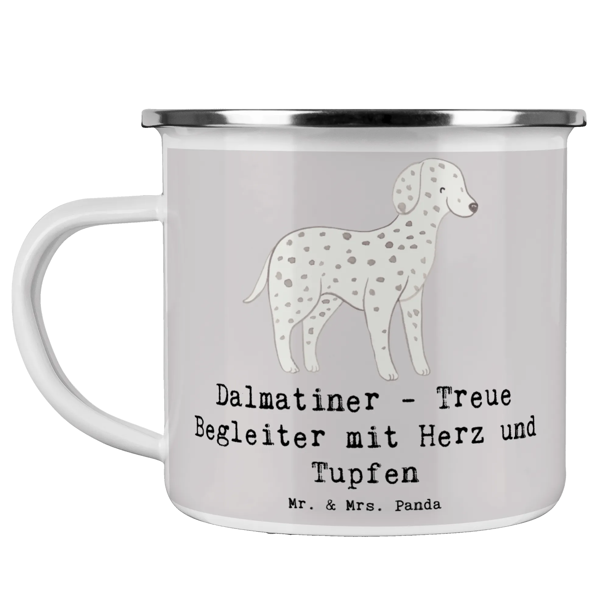 Die Camping Emaille Tasse mit dem bezaubernden Dalmatiner-Motiv von Mr. & Mrs. Panda ist das perfekte Geschenk für jeden Hundefan und Campingliebhaber! Diese wunderschöne und beständige Metalltasse ist nicht nur ein praktischer Begleiter beim nächsten Campingausflug, sondern auch ein echter Blickfang. Mit einem liebevoll gestalteten Dalmatiner, begleitet von dem Motto "Dalmatiner - Treue Begleiter mit Herz und Tupfen", bringt sie Freude und Erinnerungen an die treuen Begleiter in dein Leben.