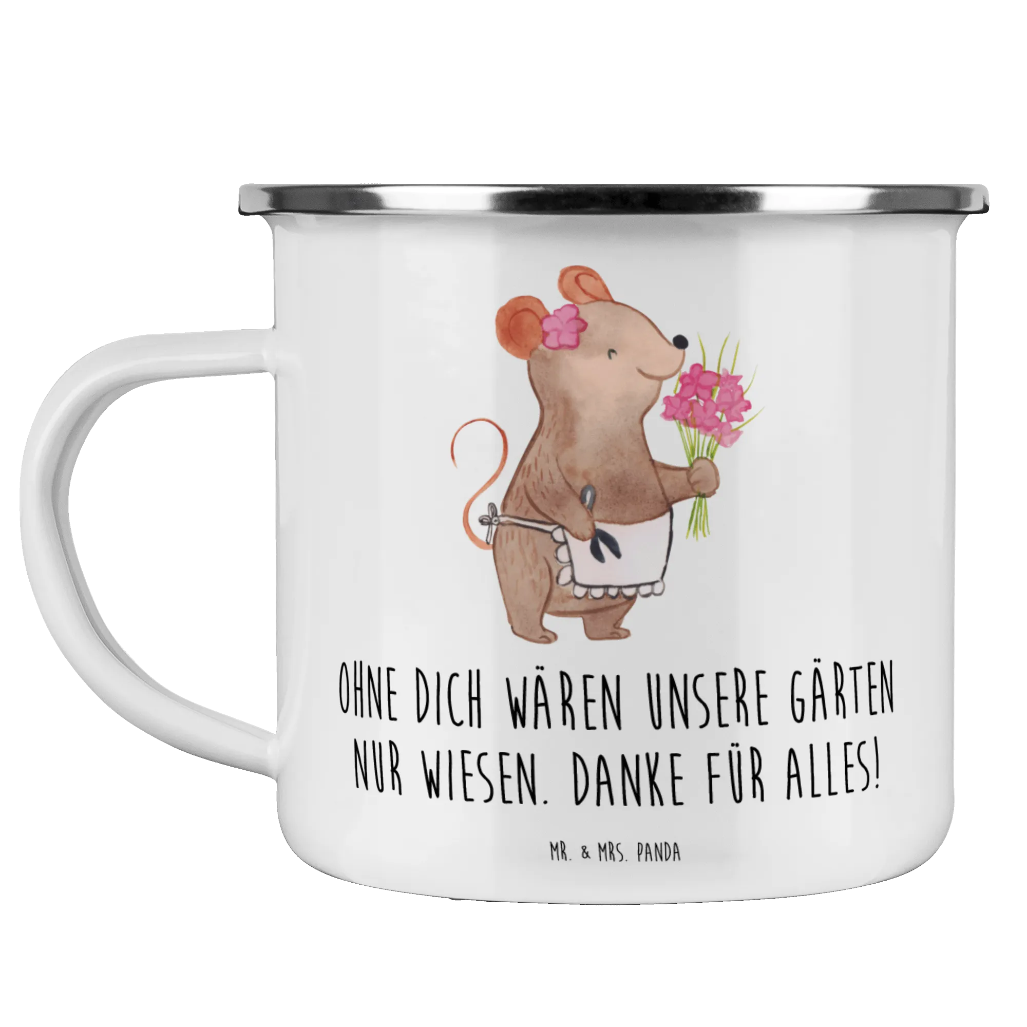 "Ohne dich wären unsere Gärten nur Wiesen. Danke für alles!" – dieser Spruch auf der Tasse macht sie zu einem ganz besonderen Geschenk. Sie eignet sich hervorragend für den nächsten Campingausflug, beim Wandern oder einfach für den Kaffee am Morgen auf der Terrasse. Die Tasse hat ein Fassungsvermögen von 300 ml und ist aus kratzfester Emaille gefertigt, was sie besonders langlebig macht.