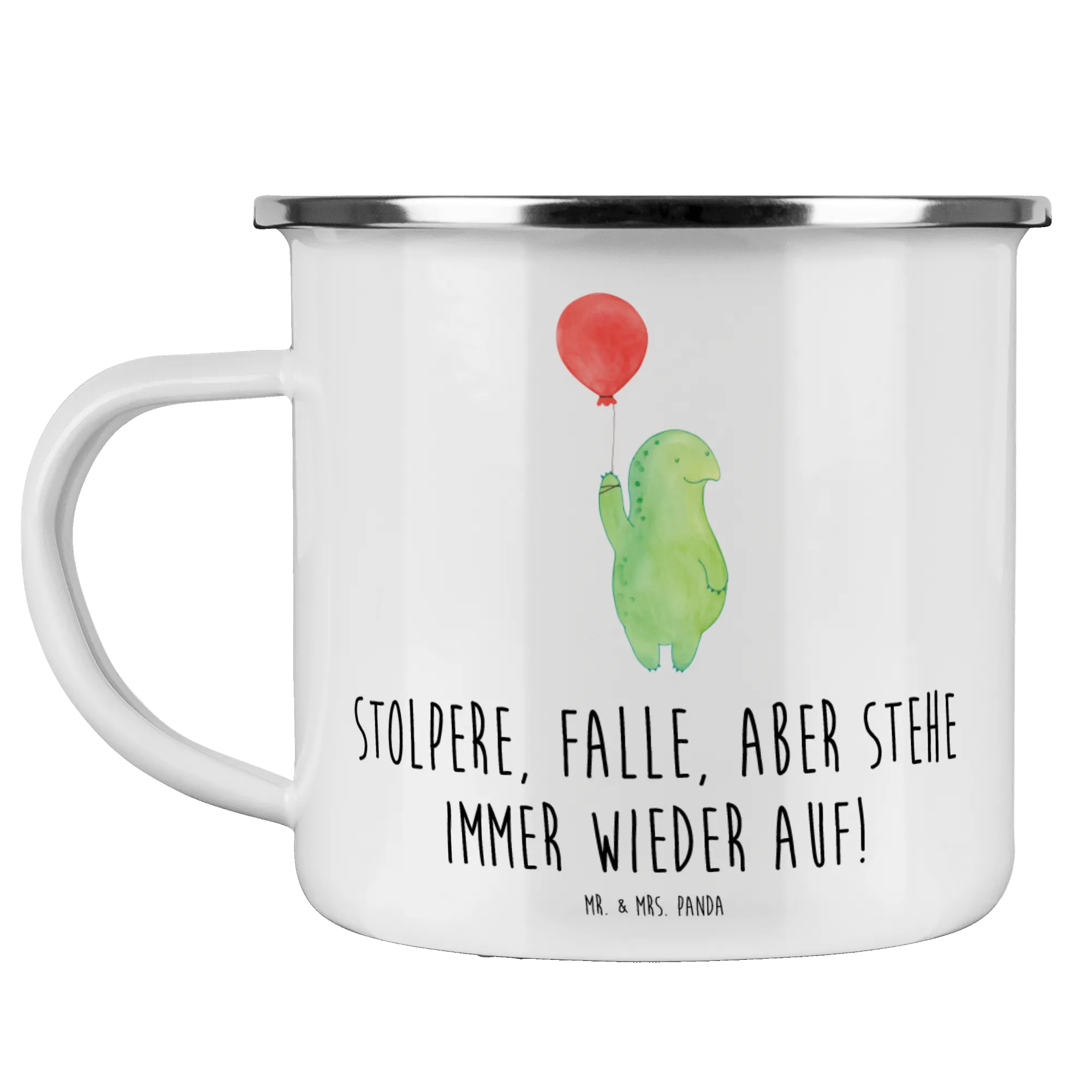 Du kannst sie sogar auf deinem Balkon oder in deiner Küche benutzen. Bitte beachte, dass die Tasse nicht spülmaschinenfest ist und eine sanfte Handwäsche empfohlen wird, um die schöne Beschriftung lange zu erhalten. Begeistere deine Freunde oder Familie mit der Camping Emaille Tasse von Mr. & Mrs. Panda und motiviere sie, aus ihren Fehlern zu lernen und neue Horizonte zu entdecken.